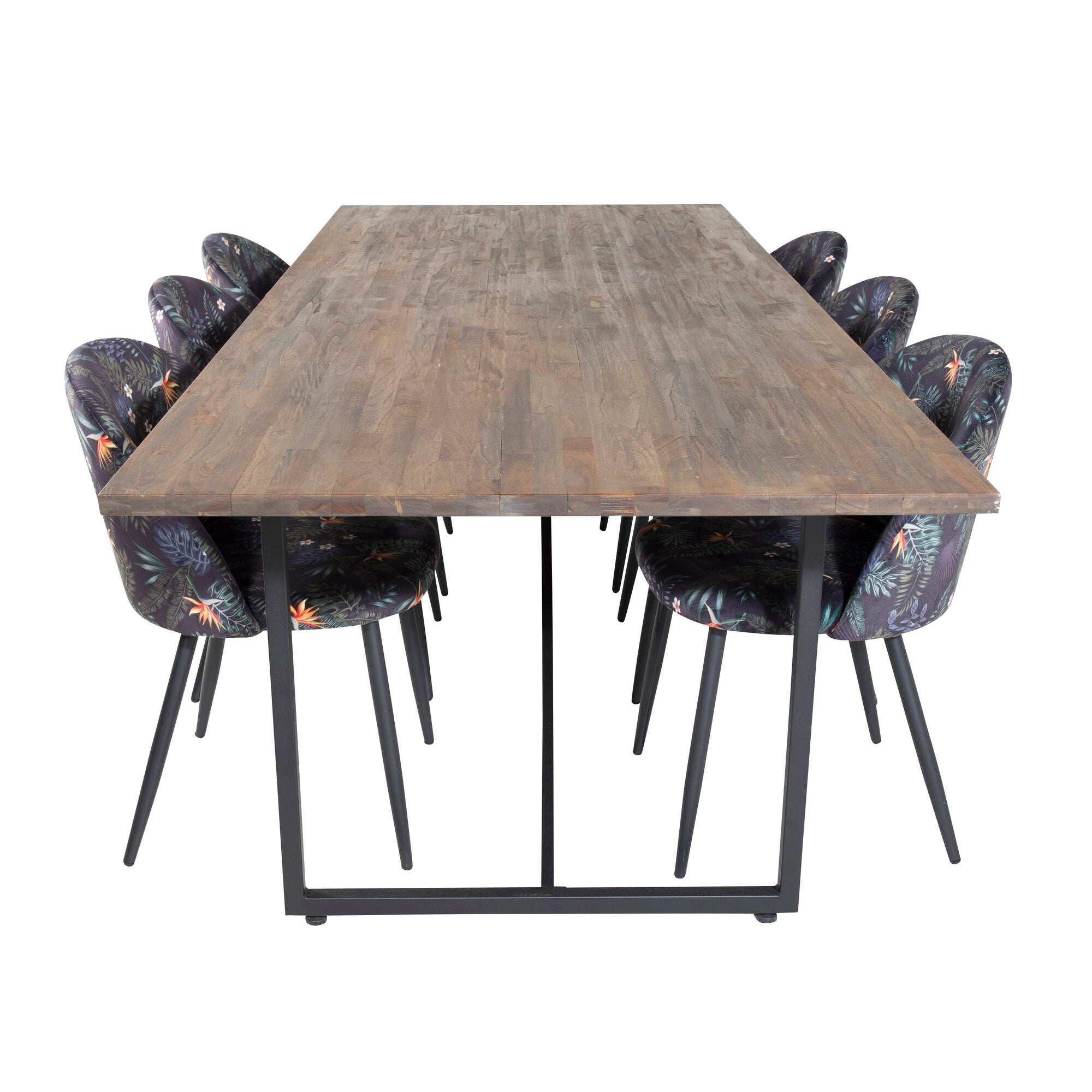 Jídelní stůl Padang - 250*100*H76 - Tmavý teak / Černá+Velvetová jídelní židle - Black Flower fabric_6