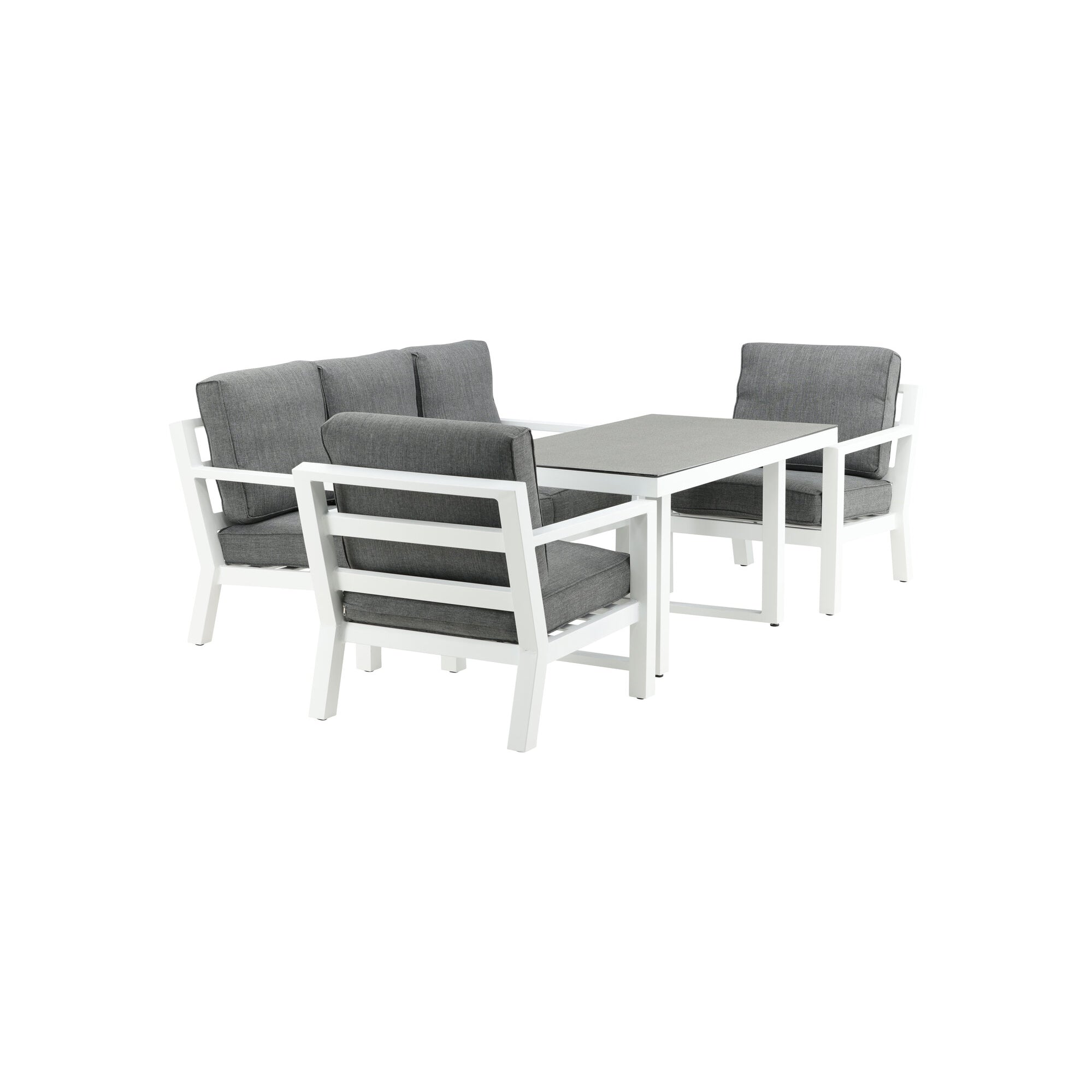 GR18095, Copacabana Lounge Set 5ks - Bílý Alu / Šedý polštář + Parma rozkládací stůl