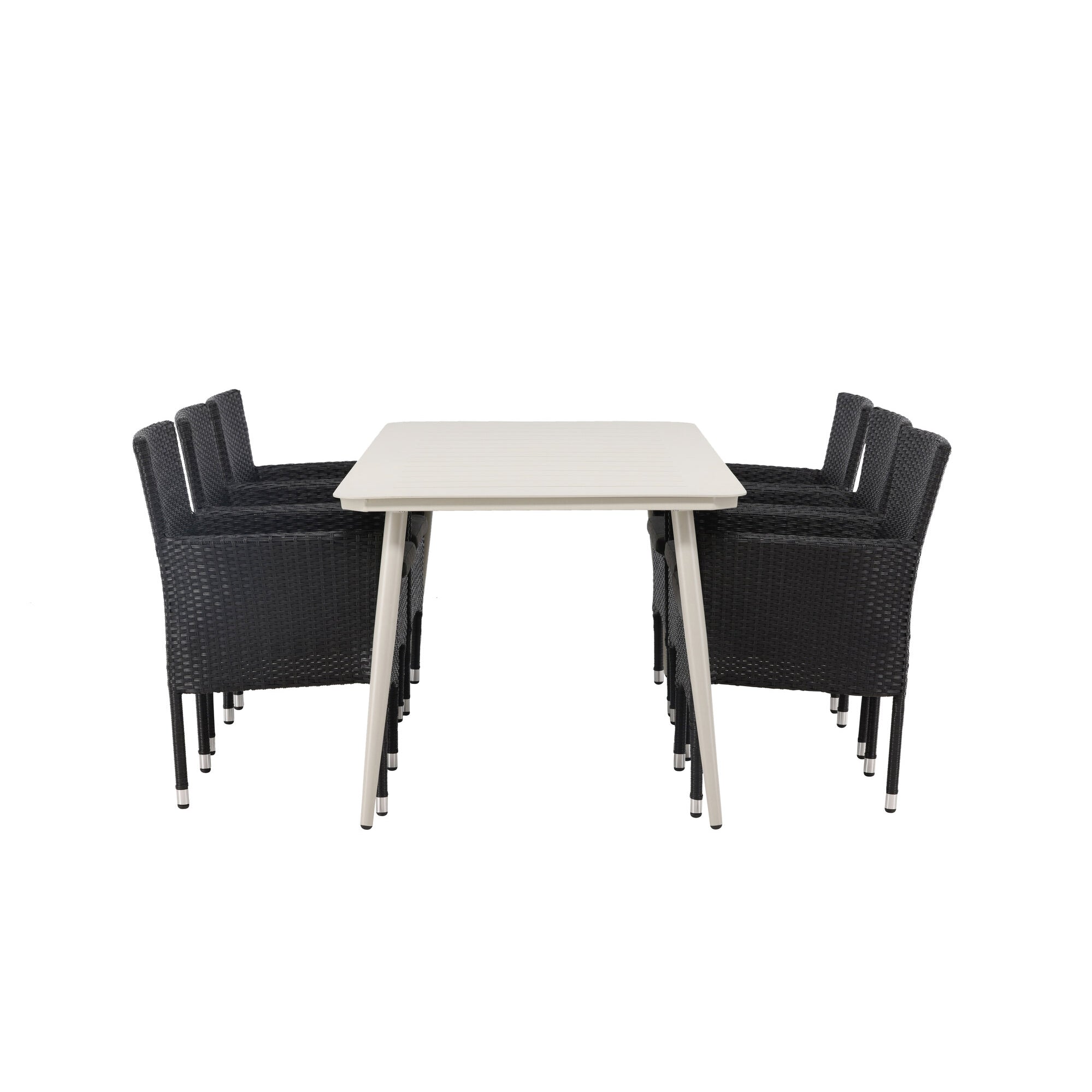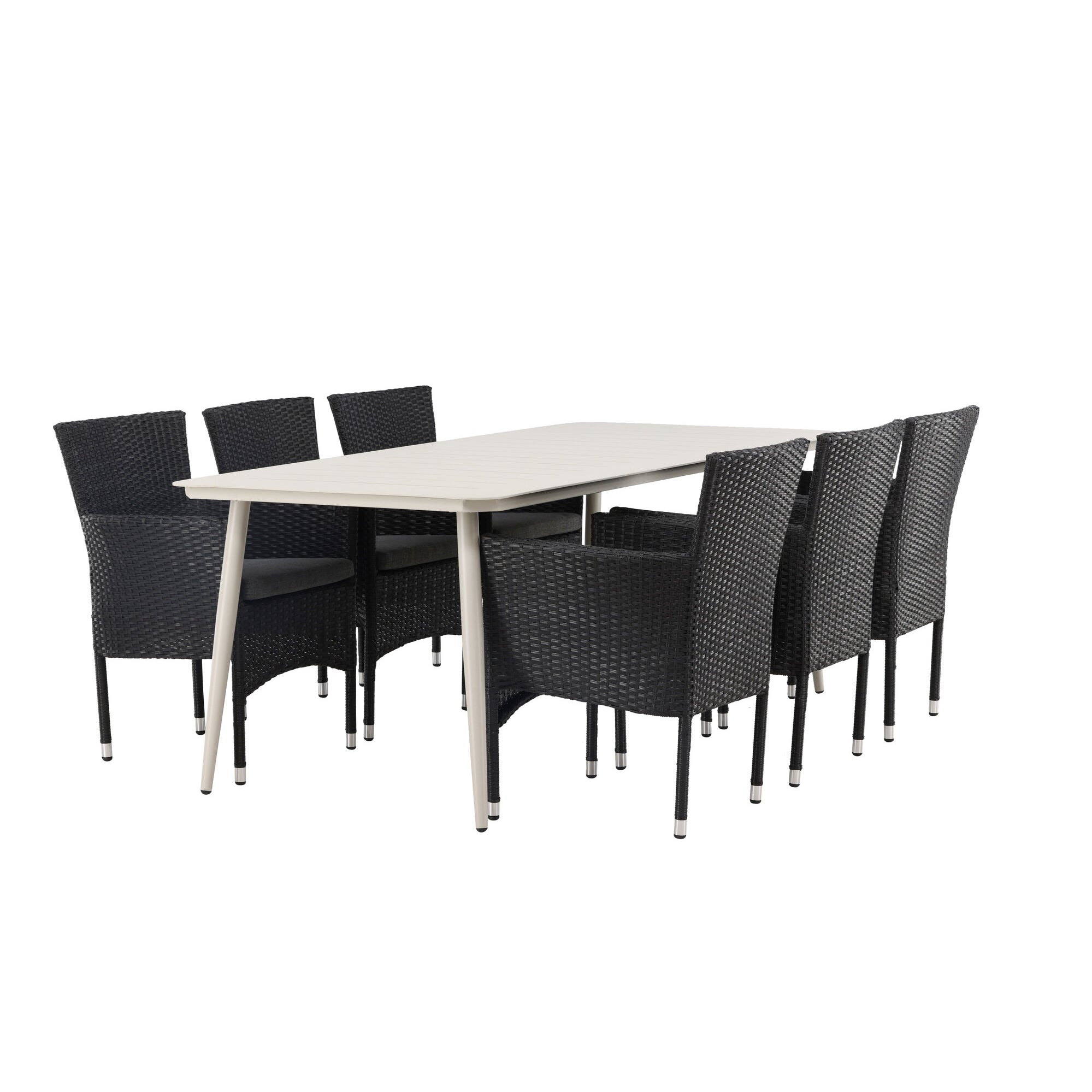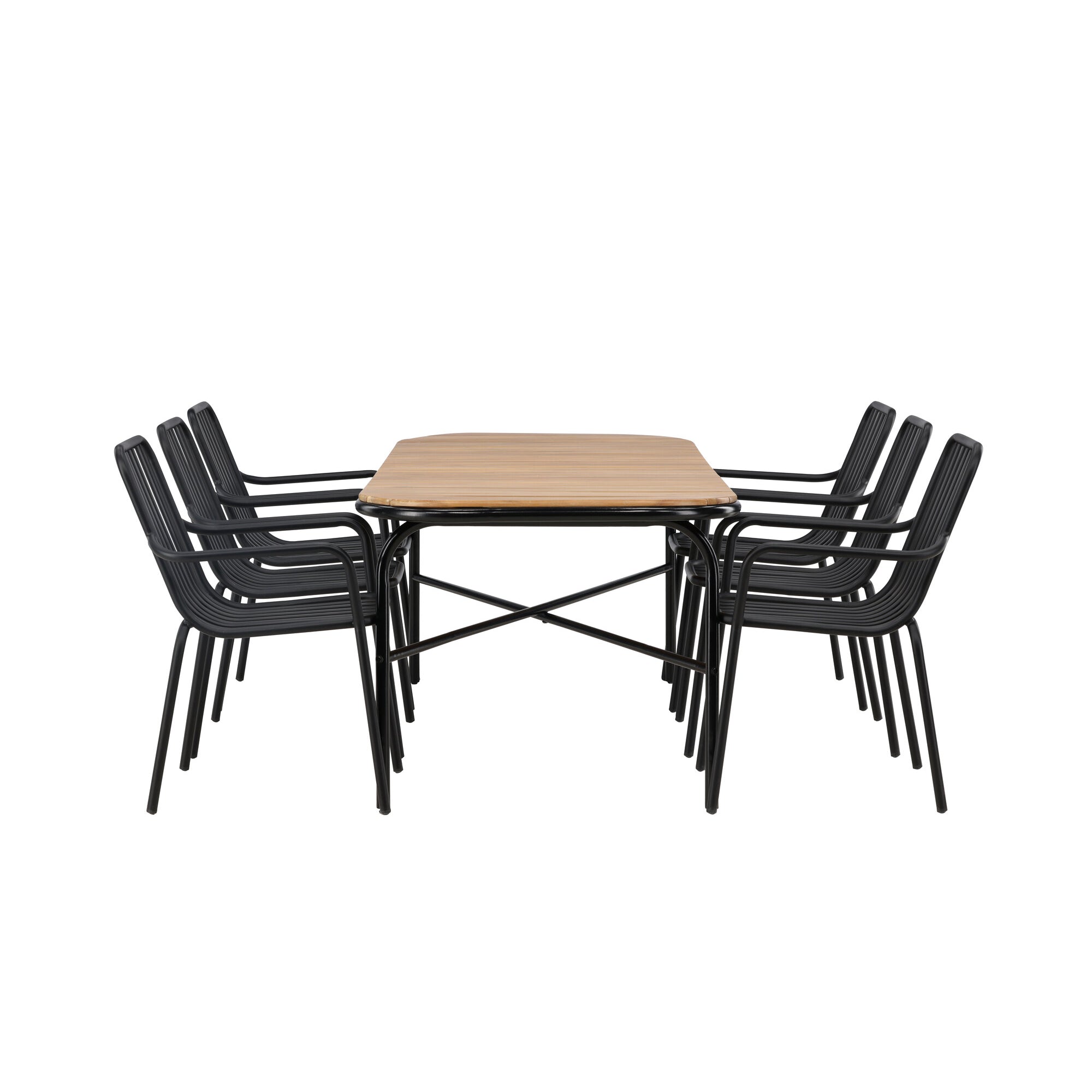 Ocelový jídelní stůl Holmbeck – černá / obdélníková 90*200*75 + hliníková jídelní židle Peking – černá / _6