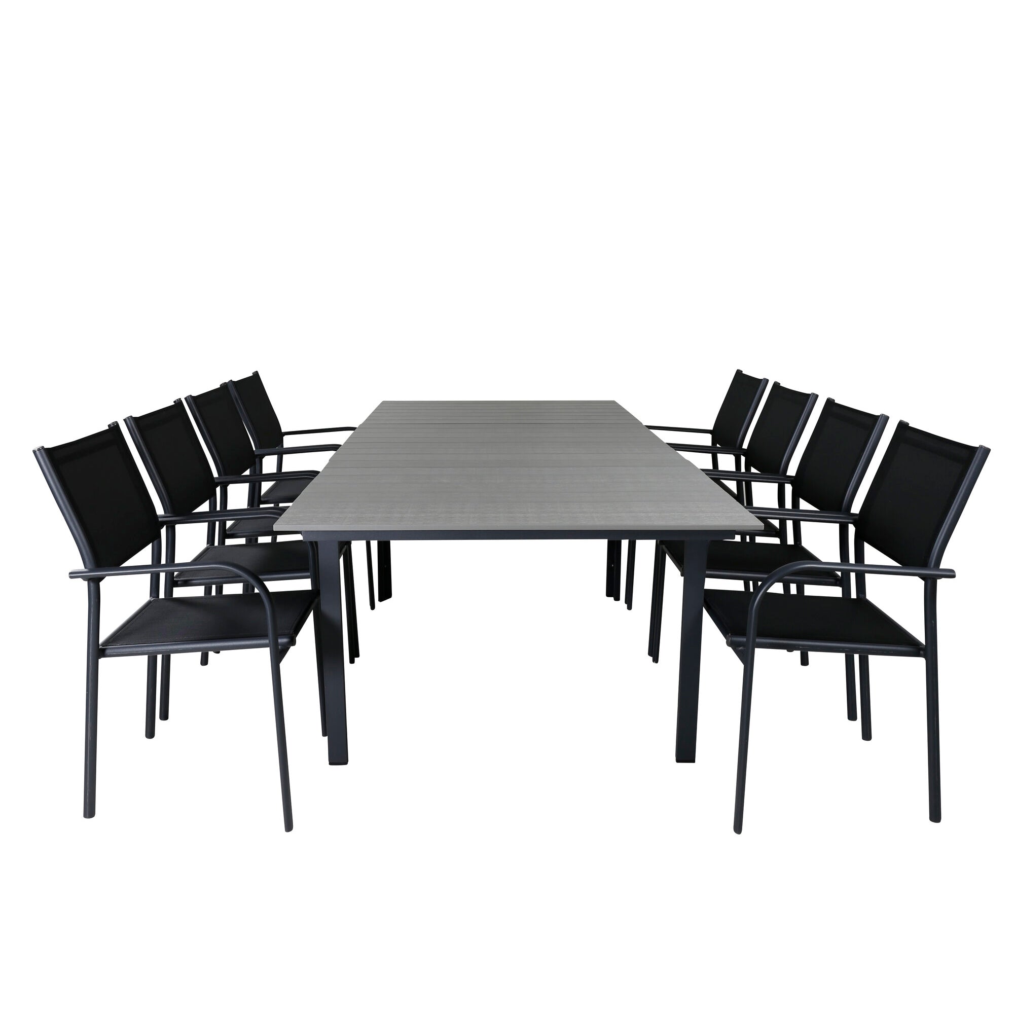 Parma - Stůl ø 140 - Černá Alu / Šedá Aintwood+Copacabana křeslo (stohovatelné) - Černá Alu / Černá Textilene_6