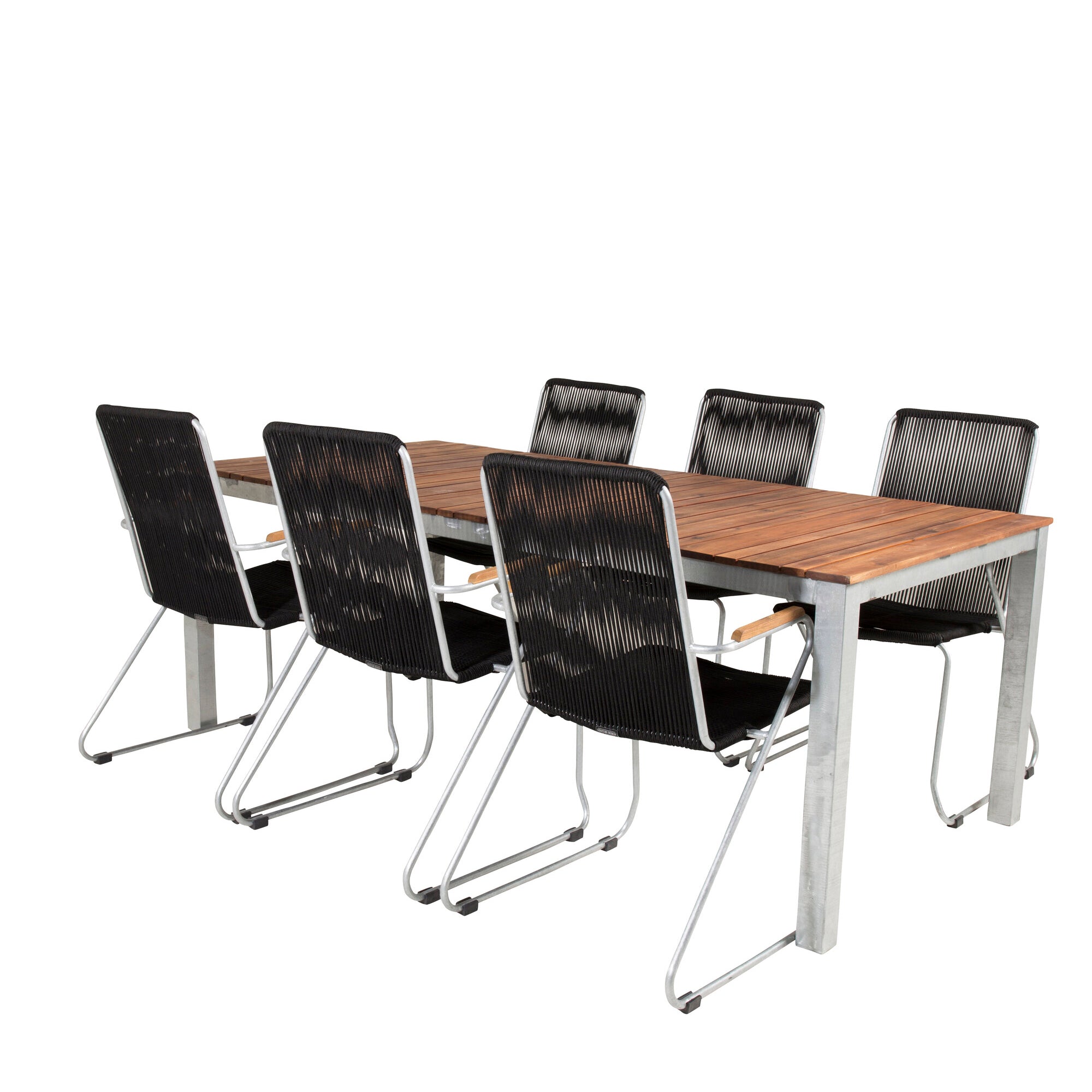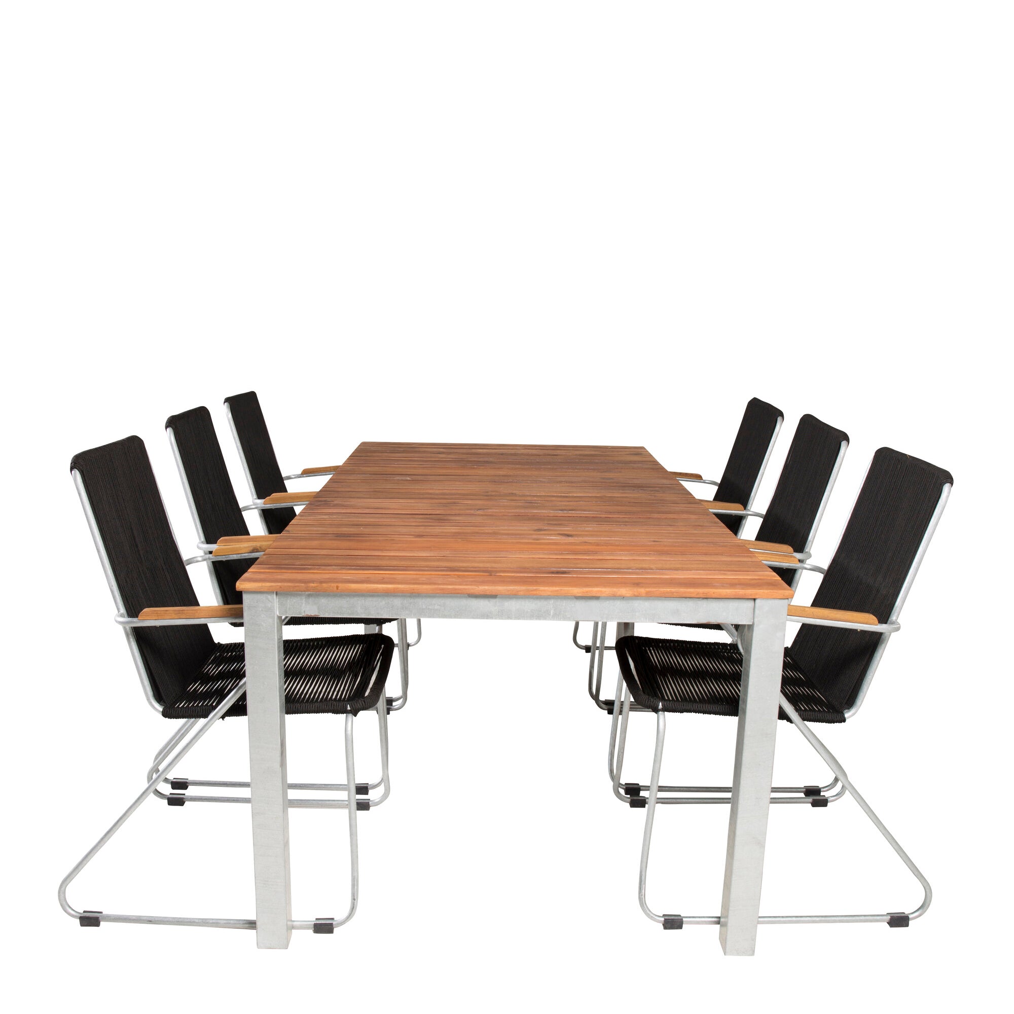 Jídelní stůl Zenia 200*100 - křeslo z akácie / zink+bois - zinek / černé lano / A
