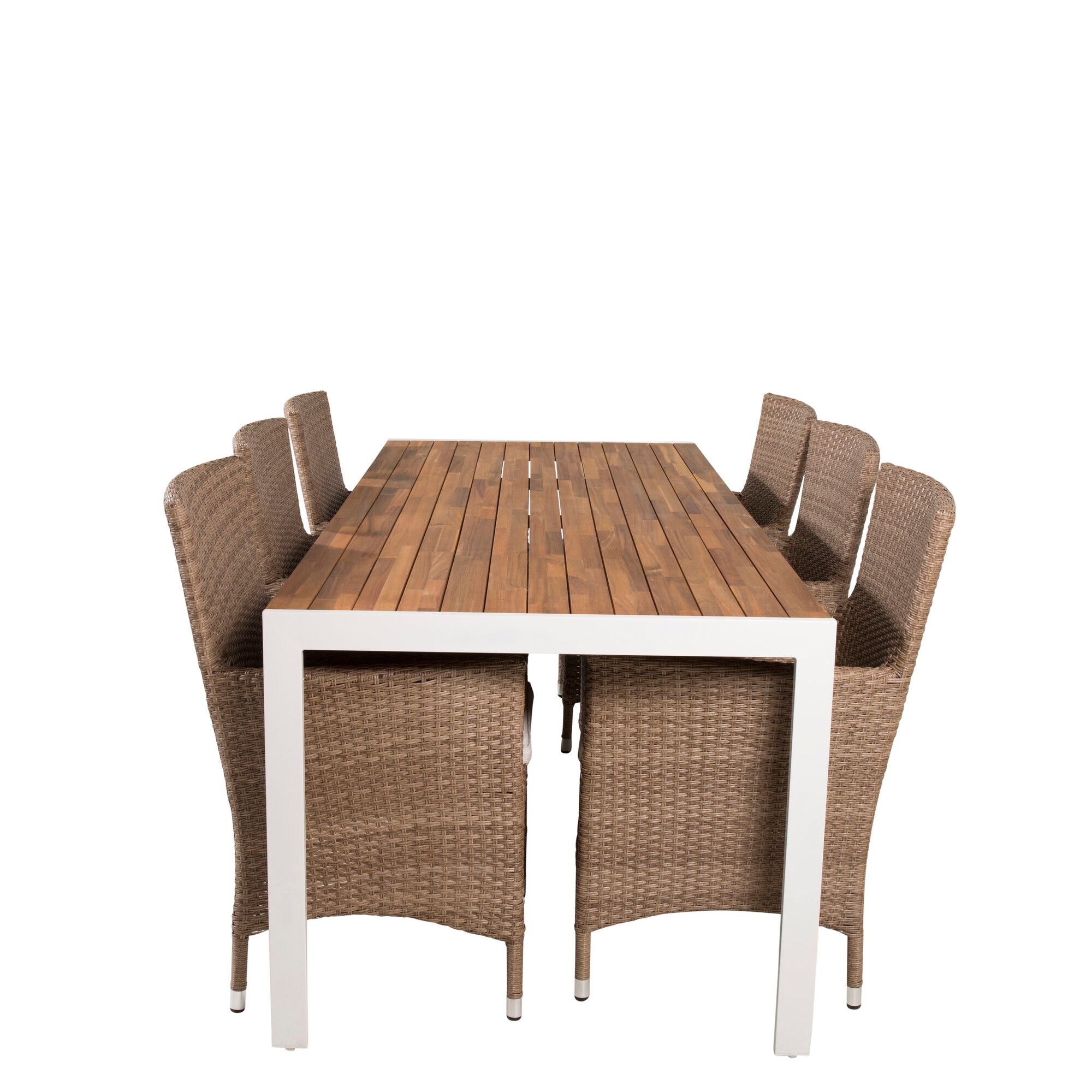Jídelní stůl Kenya 195/295*110*H75 - Teak+Santorini křeslo (stohovatelné) - Whi