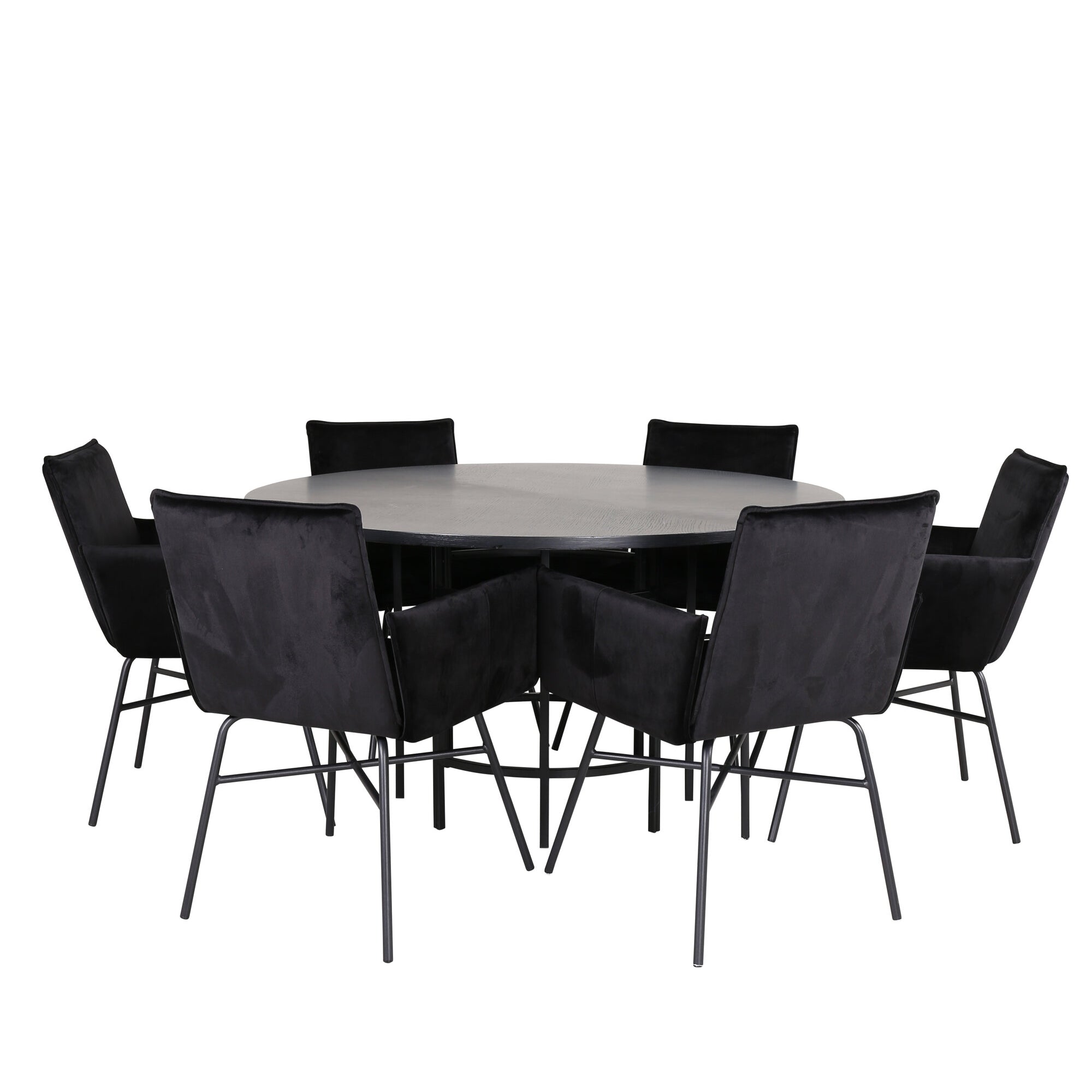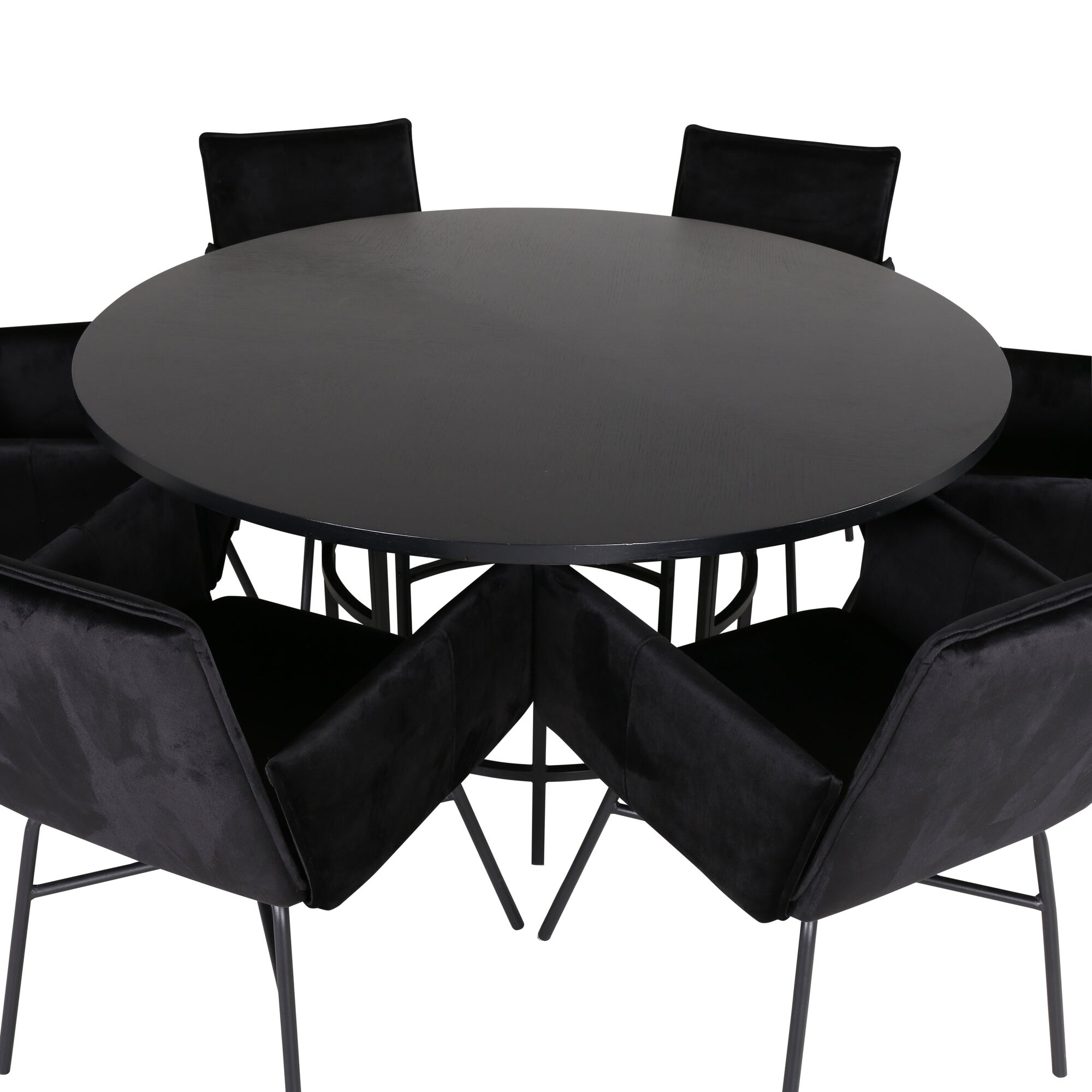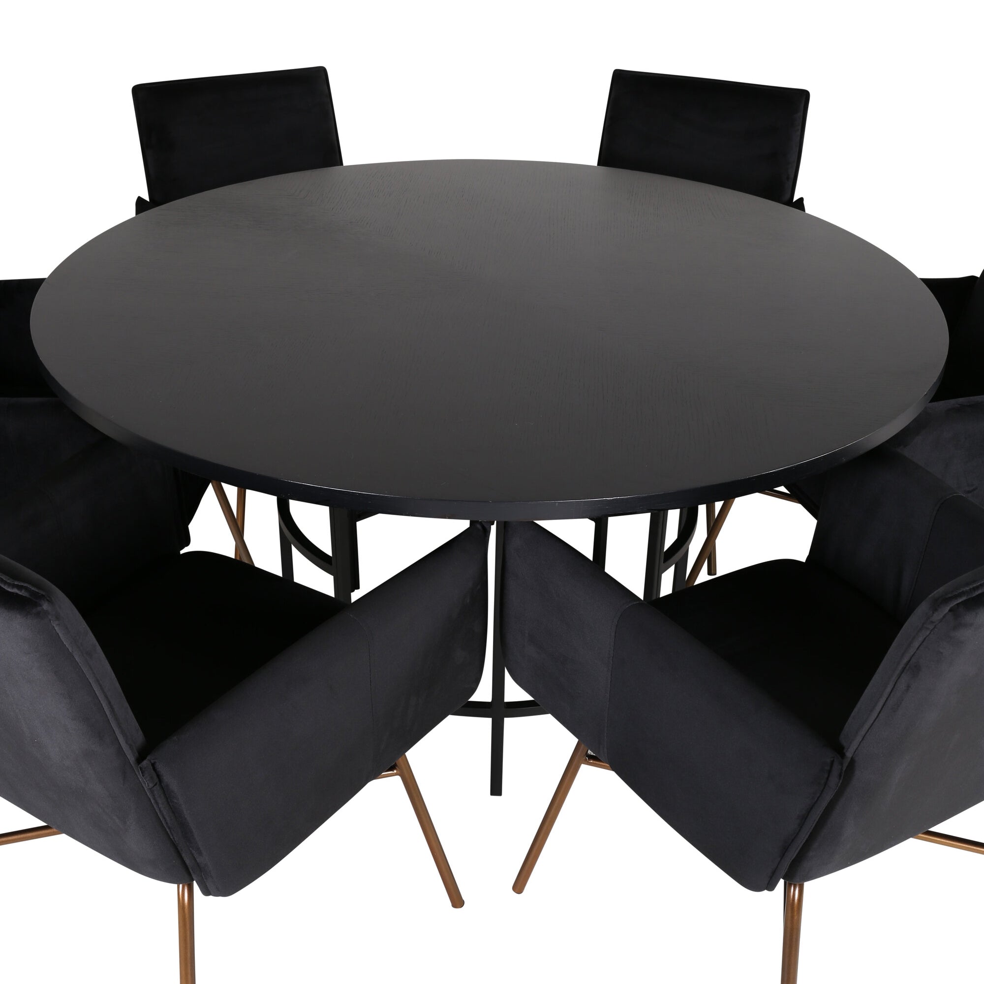 Copenhagen - Jídelní stůl kulatý - Black / Black+Petra Židle - Black / Black Velvet_6