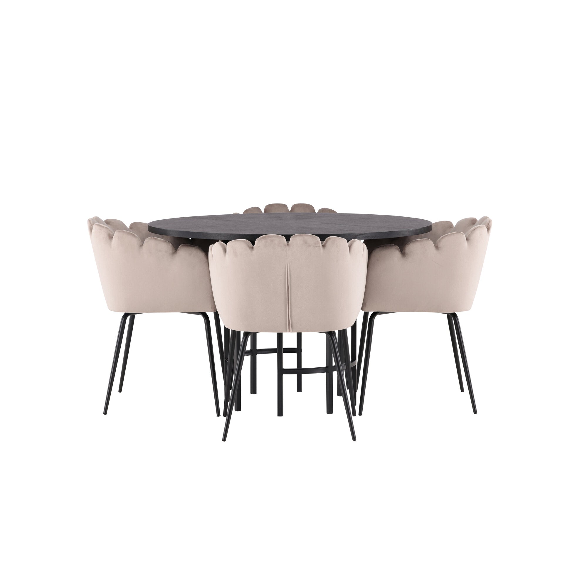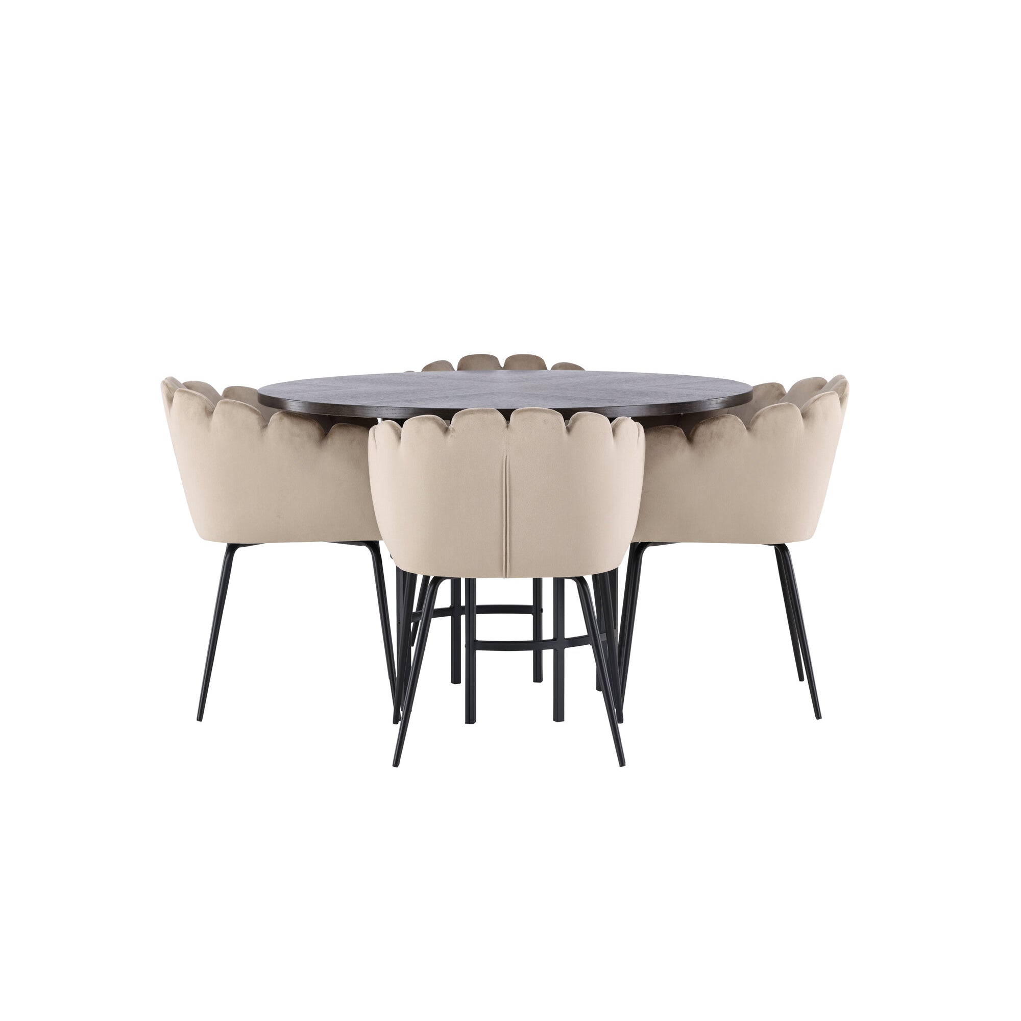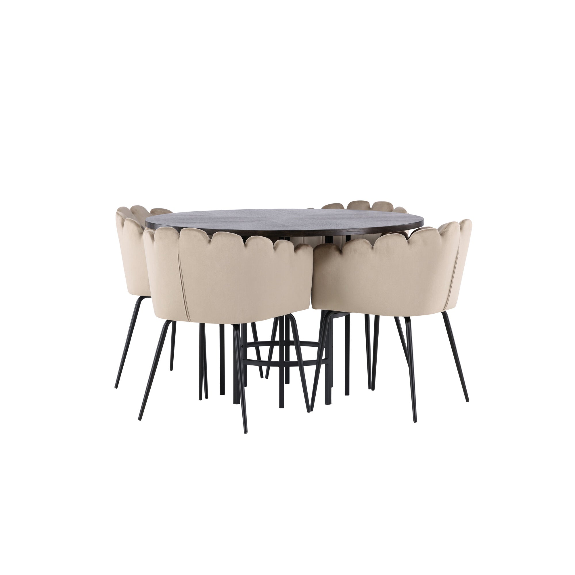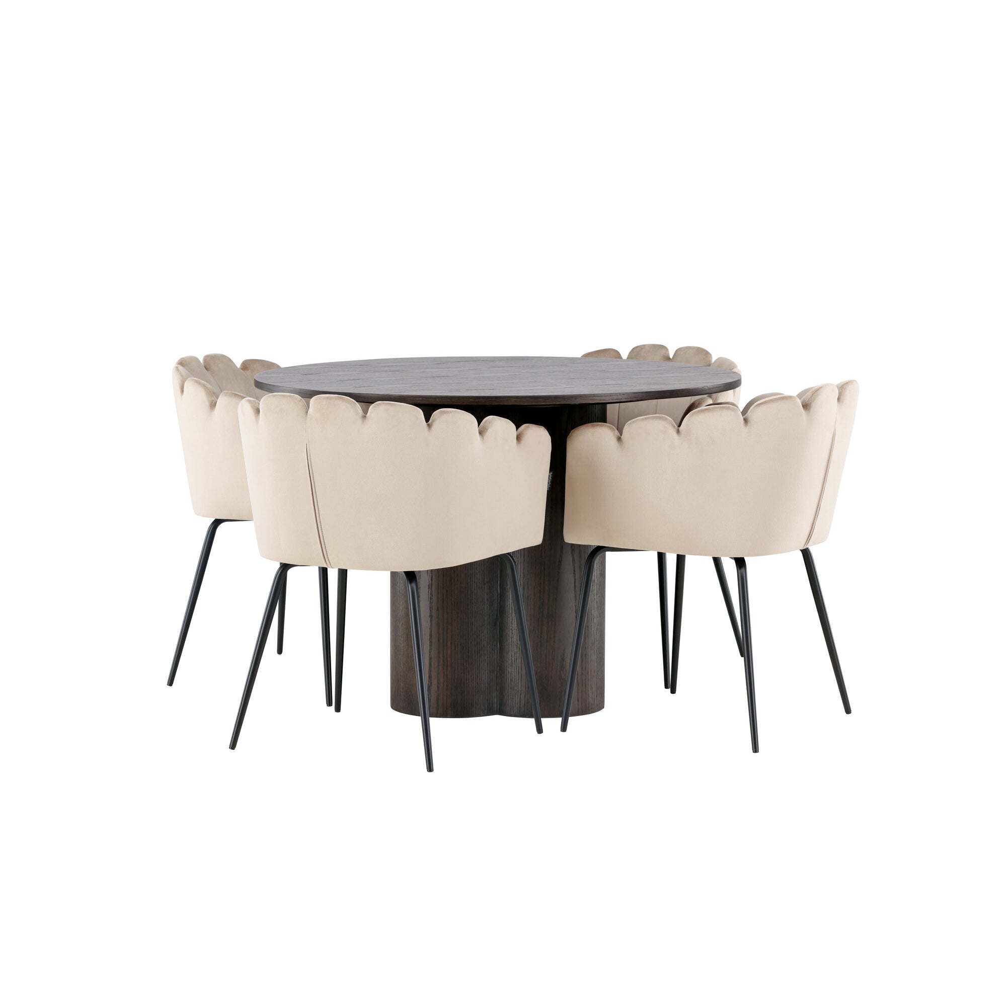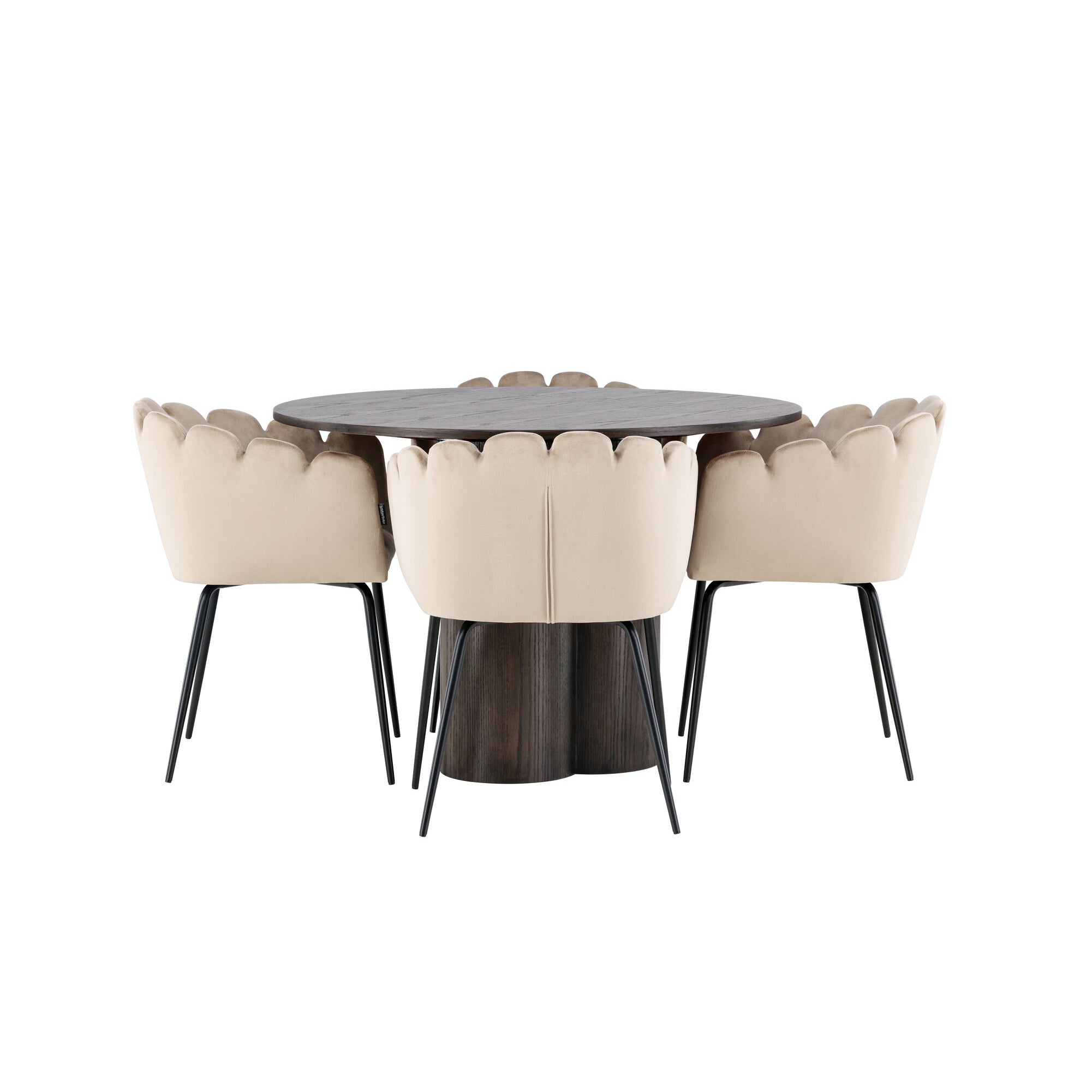 OliviaJídelní stůl-Mocca/MoccaVeneer+LimhamnChair-Black/BeigeVelvet_4