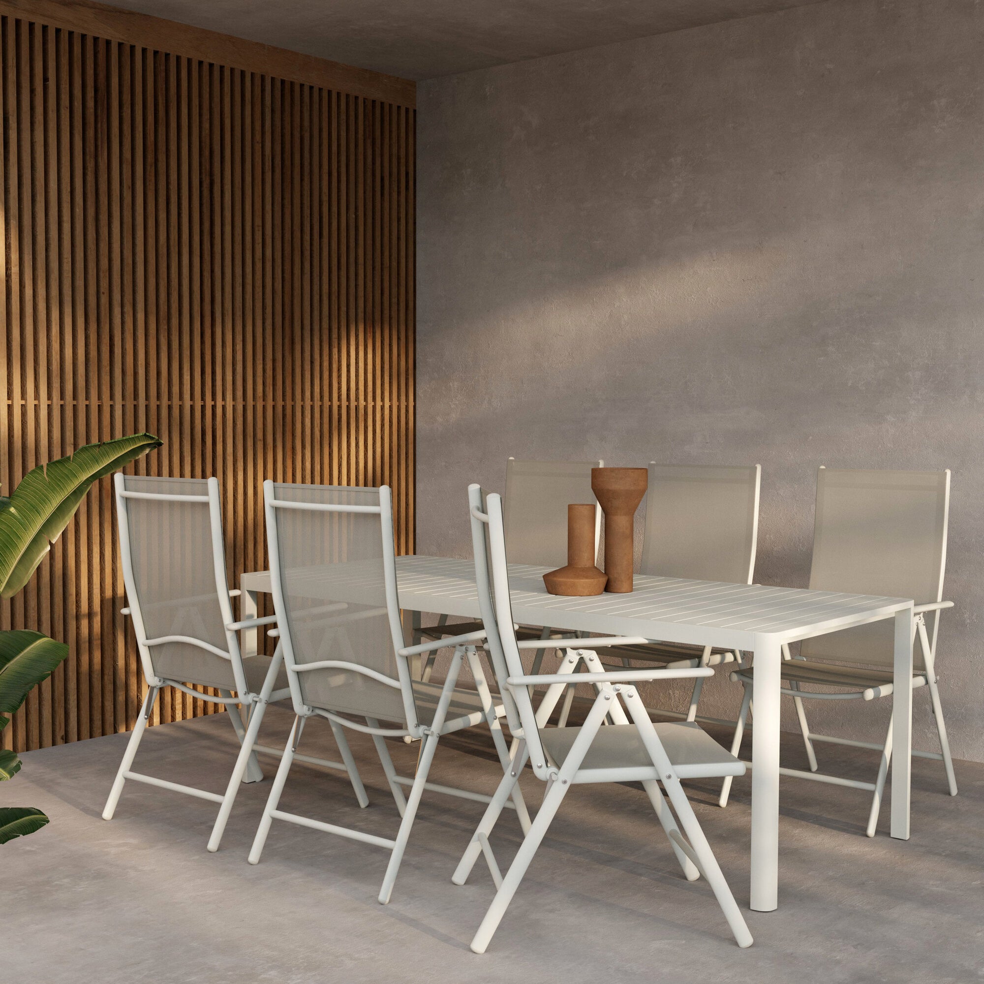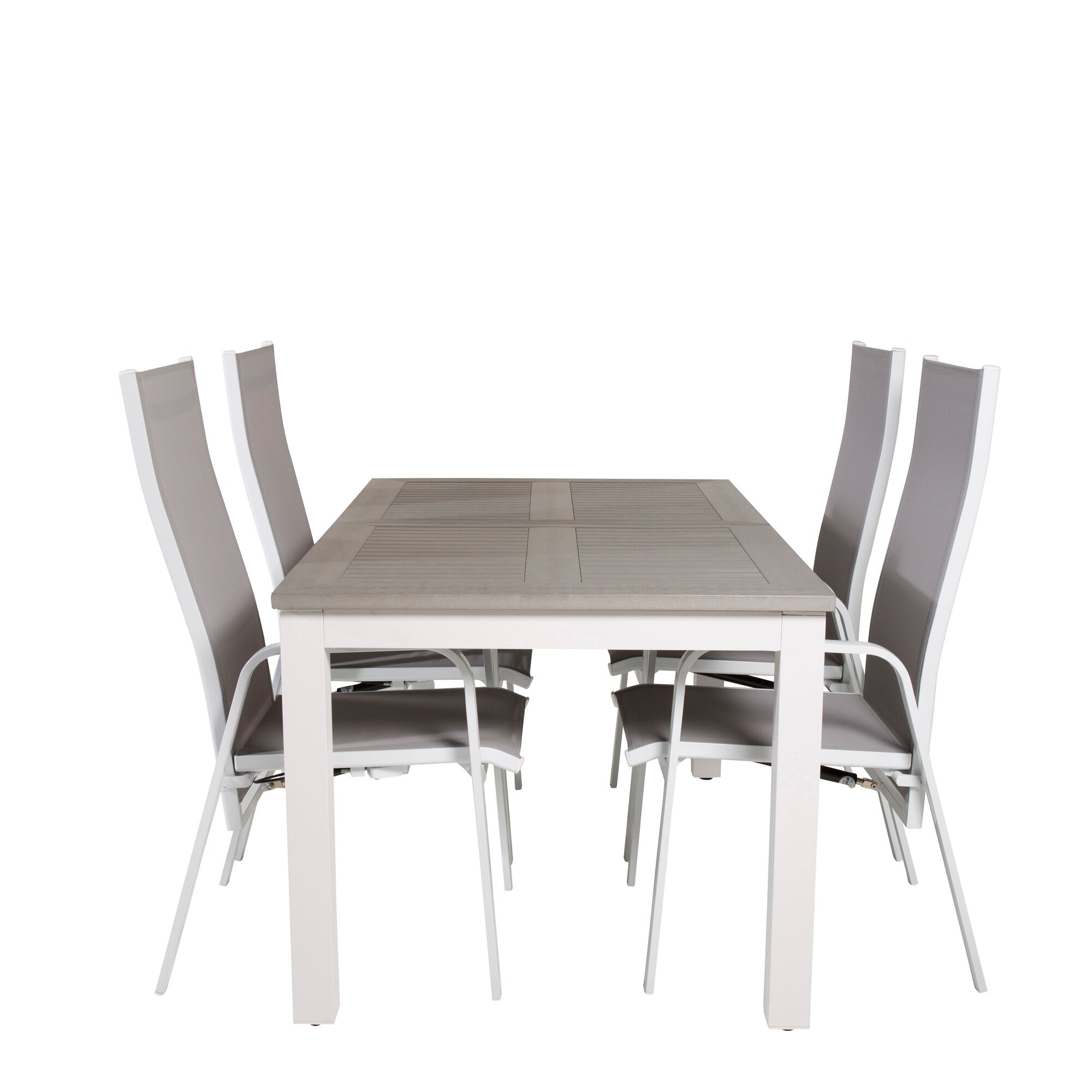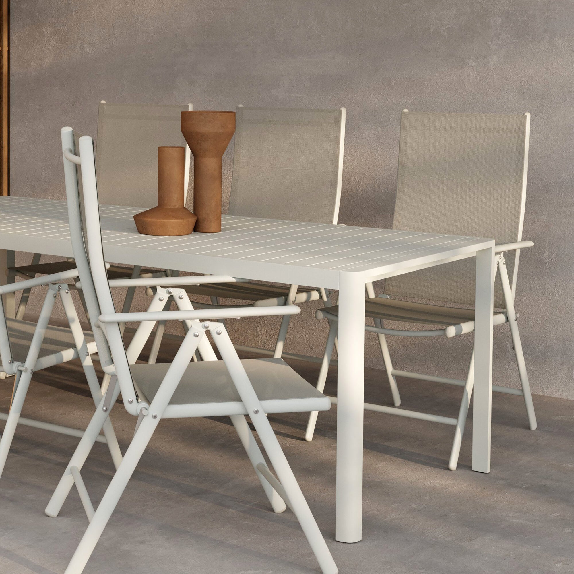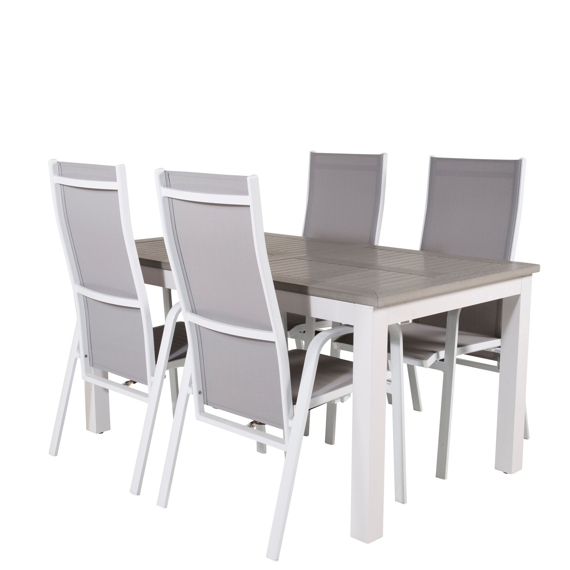 Jídelní stůl Albany 160/240*100 - Bílá Alu / Šedá Aintwood+Copacabana Polohovací křeslo (stohovatelné) - Bílá Alu / Šedá Textilene_4