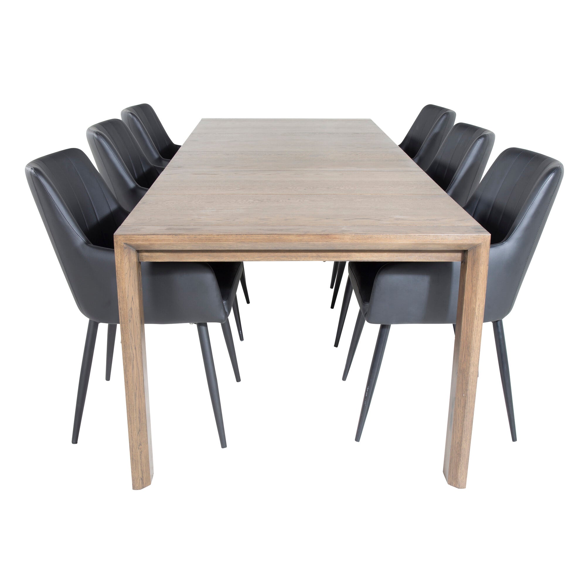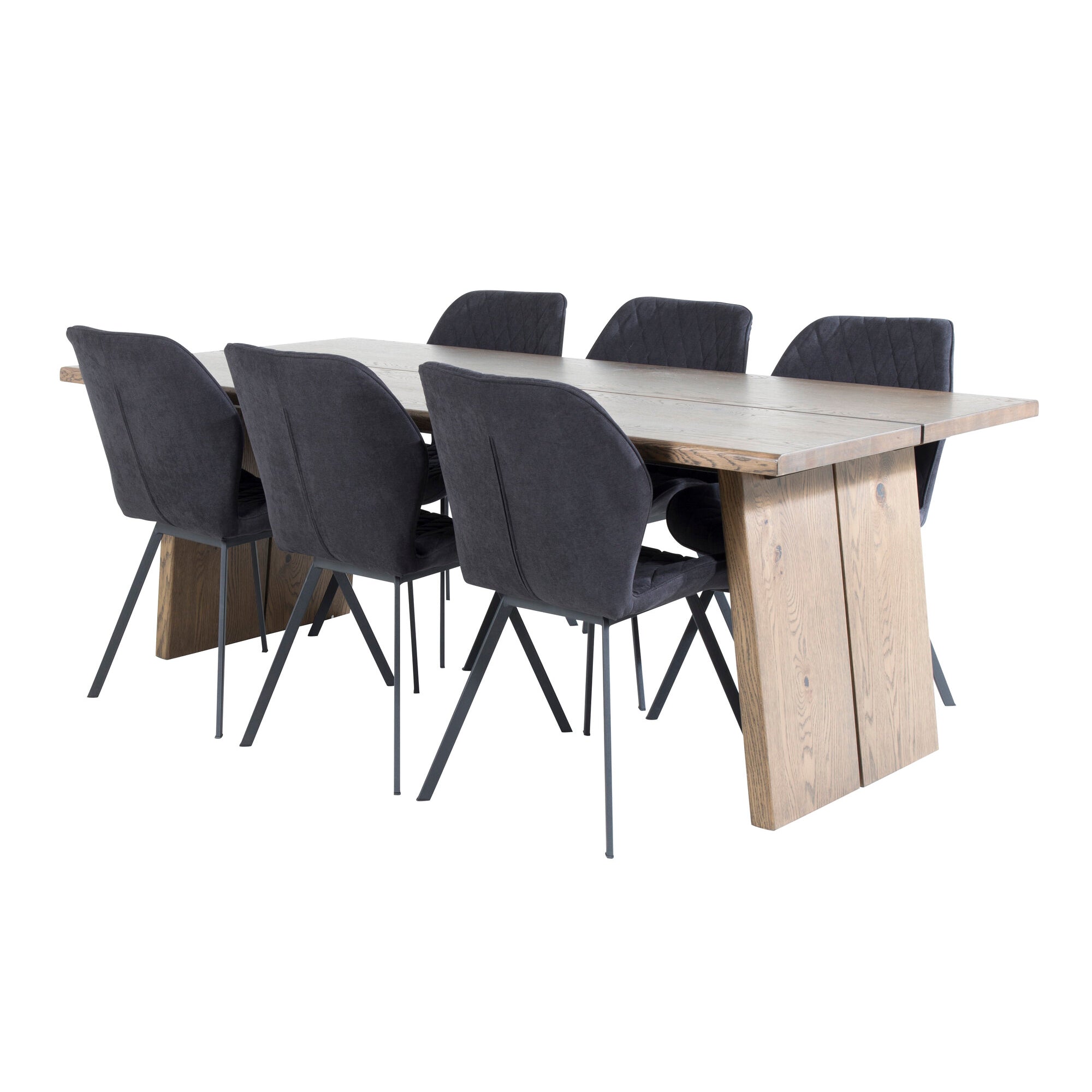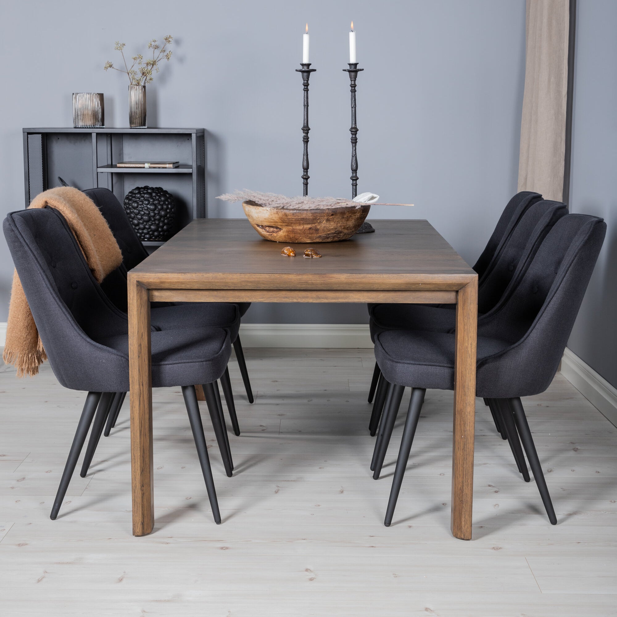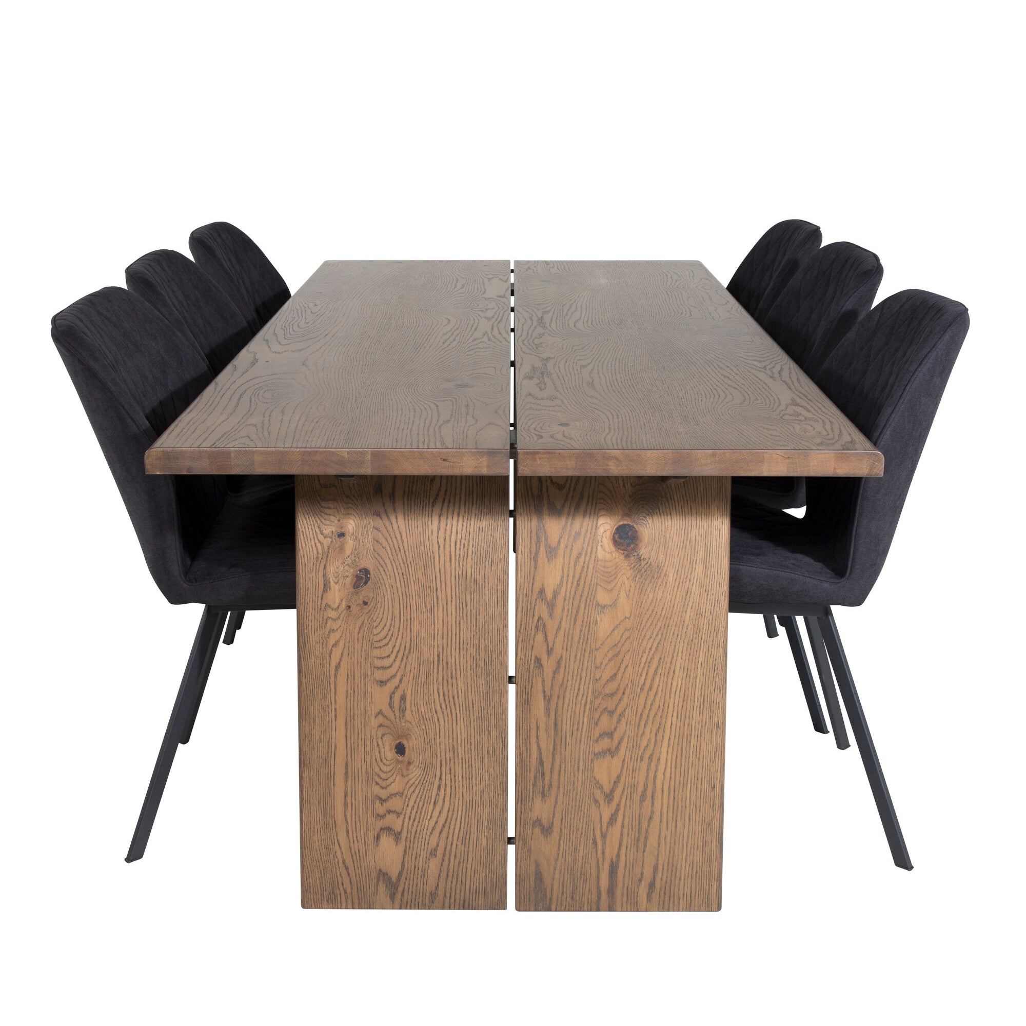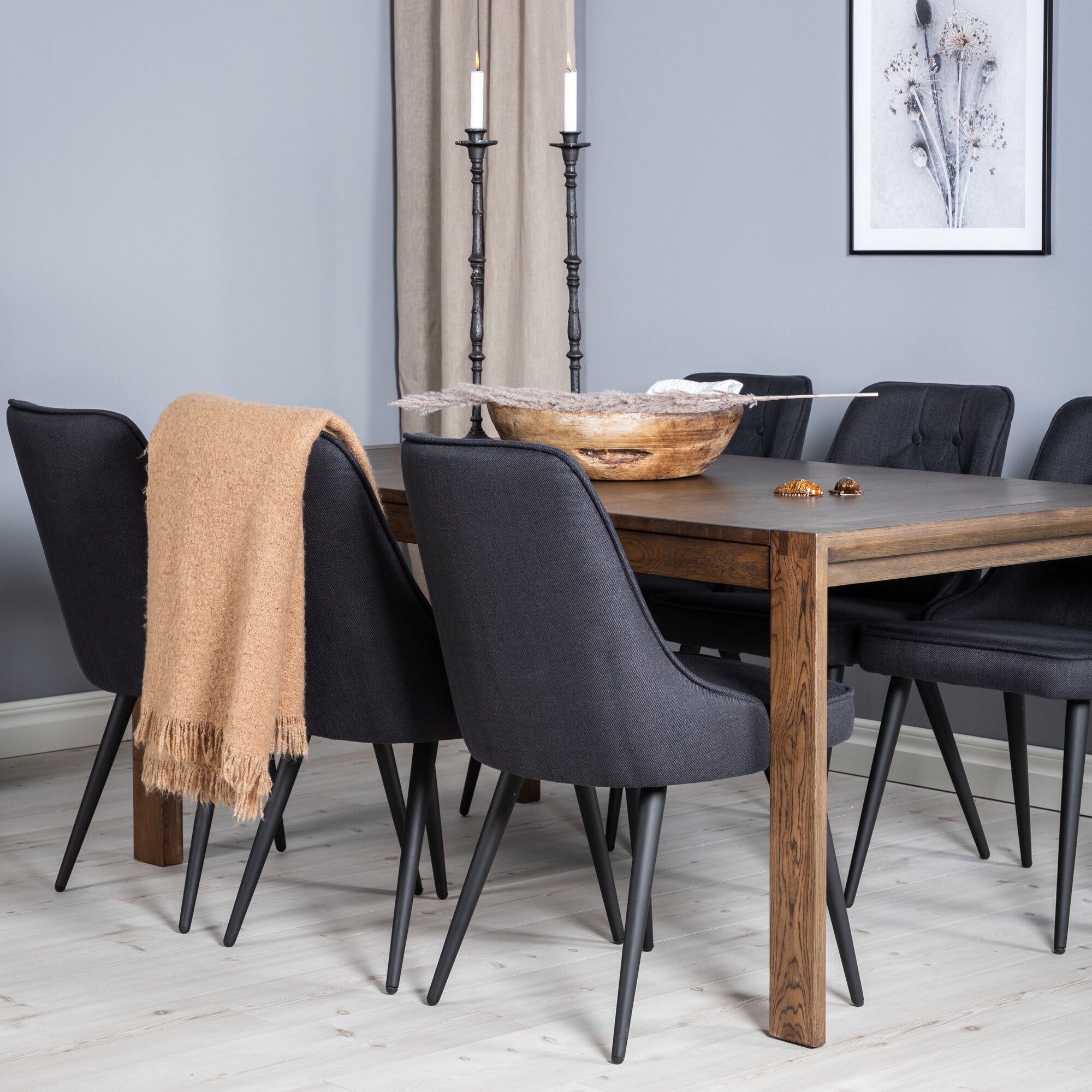 Jídelní stůl Logger - kouřový dub - 210 cm+jídelní židle Gemma - černé nohy - černá látka_6