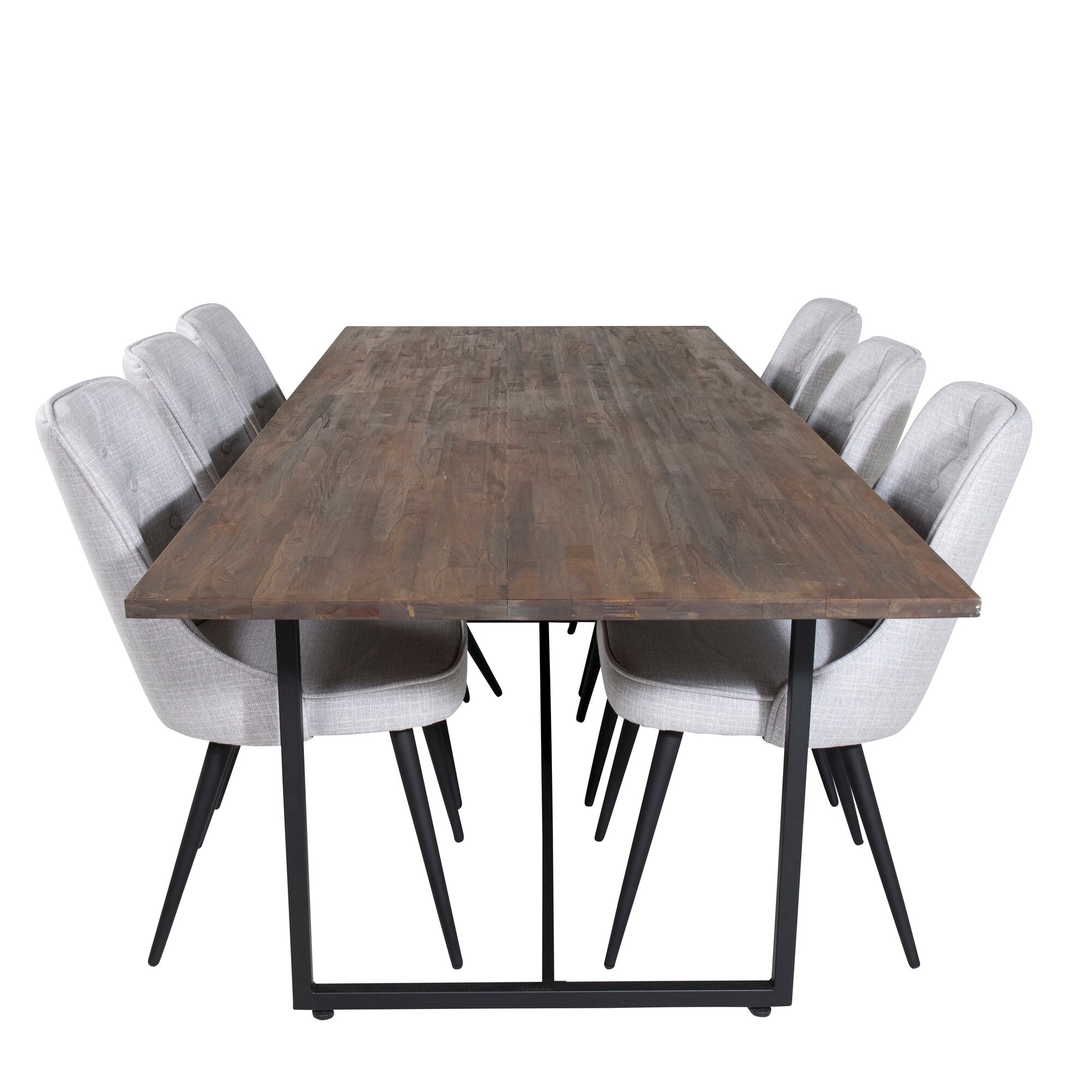 Jídelní stůl Padang - 250*100*H76 - Tmavý týk / Černá+Velvet luxusní jídelní židle - Černé nohy - Světle šedá látka_6
