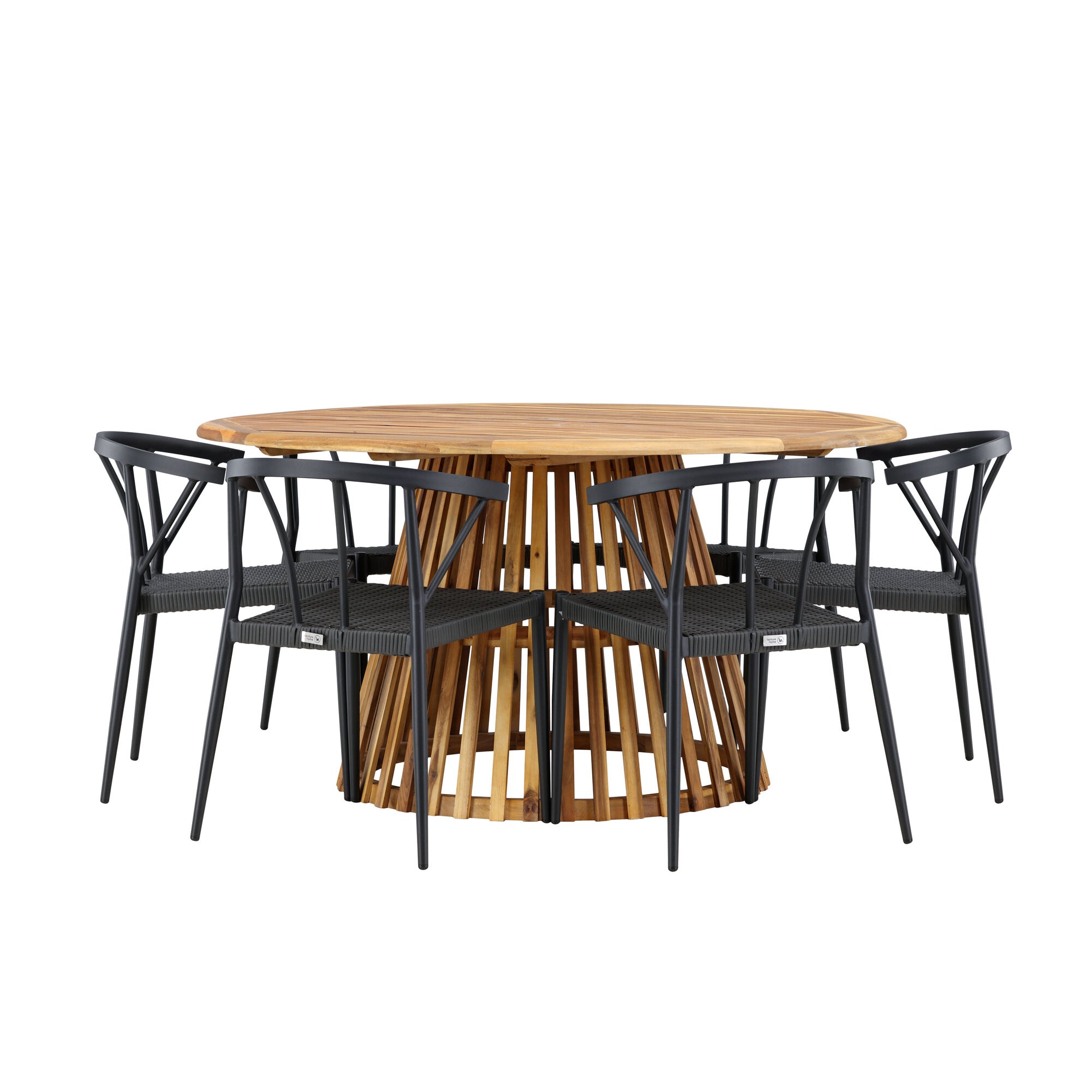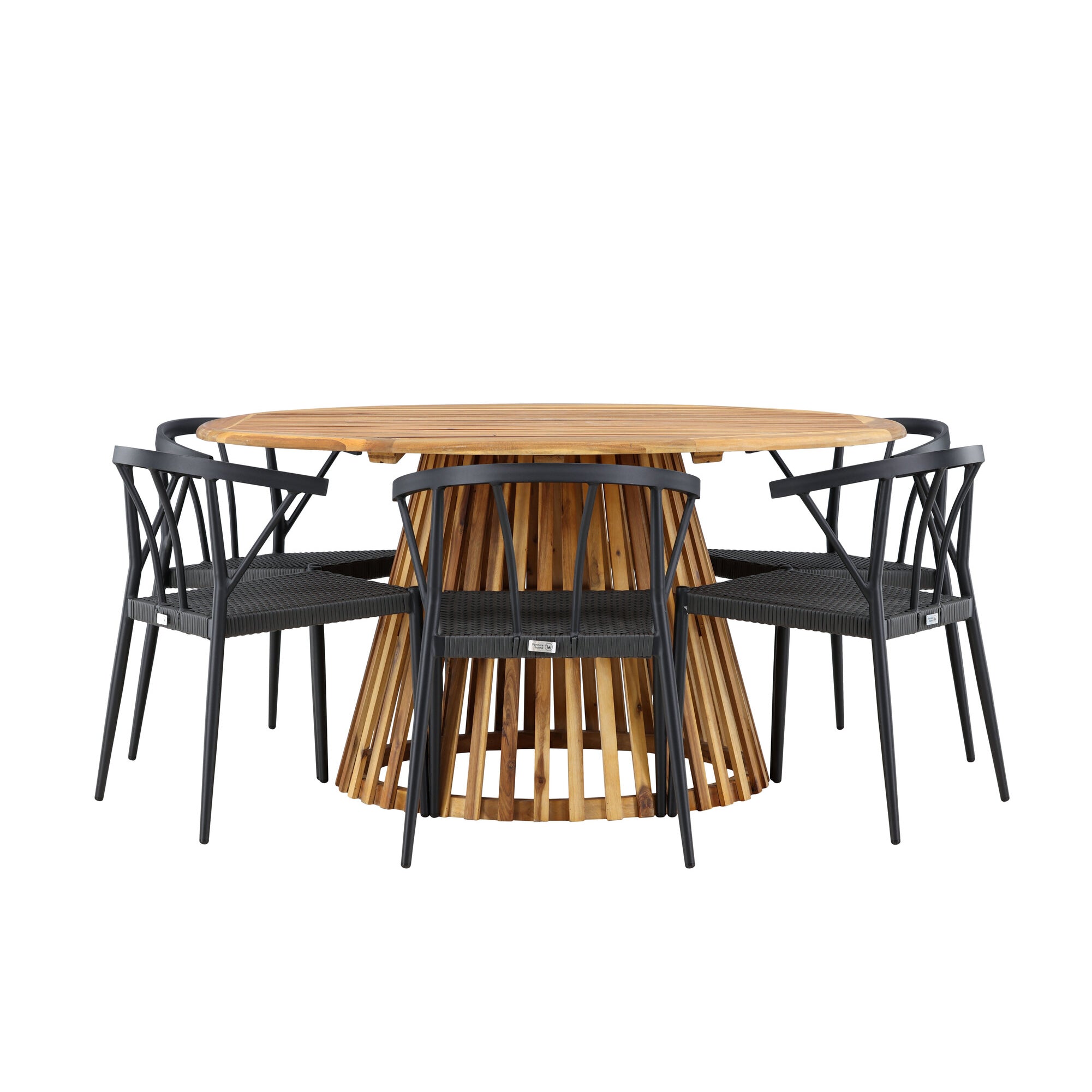 Jídelní stůl Tucumán - Akácie ø120 +Stina - Jídelní židle - Černá - Alu/proutí - POTŘEBUJETE vyšší výšku sedáku! _6