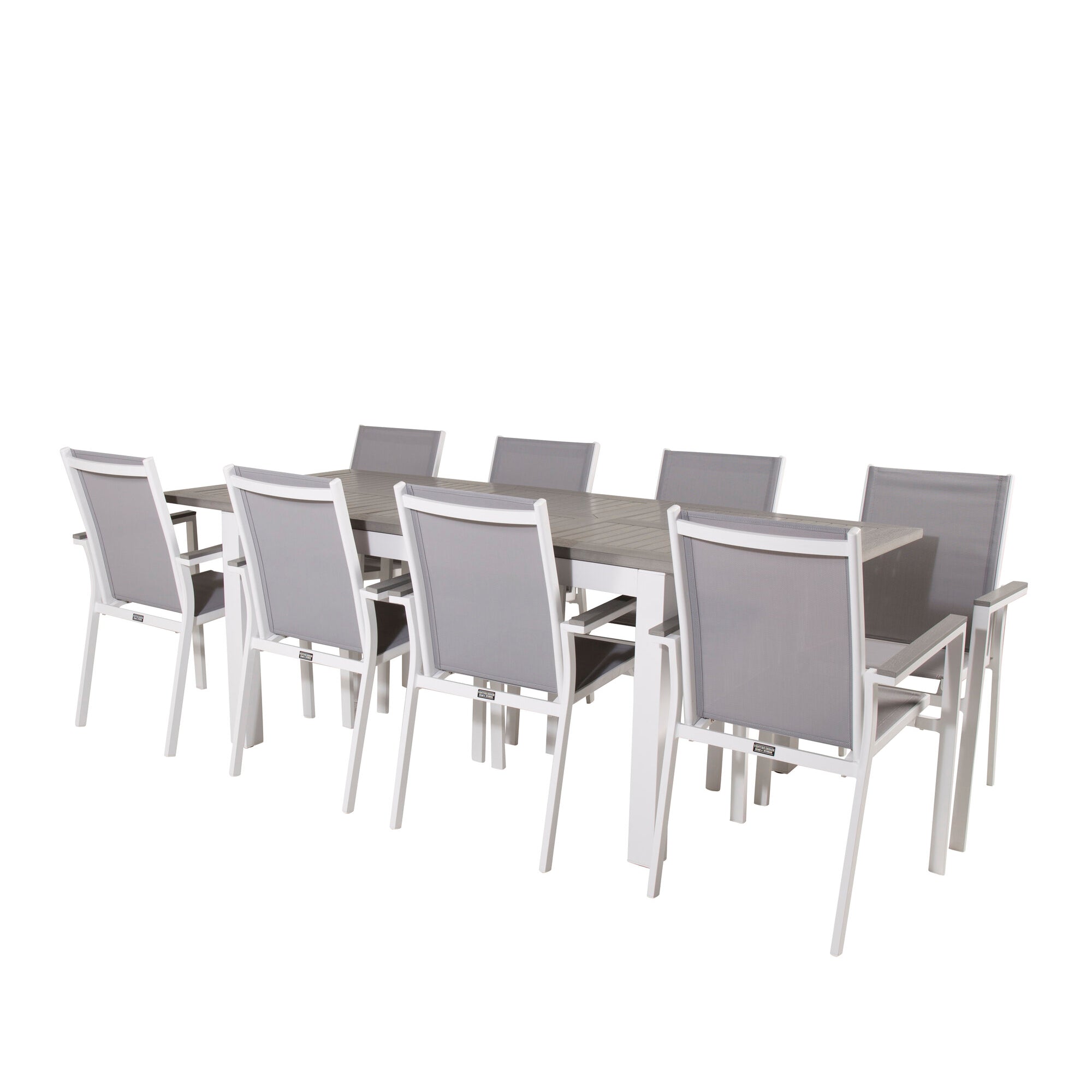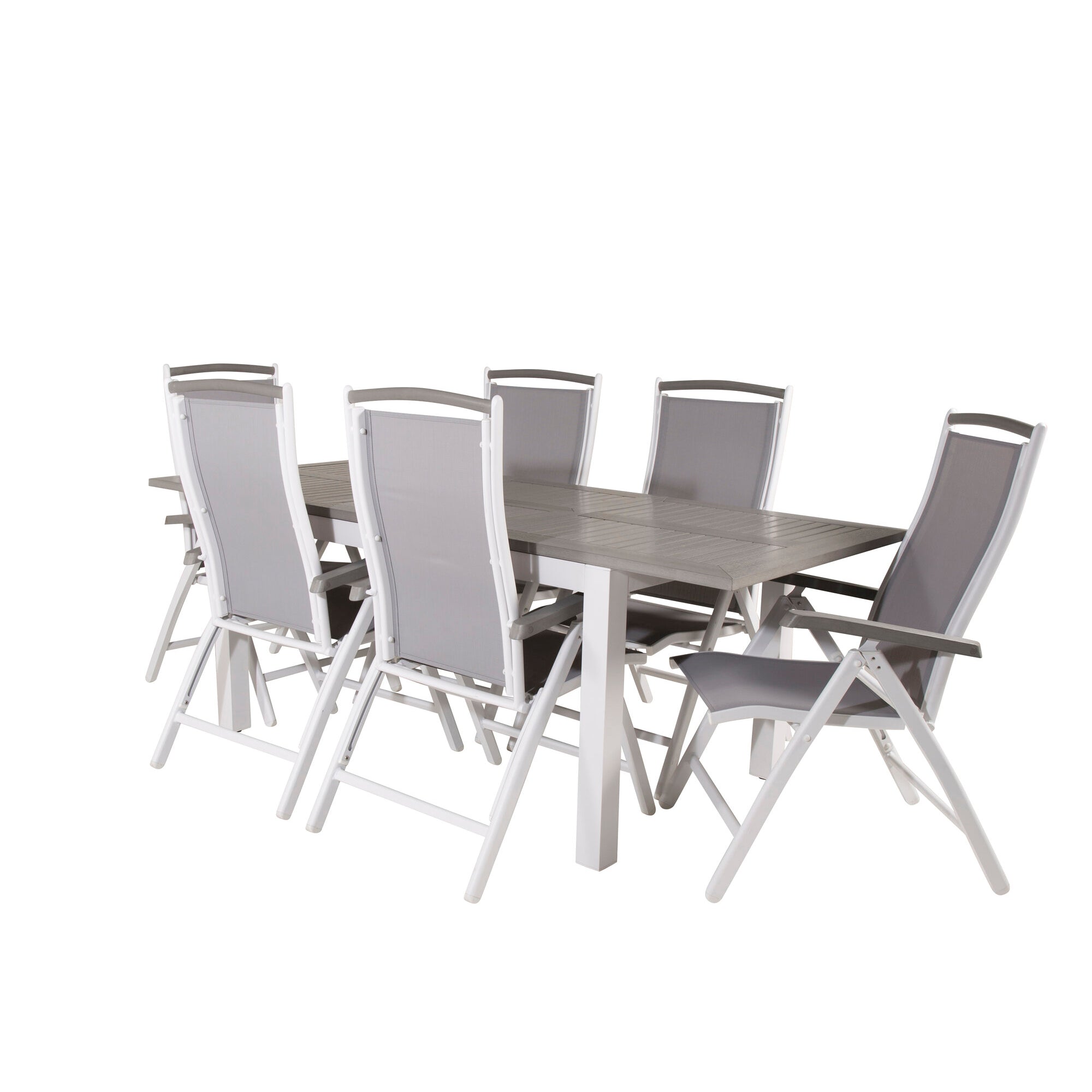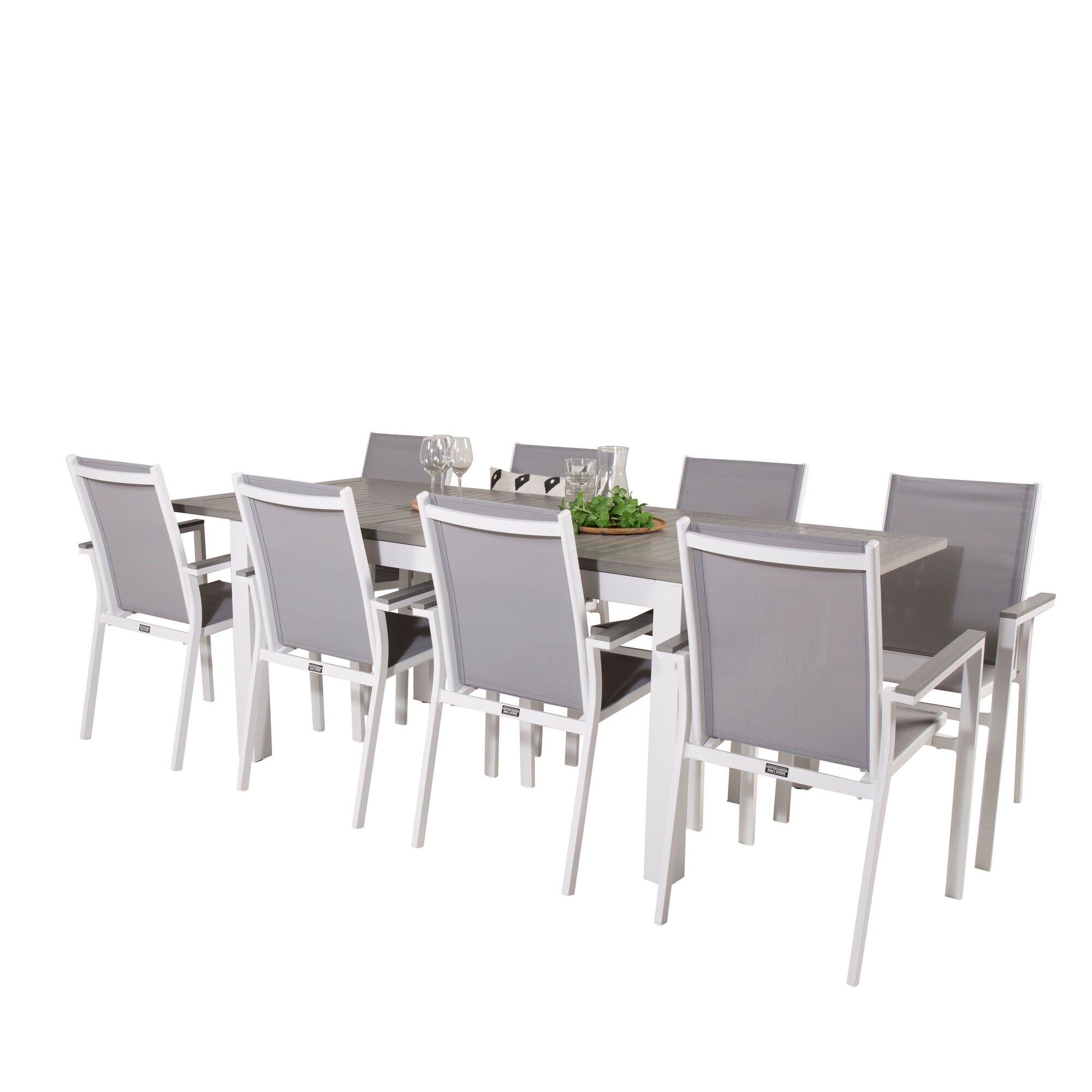 Albany Table - 160/240 - White/Grey - Albany 5:pos Stol - Vit Aluminium/vit textilene/aintwood 6