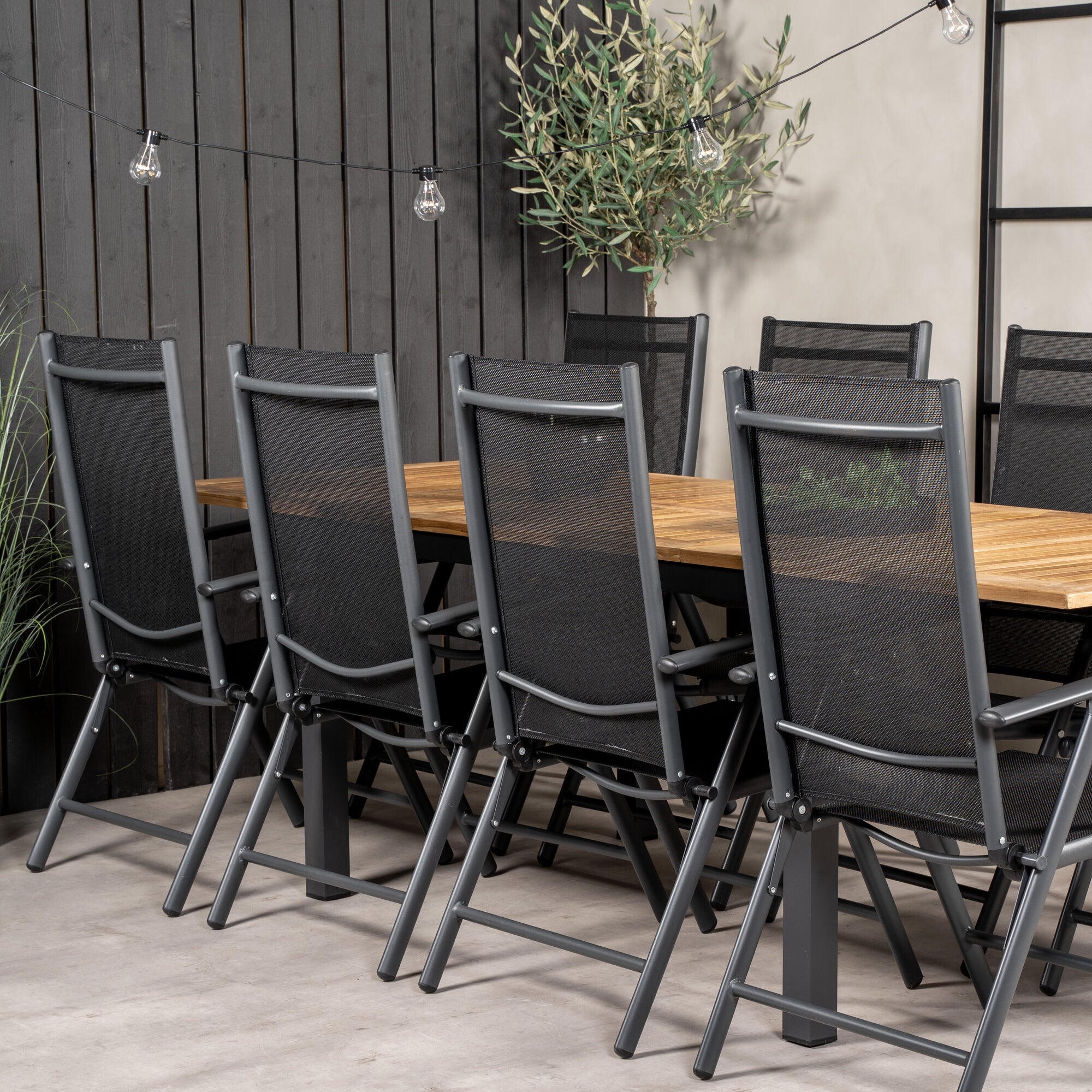 Jídelní stůl Panama 160/240*90 - Black Alu / Teak+Break 5:pos Židle - Black Alu / Black Textilene_8