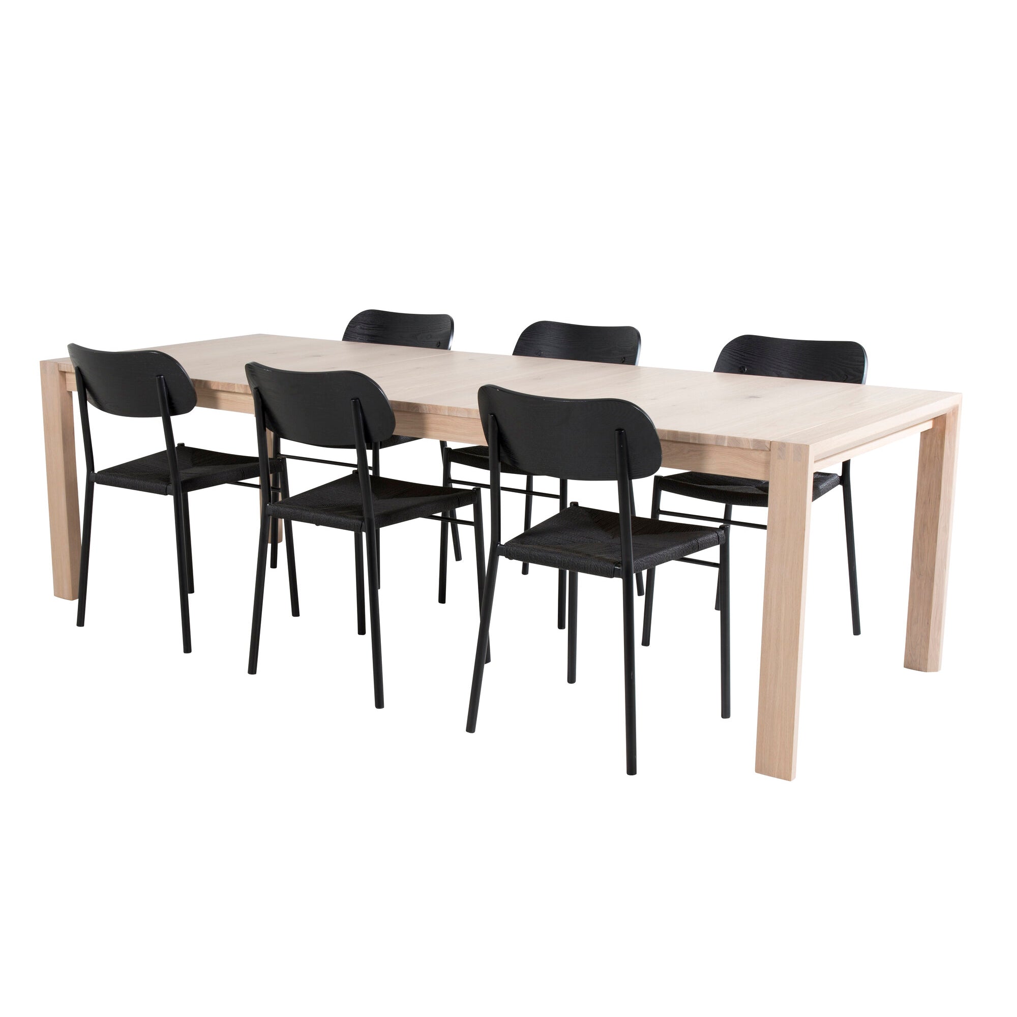 Posuvný rozkládací stůl - White Wash - 170+40+40cm + Jídelní židle Polly - Černá / Černá _6