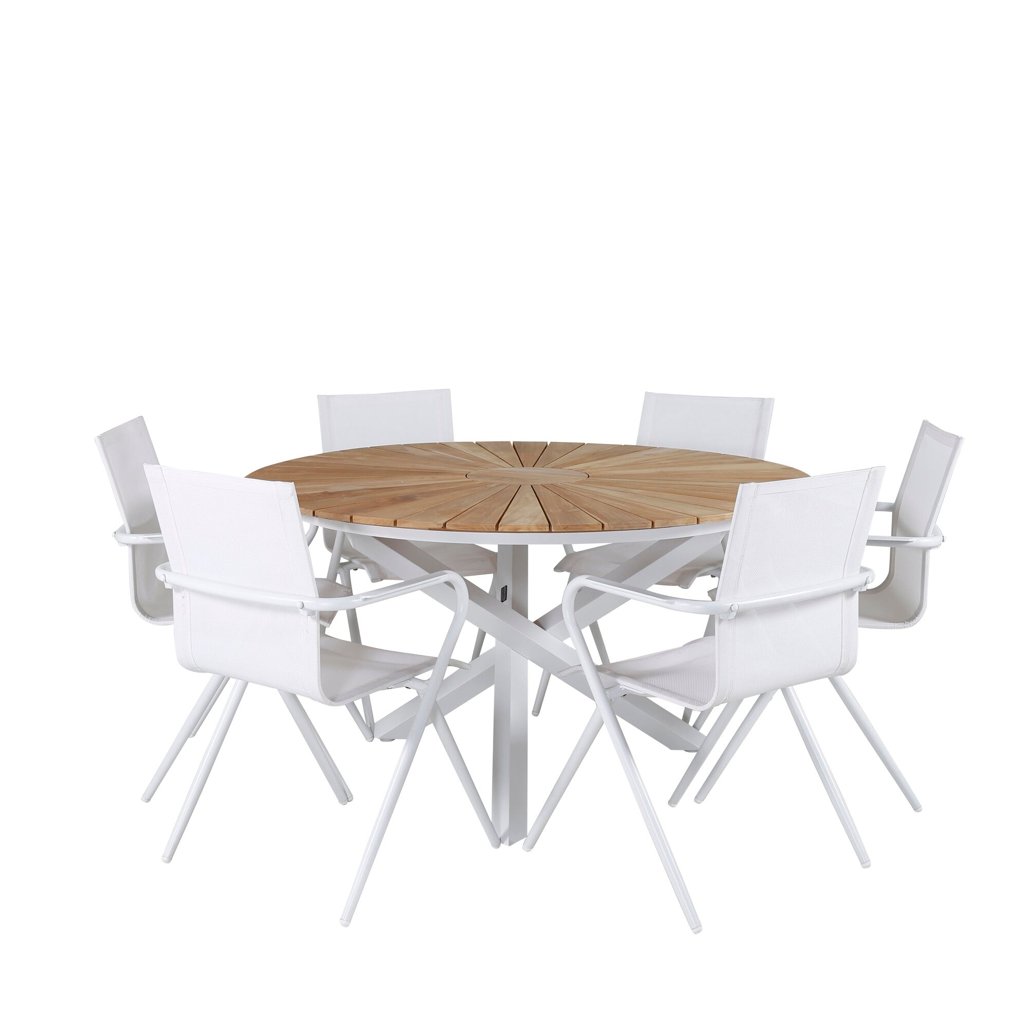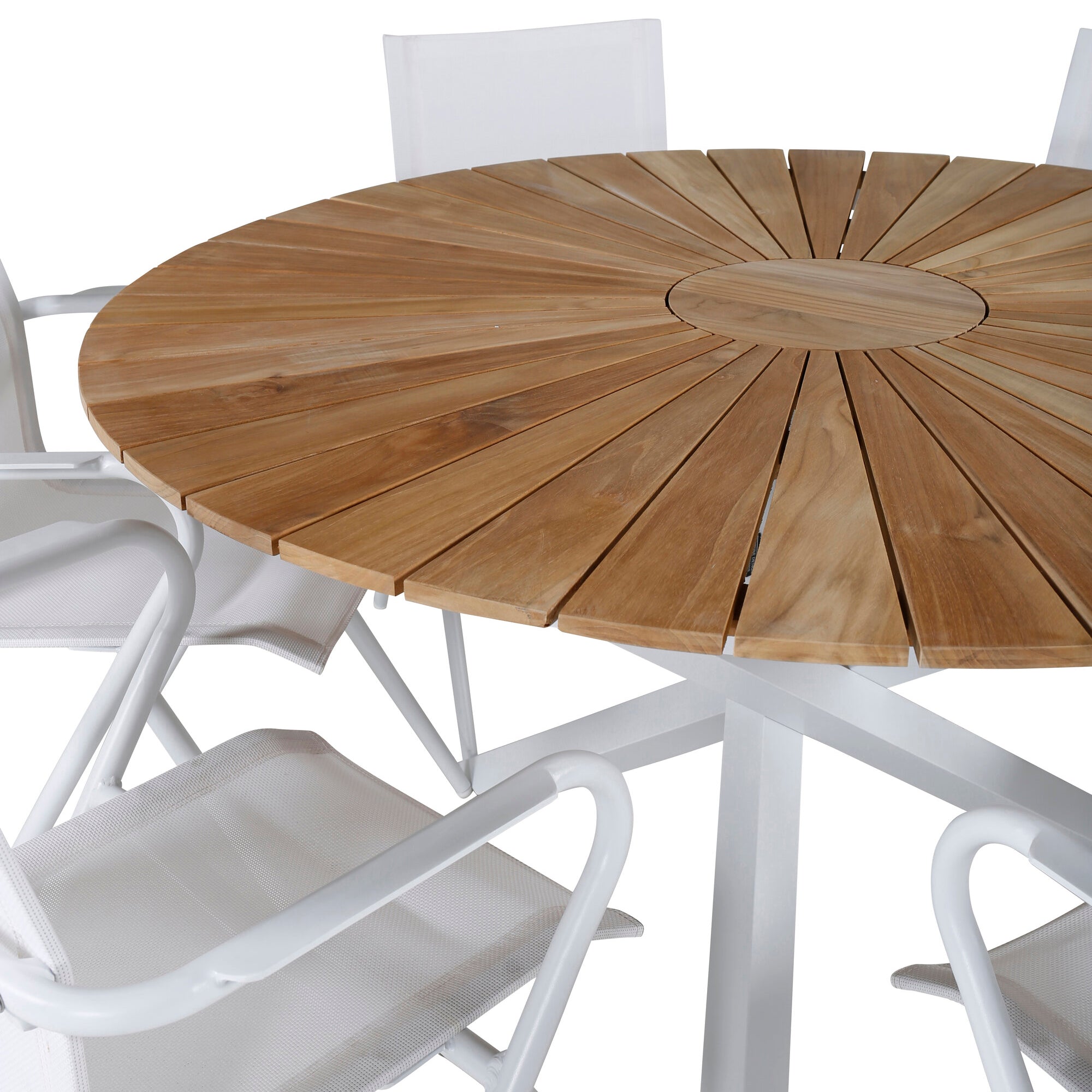 Mexico Stůl ø 140 - Bílá/Teak+Alina Jídelní židle - Bílá Alu / Bílá Textilene_6