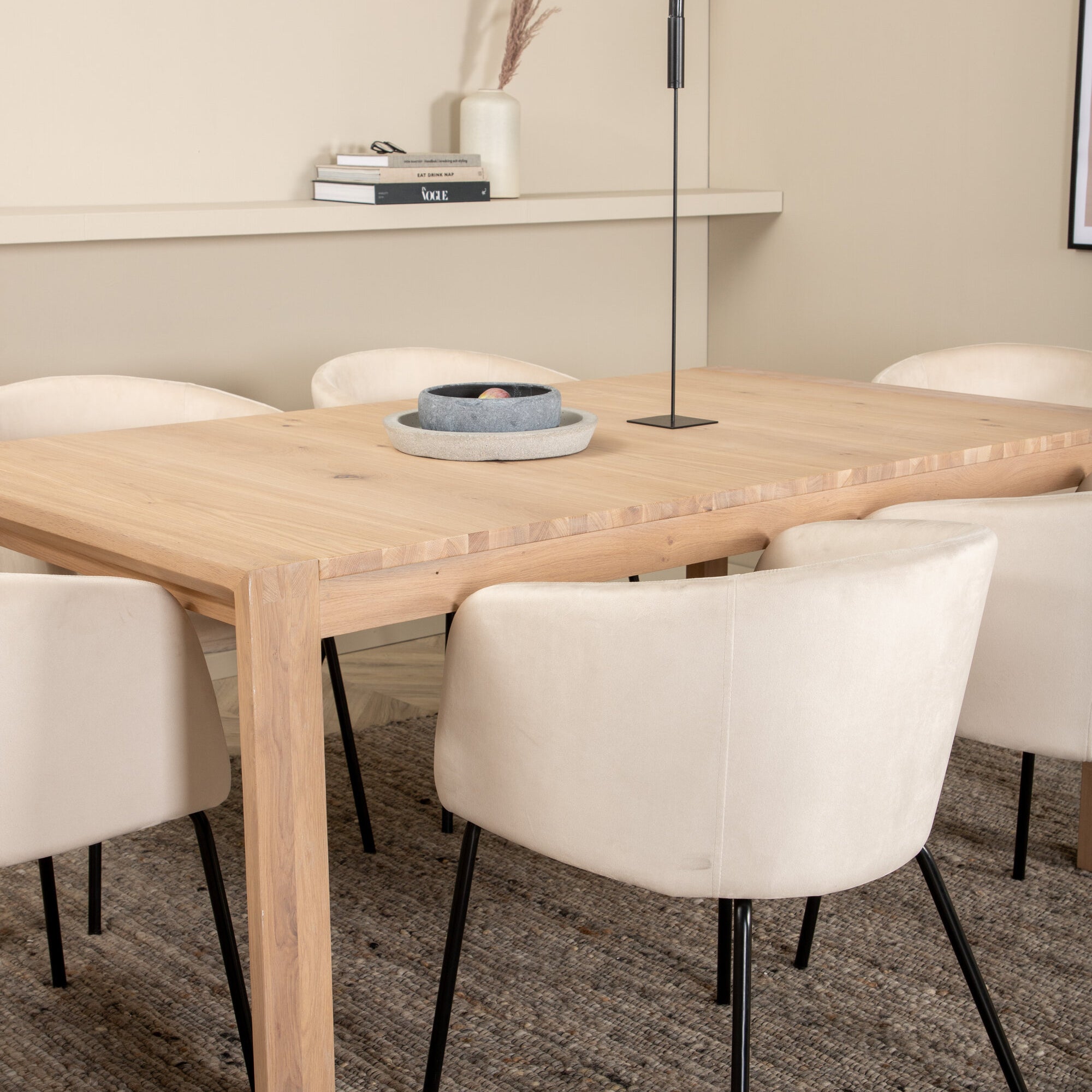 Lina Jídelní stůl - Béžová - 200*90 + Malina Jídelní židle Alumnium - Příroda / Proutí _6