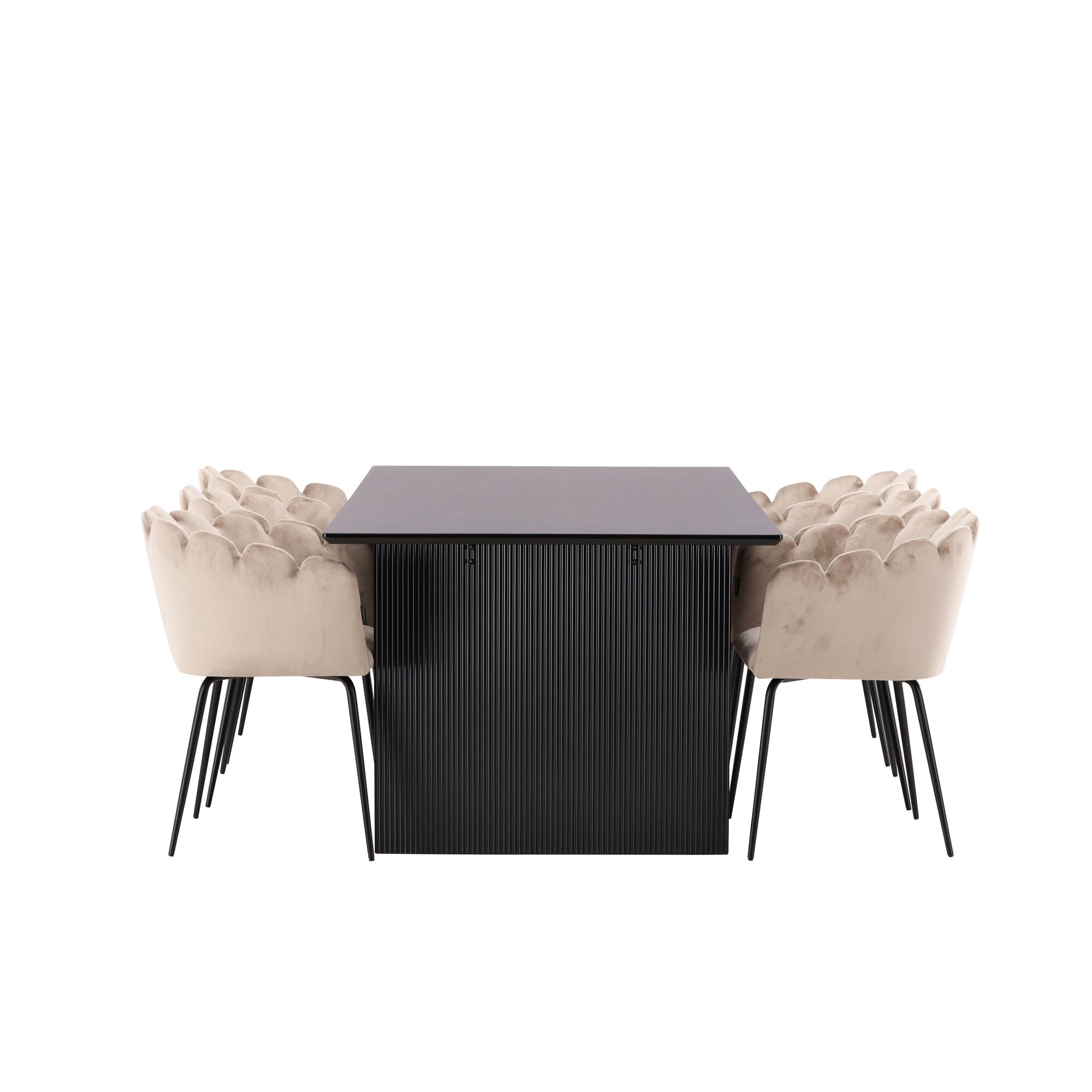 Vail Jídelní stůl - Černá / Zakouřená černá MDF + Židle Limhamn - Černá / Béžová Velvet _6