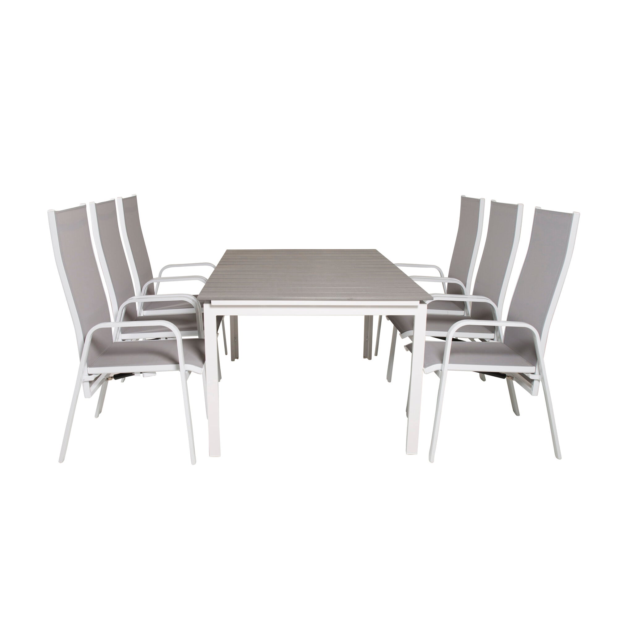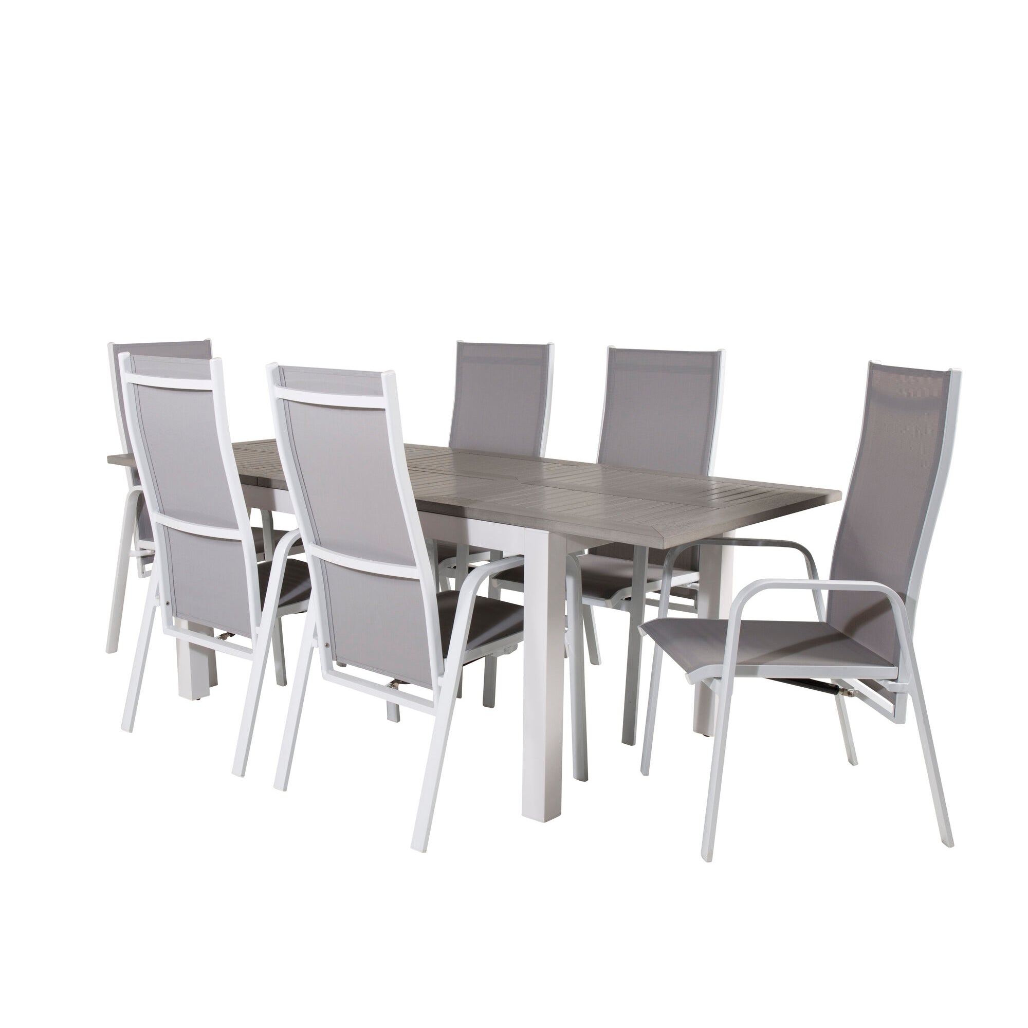 Jídelní stůl Albany 160/240*100 - Bílá Alu / Šedá Aintwood+Copacabana Polohovací křeslo (stohovatelné) - Bílá Alu / Šedá Textilene_6