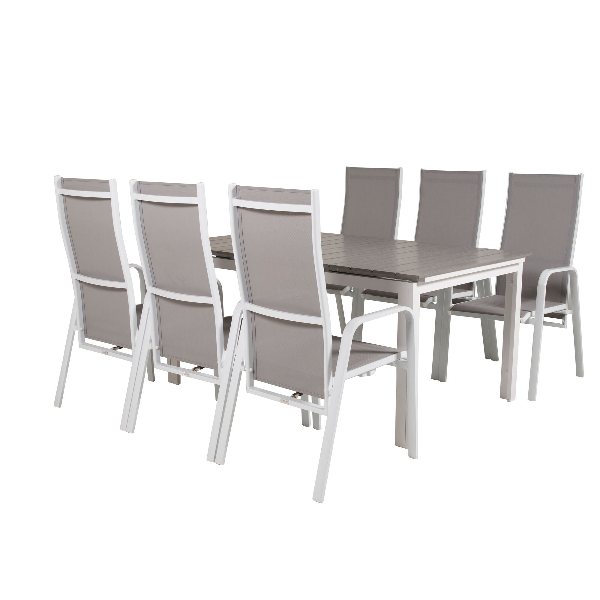 Jídelní stůl Llama 205*100 - Bílá Alu / Šedá HPL - Albany 5:pos Židle - Bílá/Šedá 6