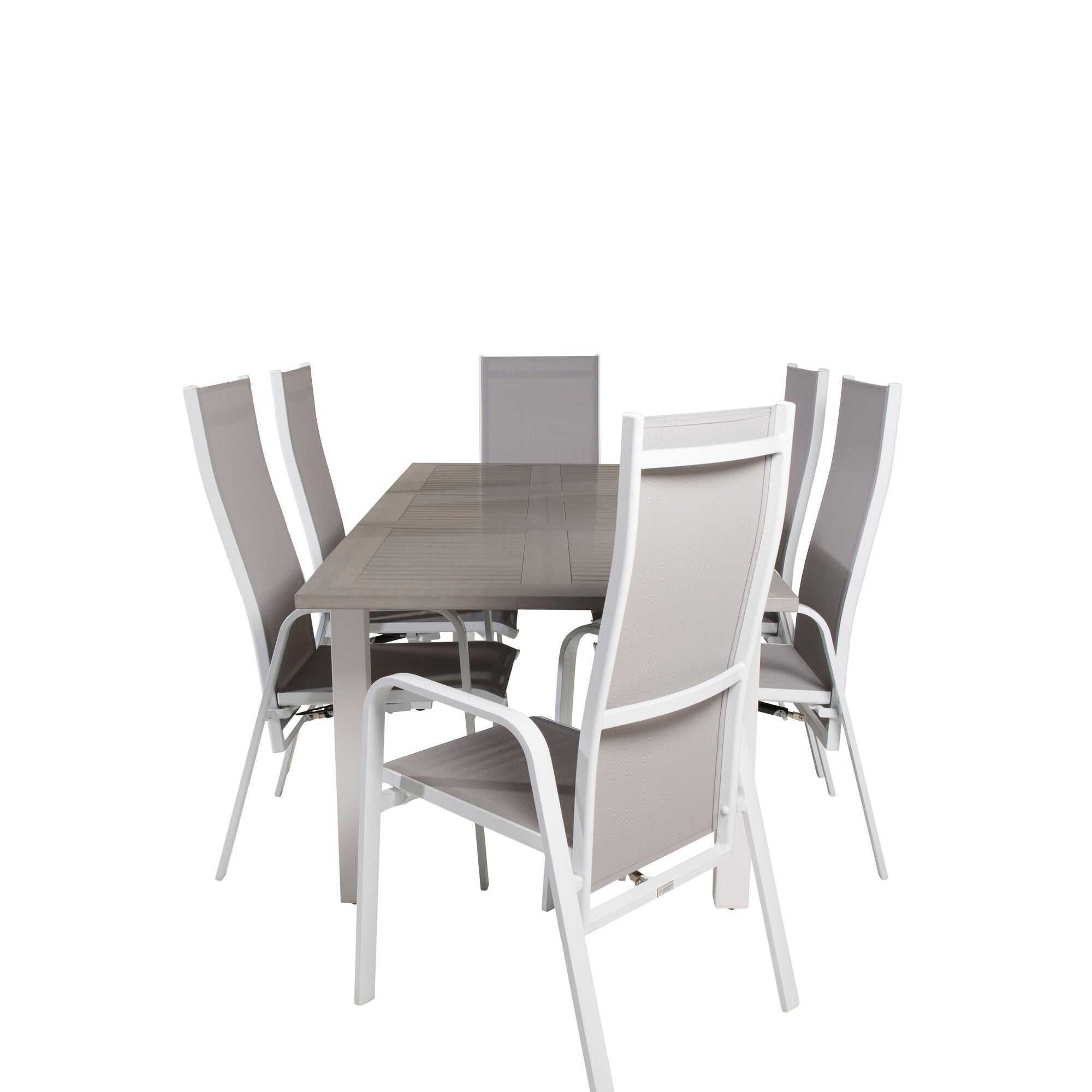 Jídelní stůl Albany 152/210*90 - Bílá Alu / Šedá Aintwood+Copacabana Polohovací křeslo (stohovatelné) - Bílá Alu / Šedá Textilene_6