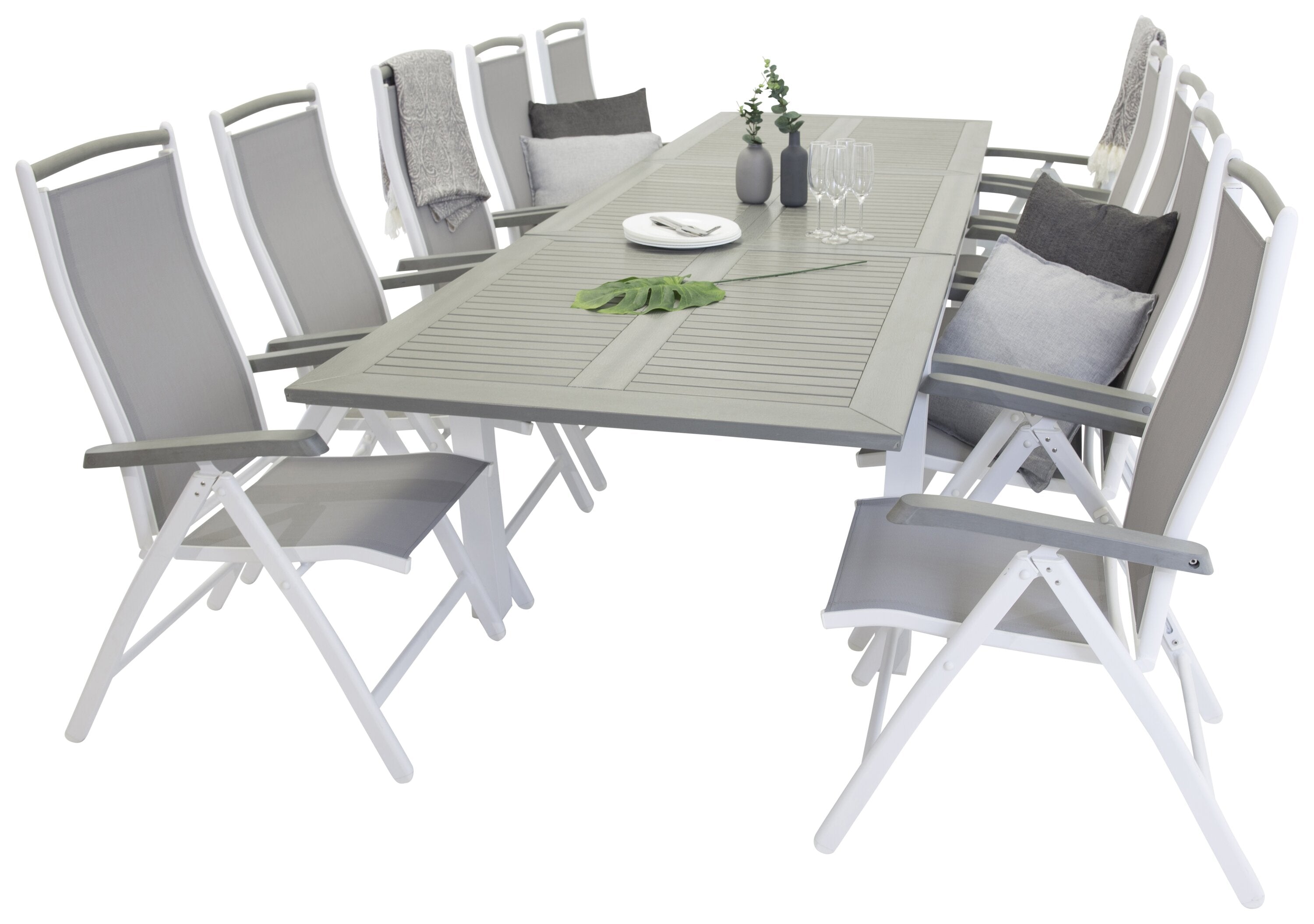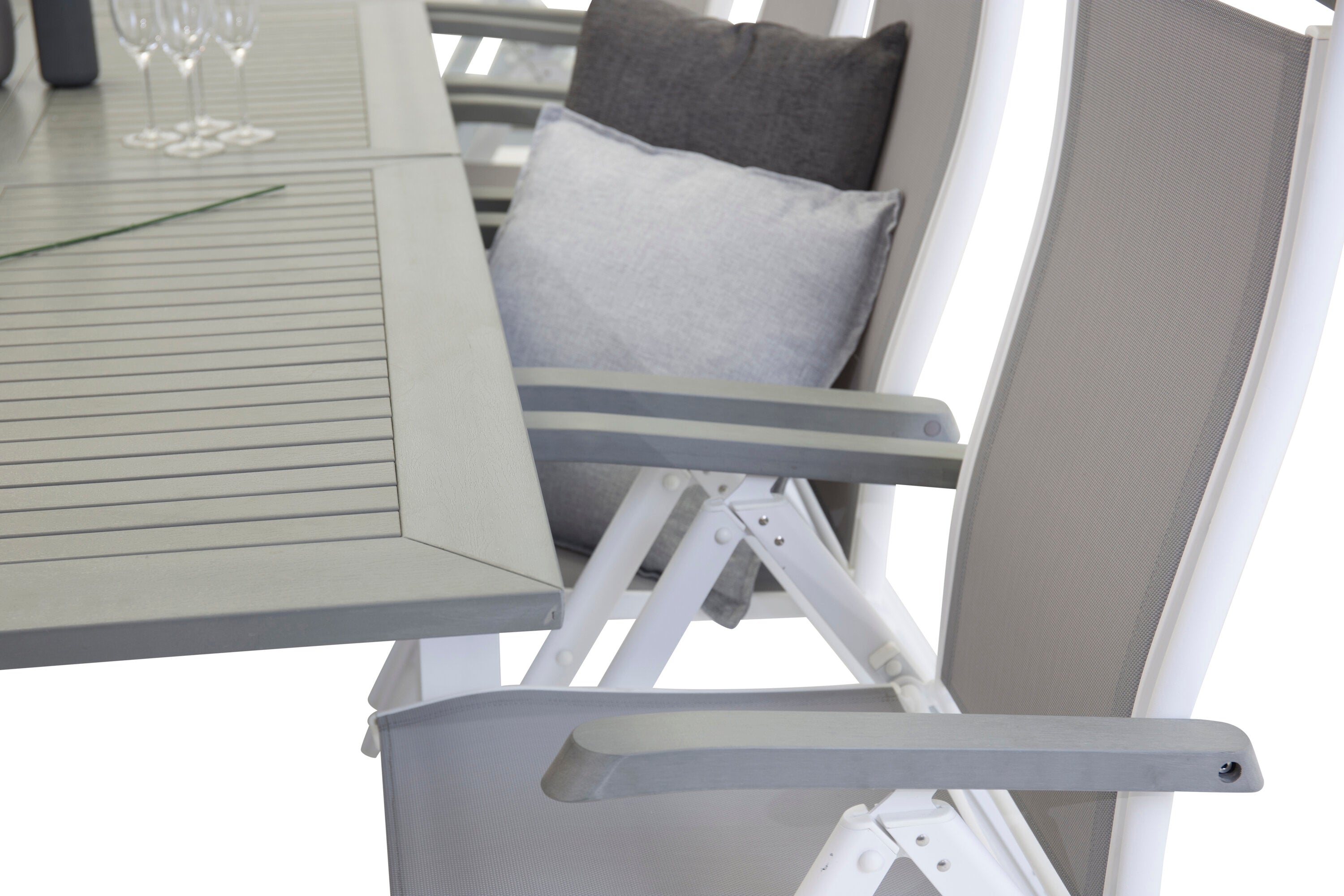 Jídelní stůl Albany 224/324*100 - Bílá Alu / Šedá Aintwood+Copacabana Polohovací křeslo (stohovatelné) - Bílá Alu / Šedá Textilene_6