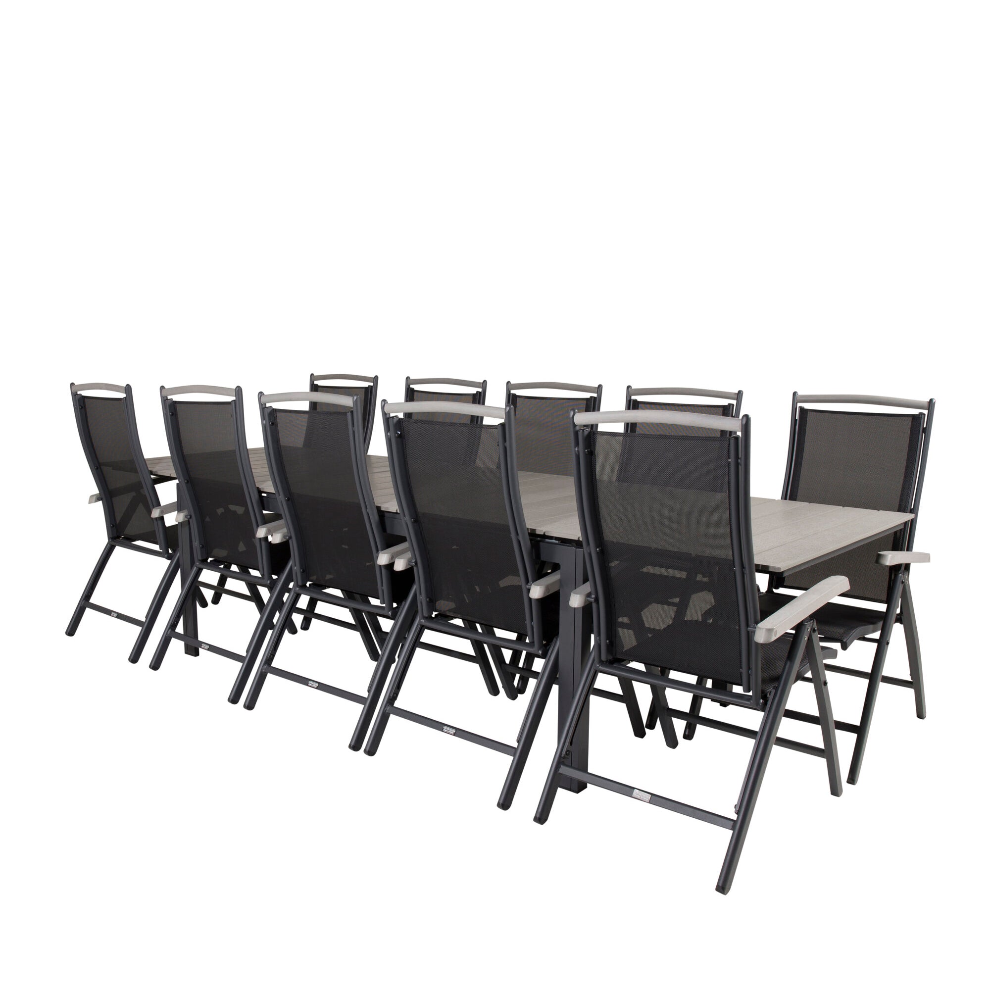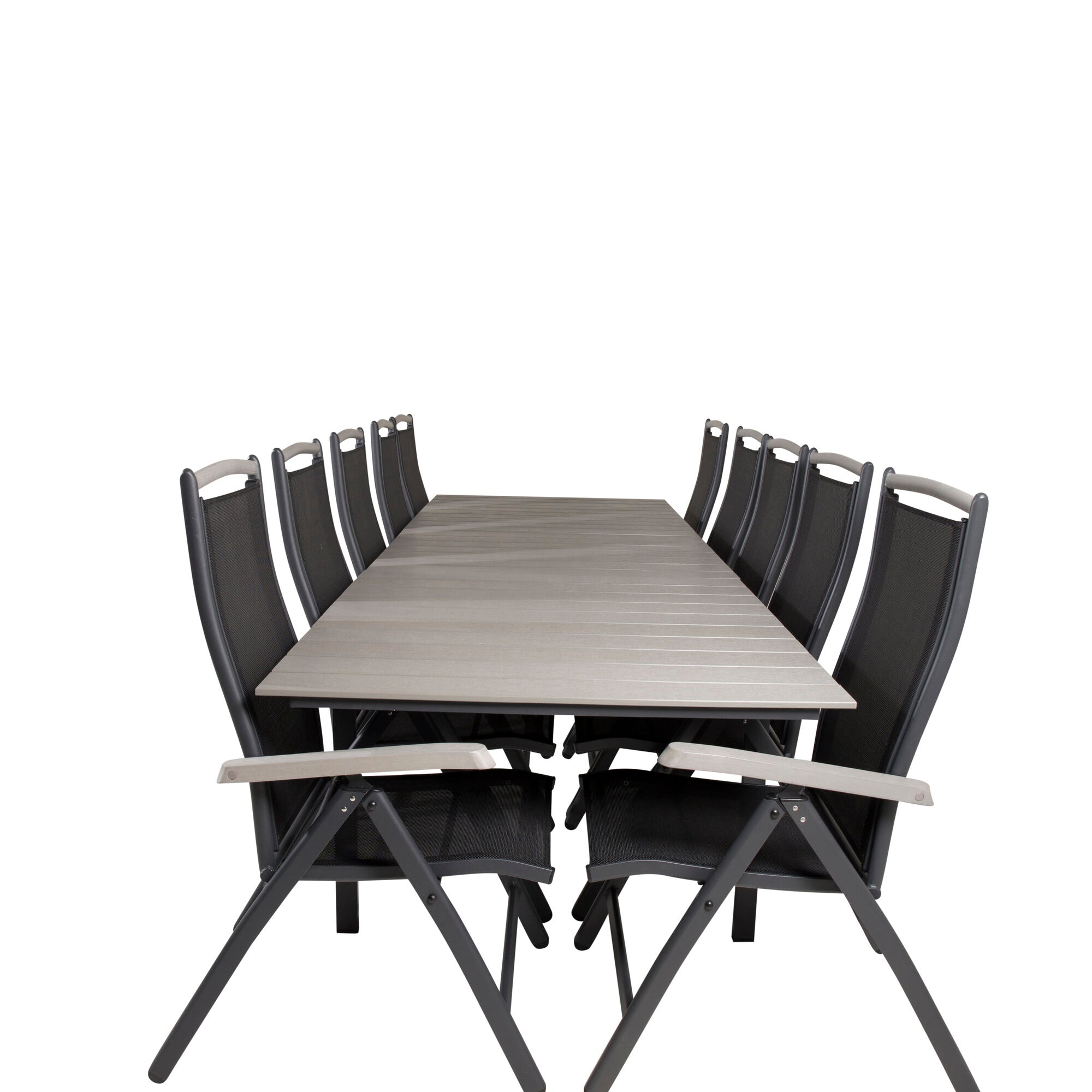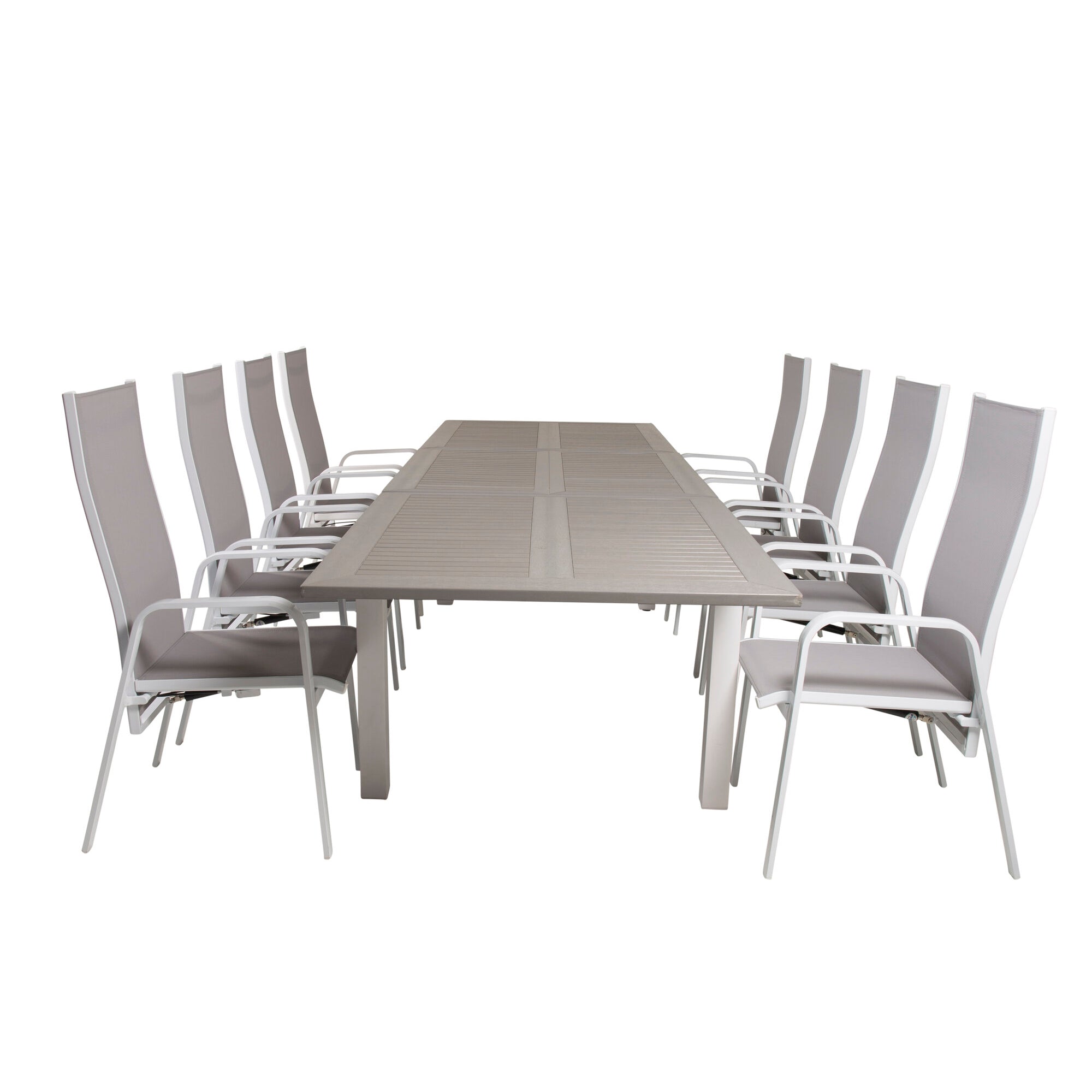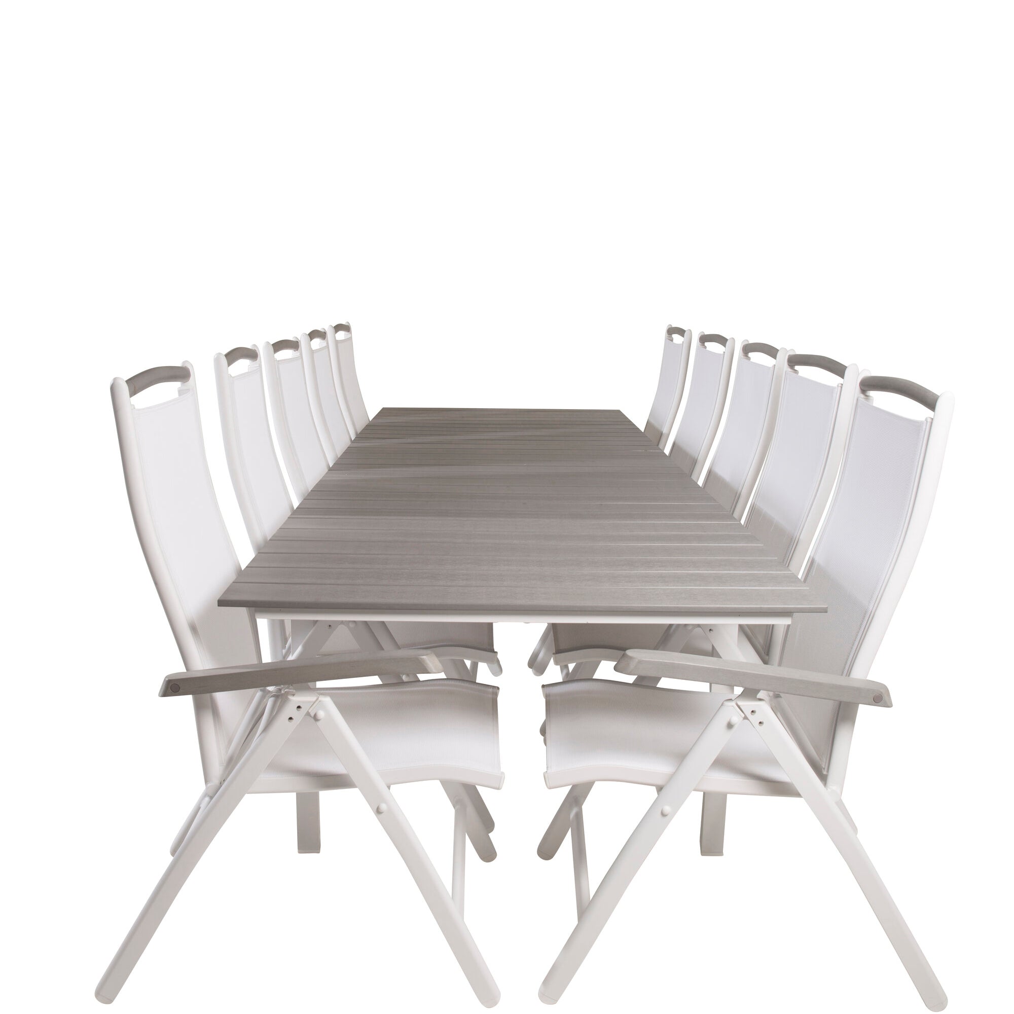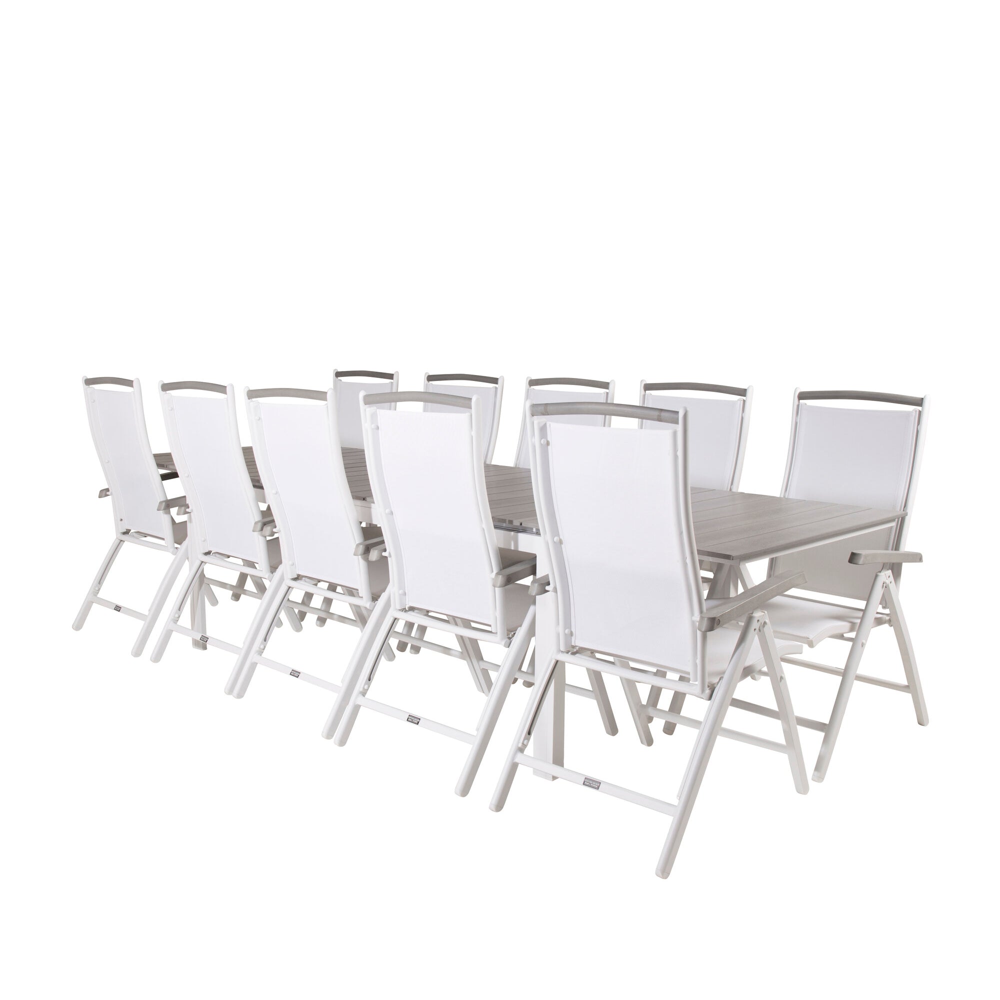 Albany Bord - Vit Alu/grå aintwood - 224/324*100+Albany 5:pos Stol - Vit Alu/grå