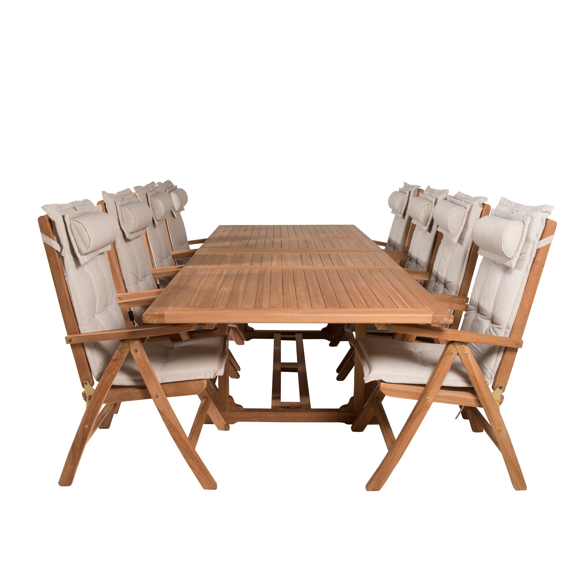 Jídelní stůl Kenya 195/295*110*H75 - Teak+Keňa 5-polohová skládací židle - Teak_