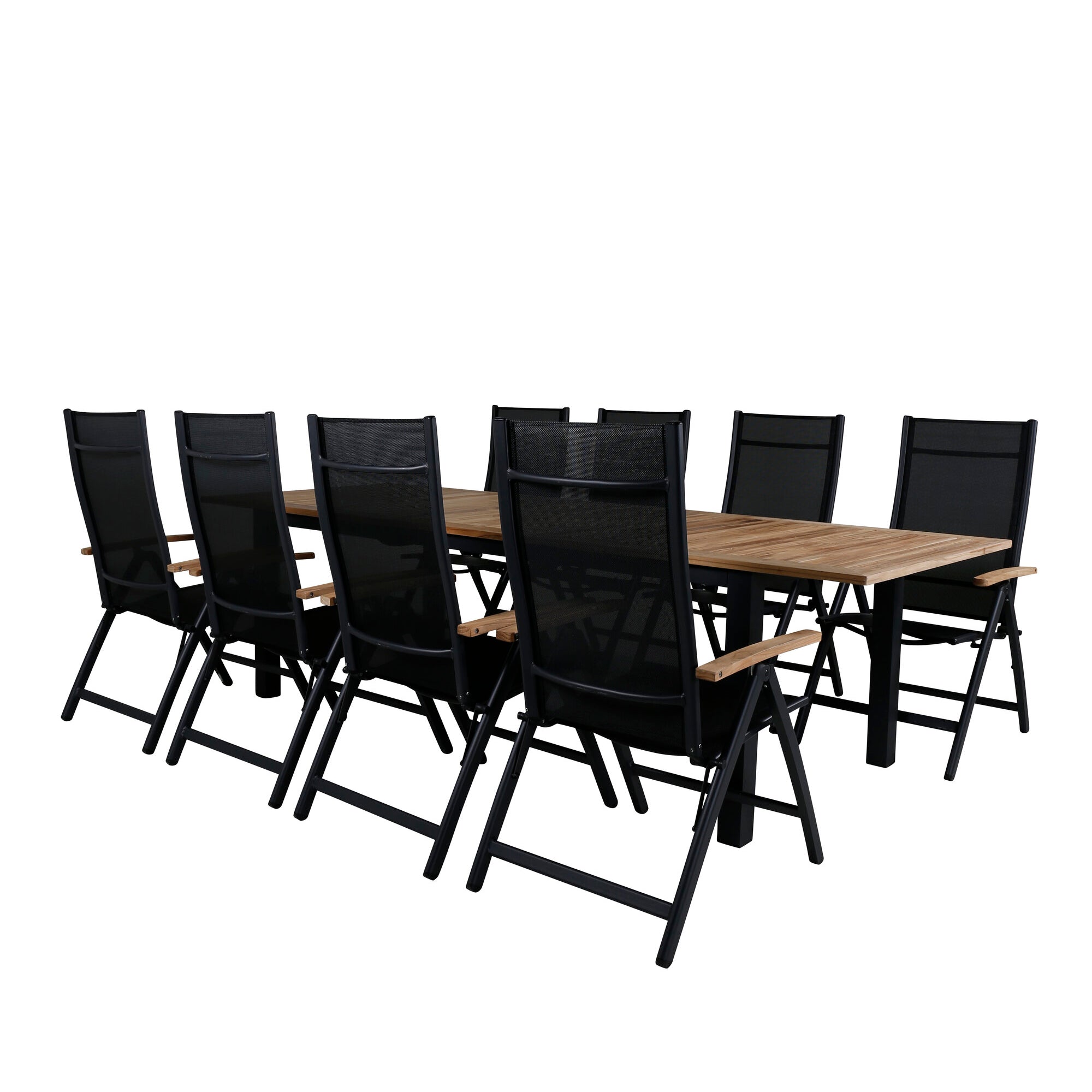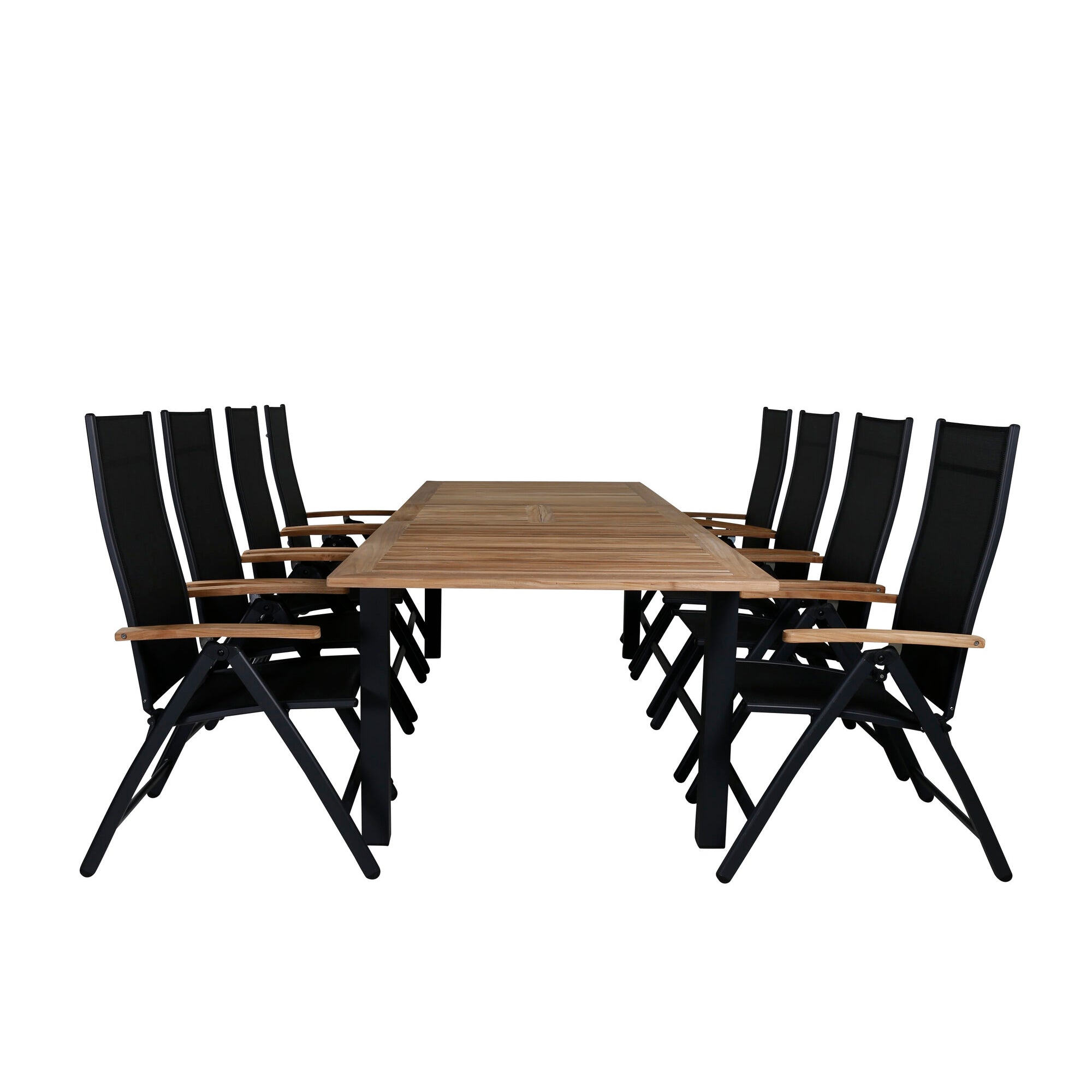 Panama - Stůl - 224/324*100 - svart Alu/Teak+Panama Light 5ti poziční židle Černá / Černá a teak_8
