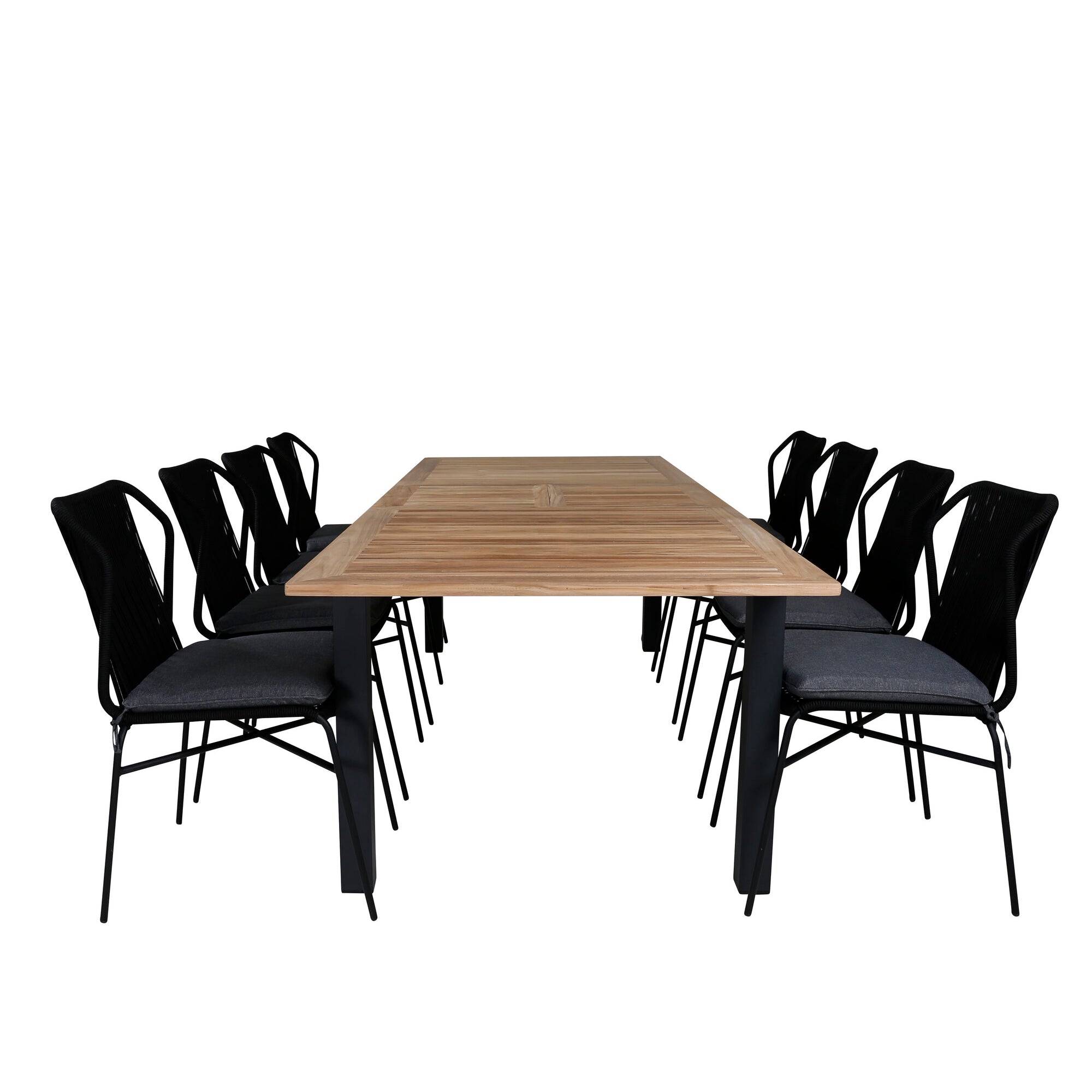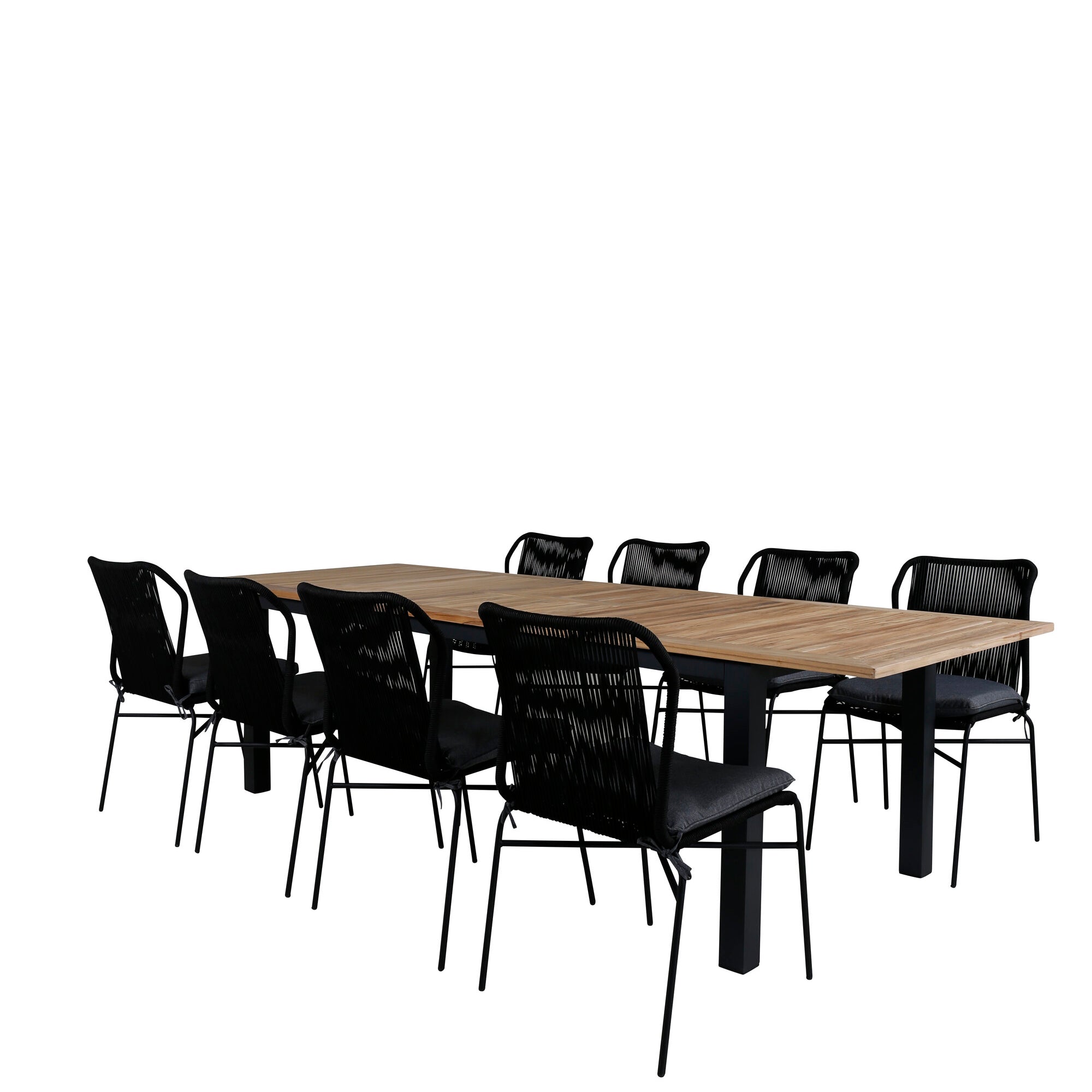Panama - Stůl - 224/324*100 - svart Alu/Teak+Julian Jídelní židle - Černá ocel / Černé lano (stohovatelné)_8