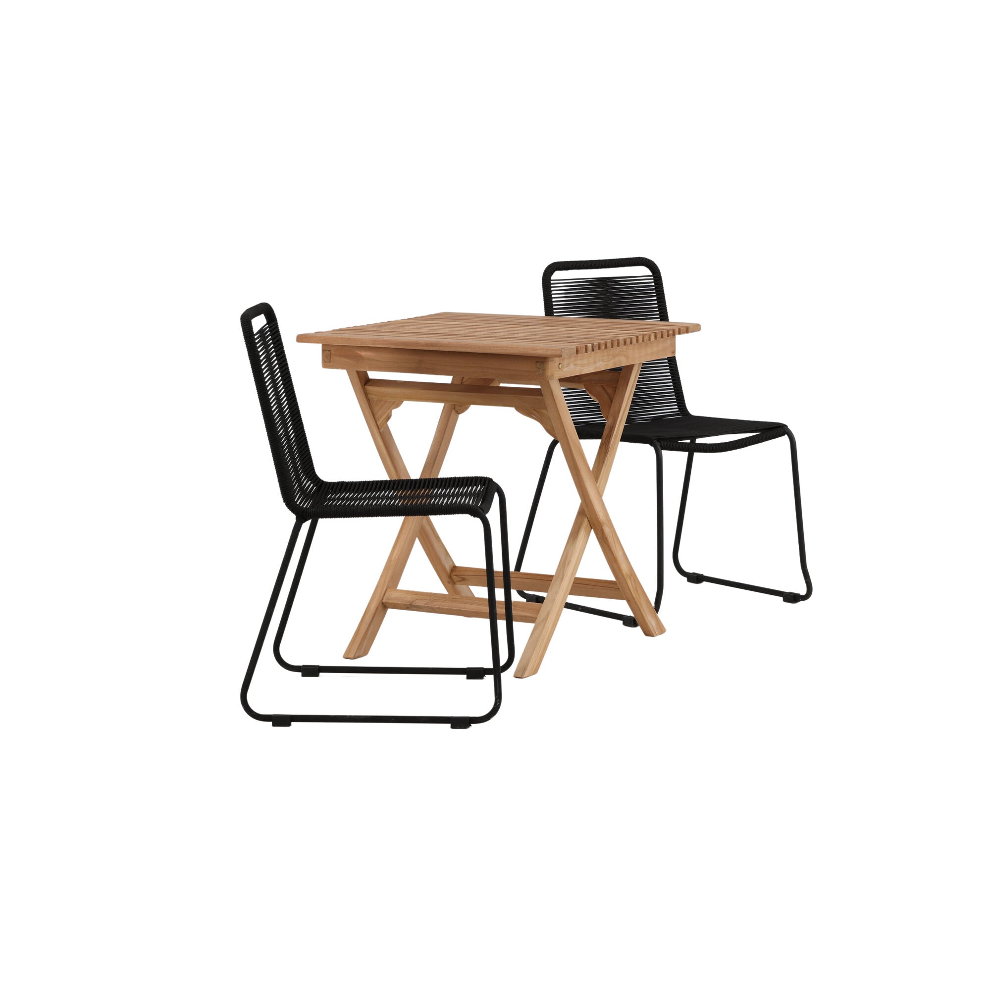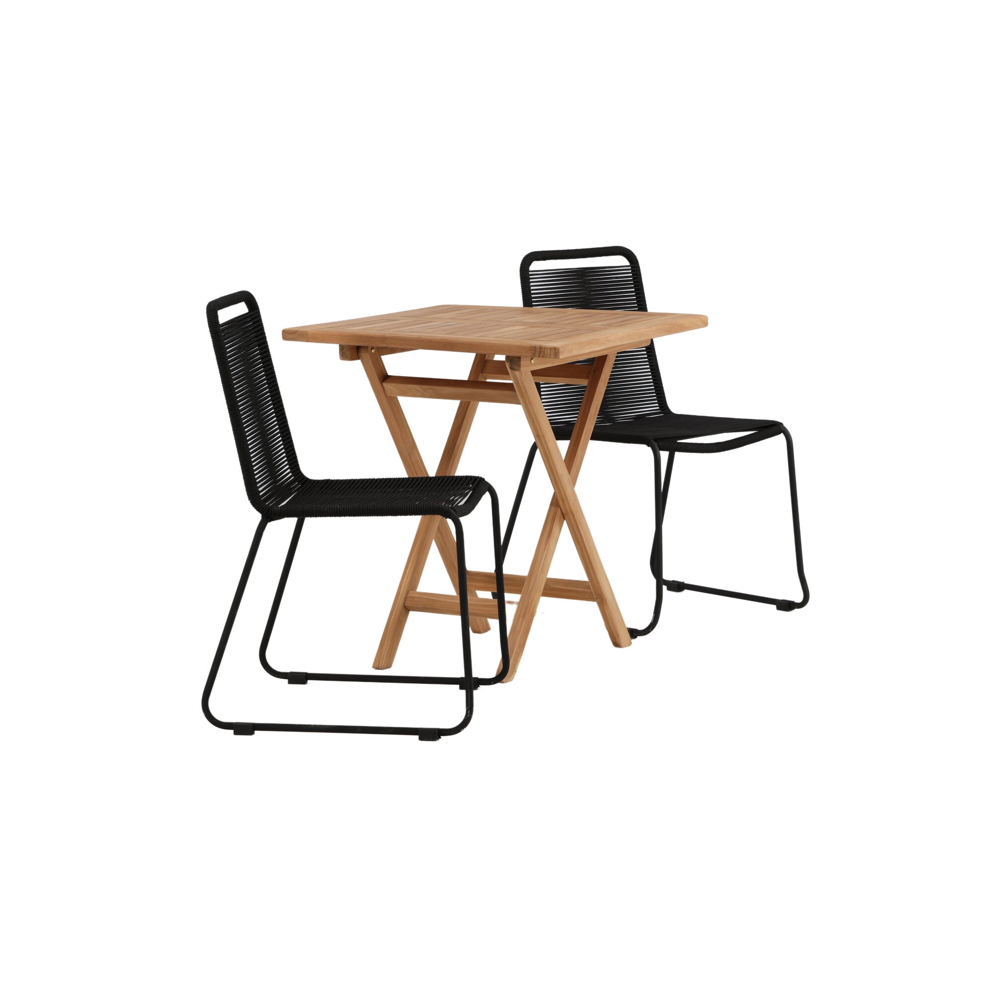 Ghana - Skládací stůl - Přírodní - Teak - 70*70cm _1+ Lindos Stohovací židle - Black Alu / Black Lano _2
