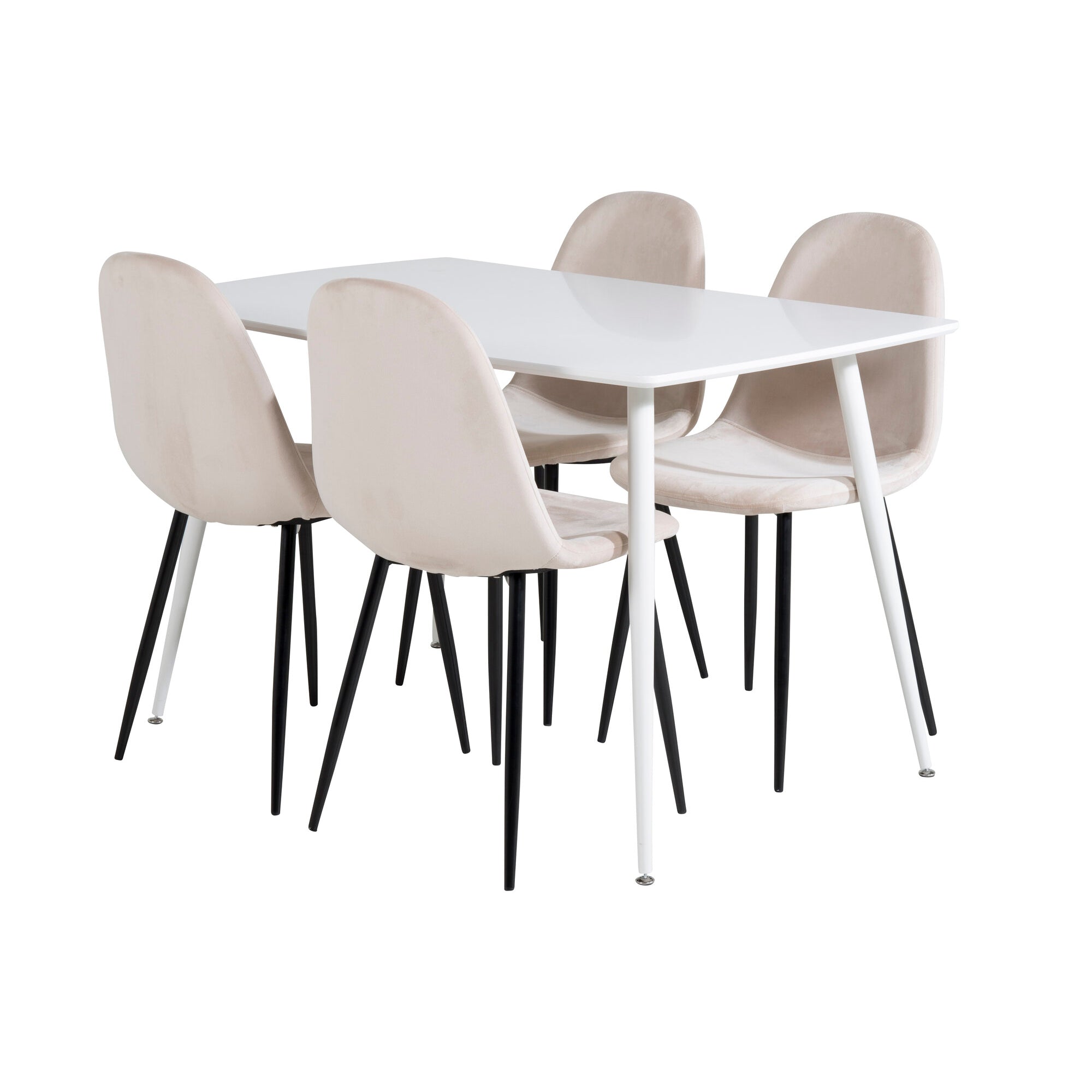 Jídelní stůl Polar 120 cm - Bílá Bílá+Jídelní židle Polar- Černé nohy / Béžová