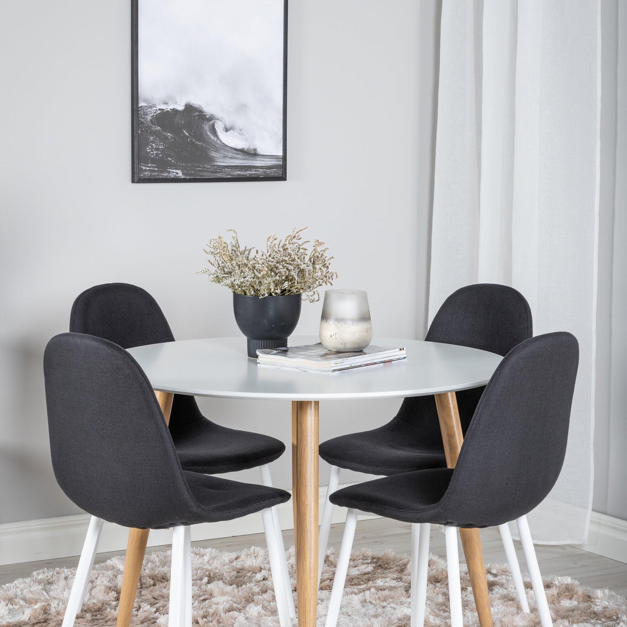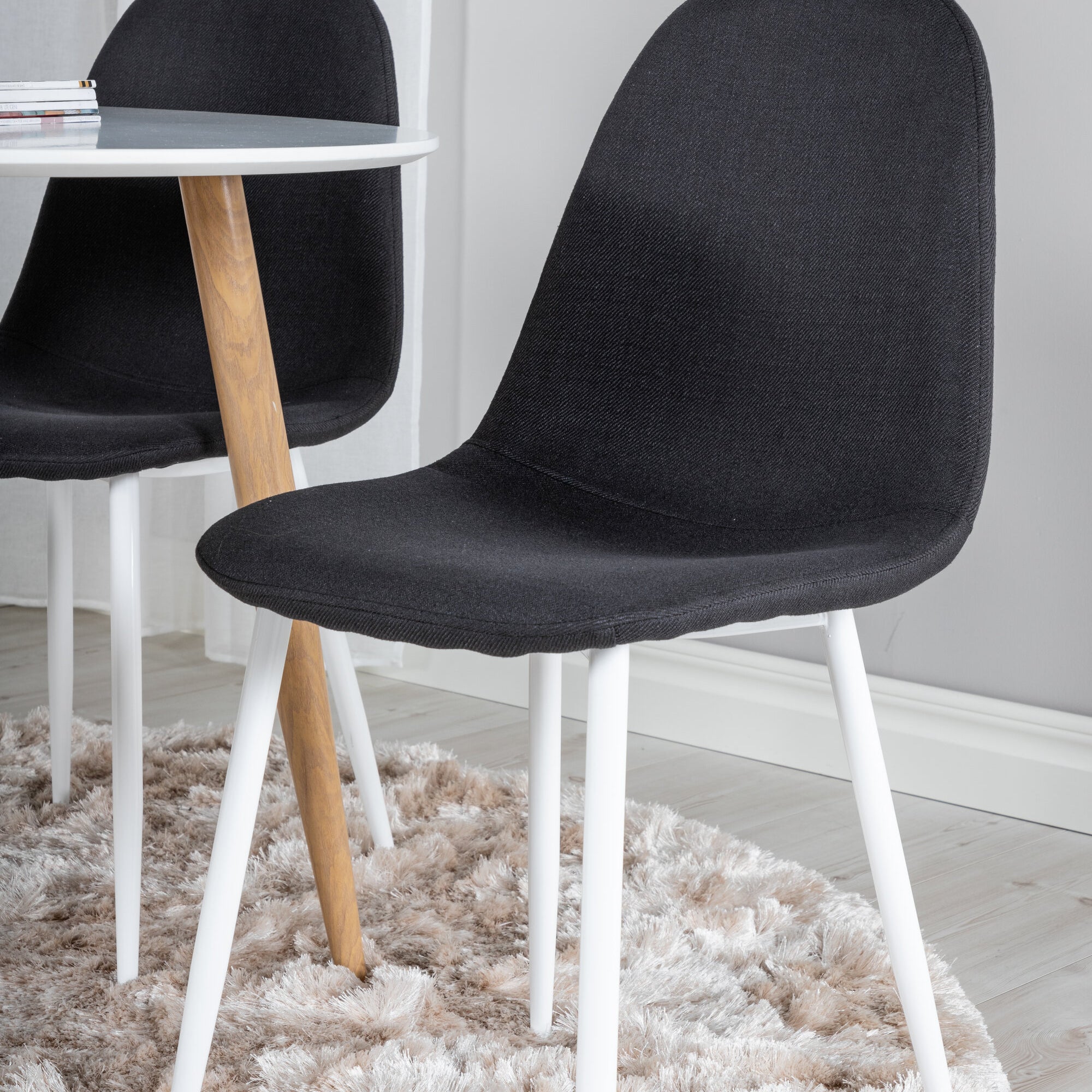Plaza Runt Matbord - Ek-Look / Vit - ø100*H75 + Jídelní židle Polar - Bílé nohy - Černá látka _4