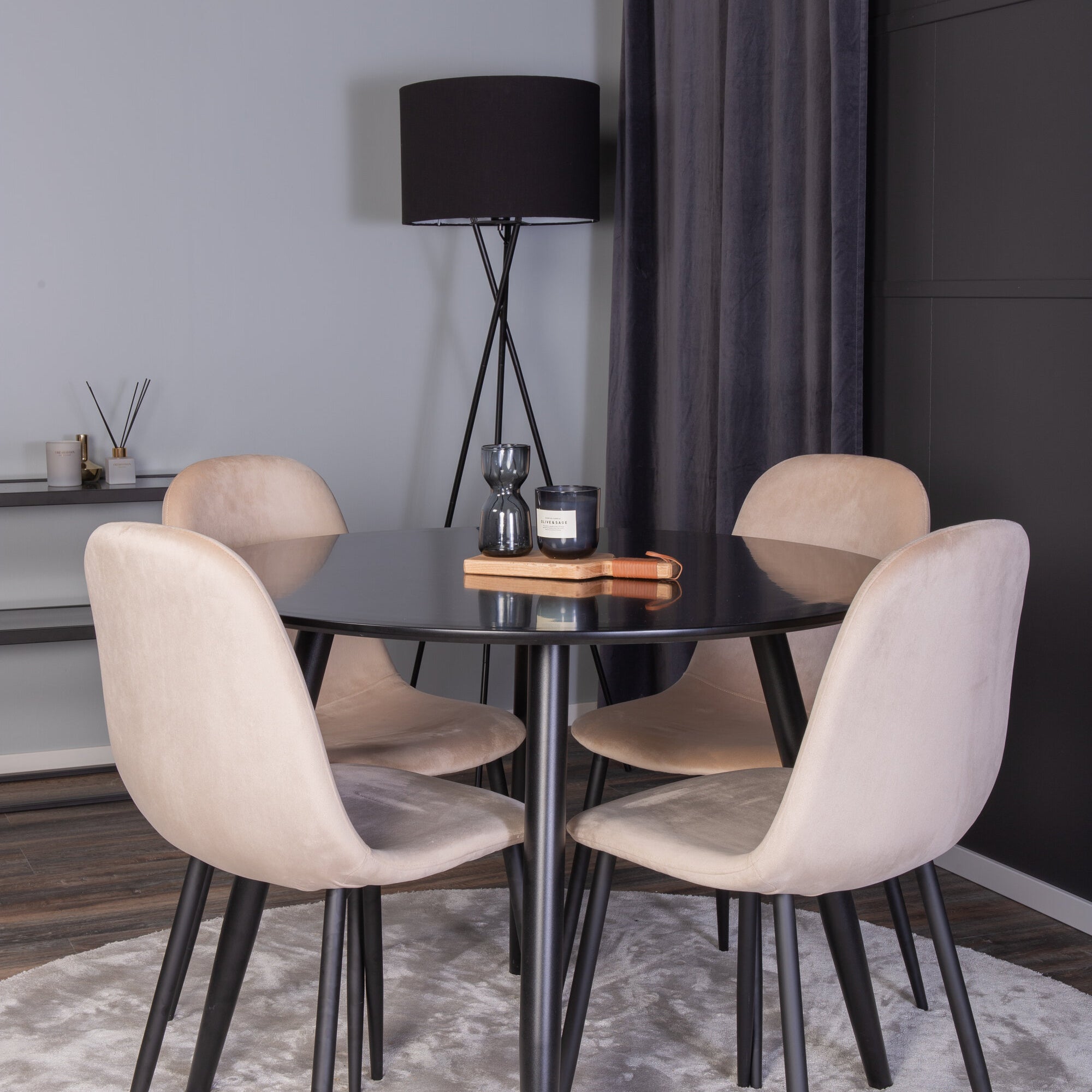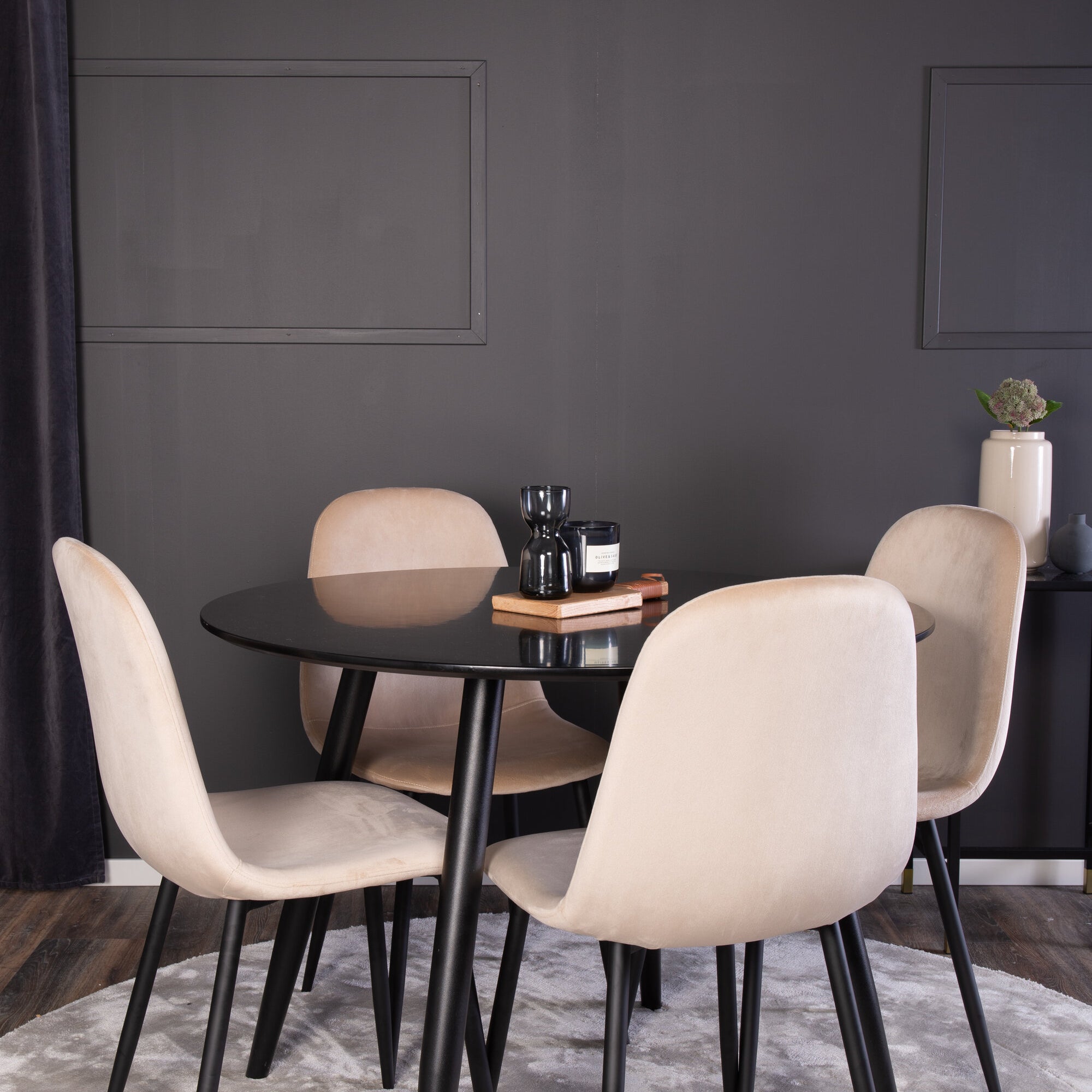 Plaza Runt Matbord - Svart / Svart - ø100*H75 +Jídelní židle Polar - Černé nohy / Béžová Velvet _4