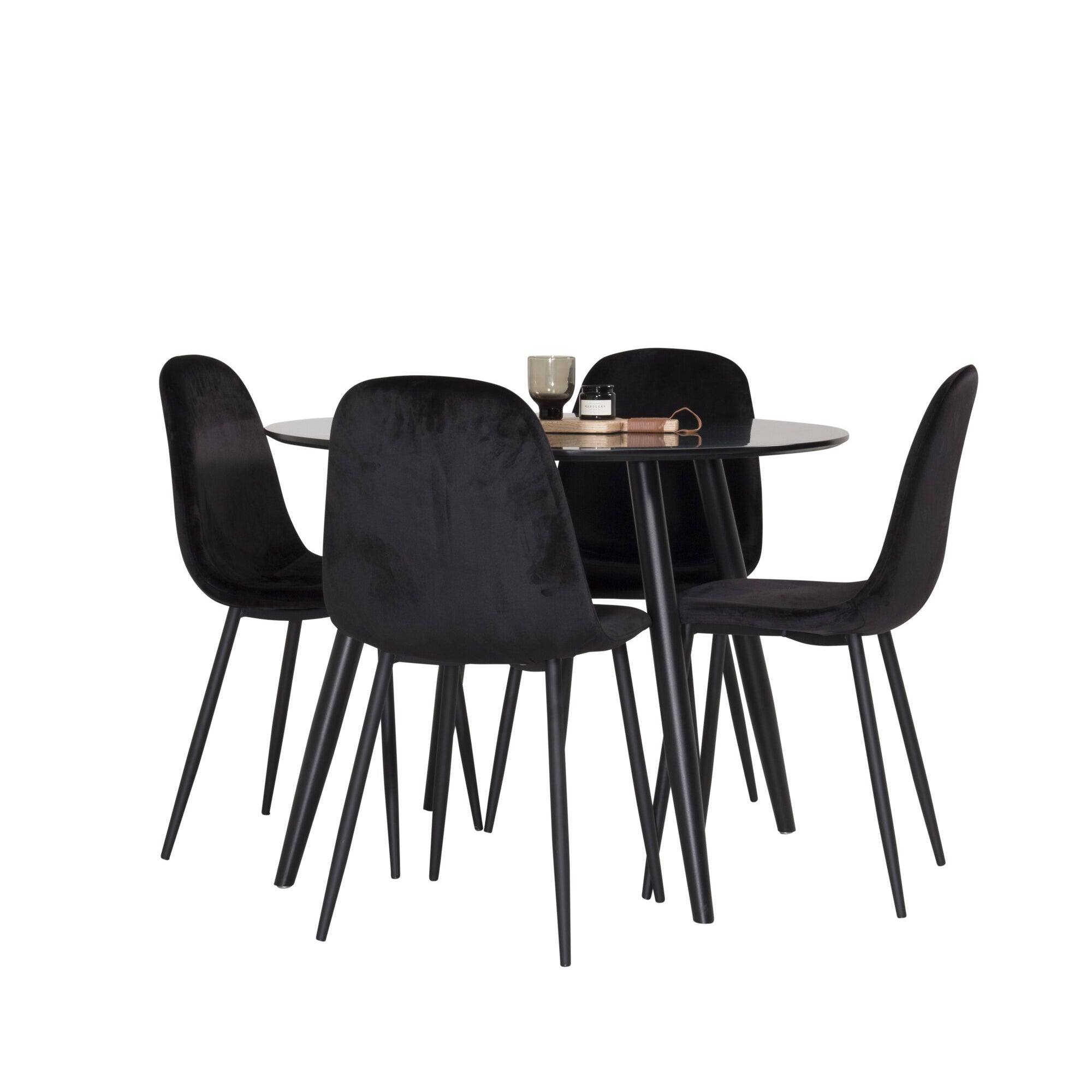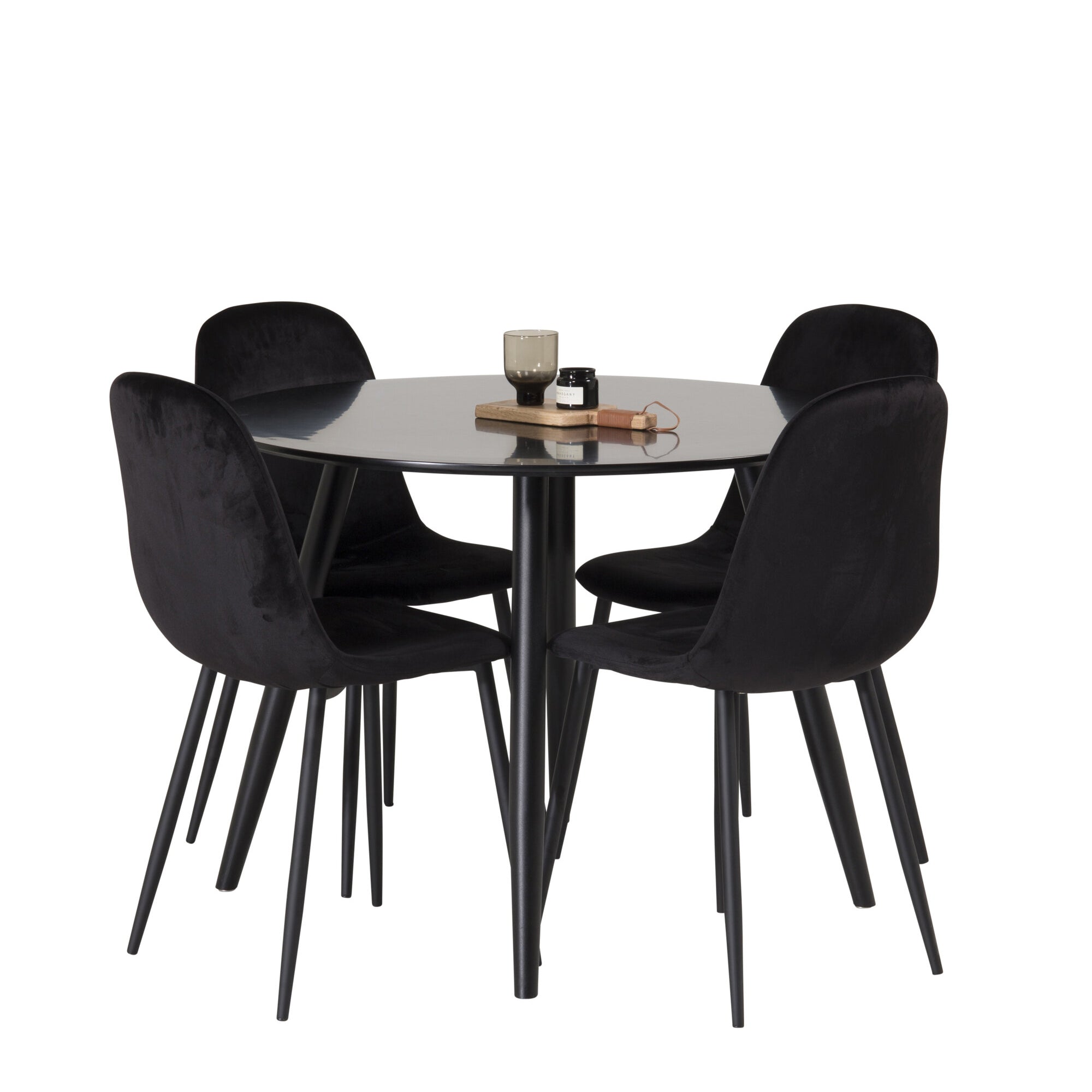 Plaza Runt Matbord - Svart / Svart - ø100*H75 +Jídelní židle Polar - Černé nohy / Black Velvet _4