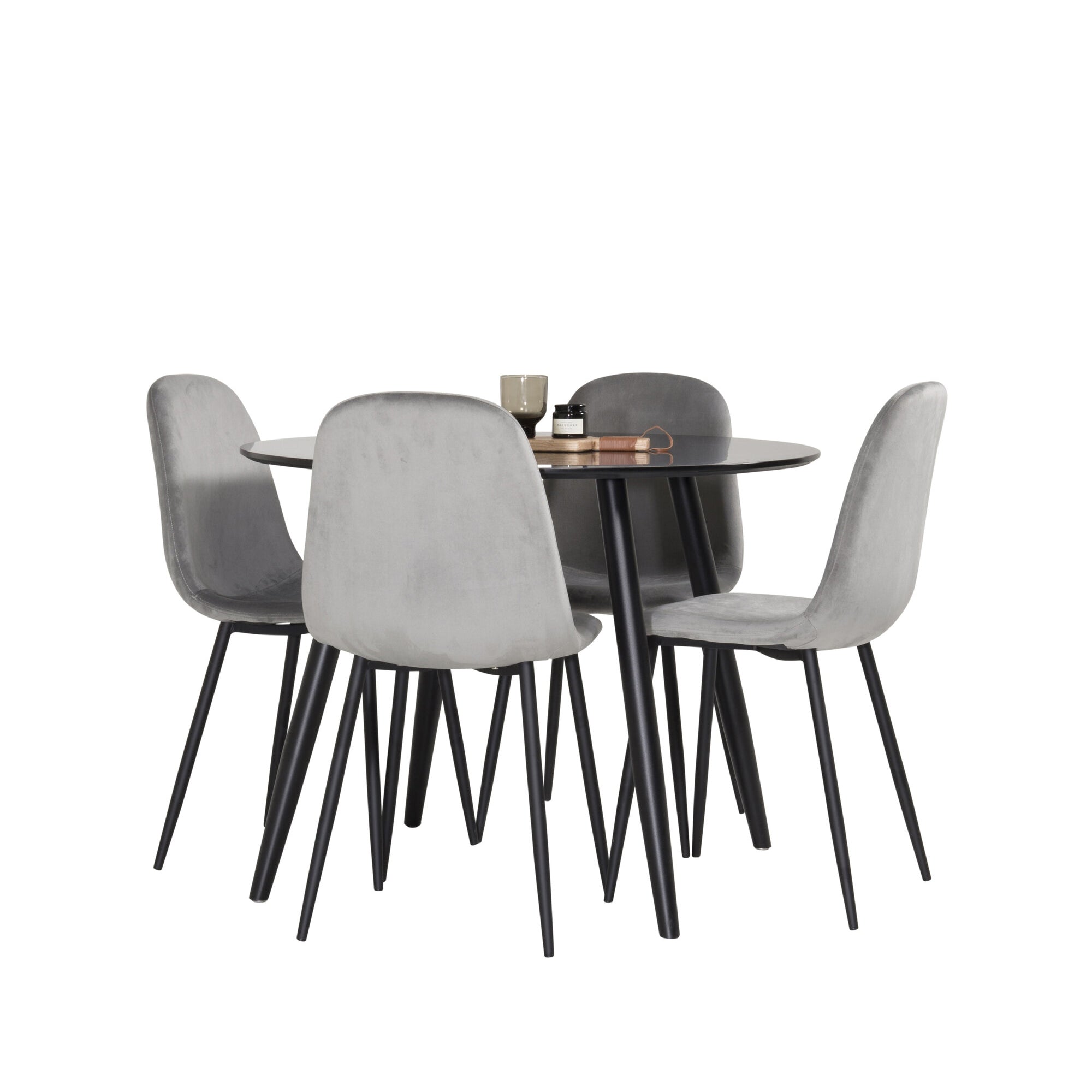 Plaza Runt Matbord - Svart / Svart - ø100*H75 +Jídelní židle Polar - Černé nohy / Světle šedá Velvet _4