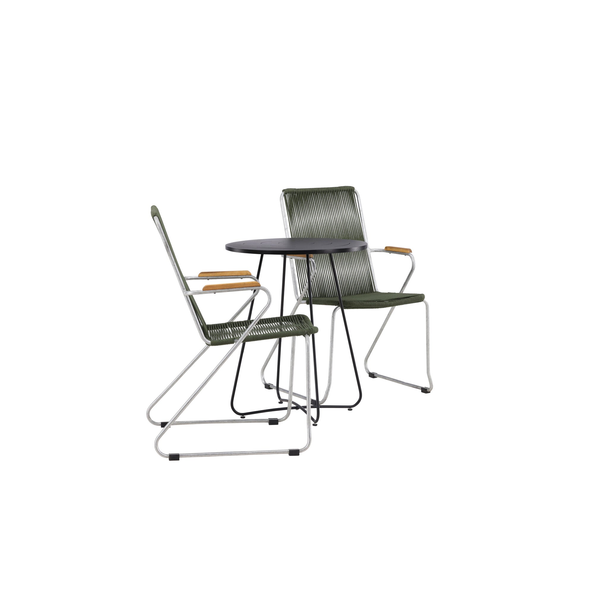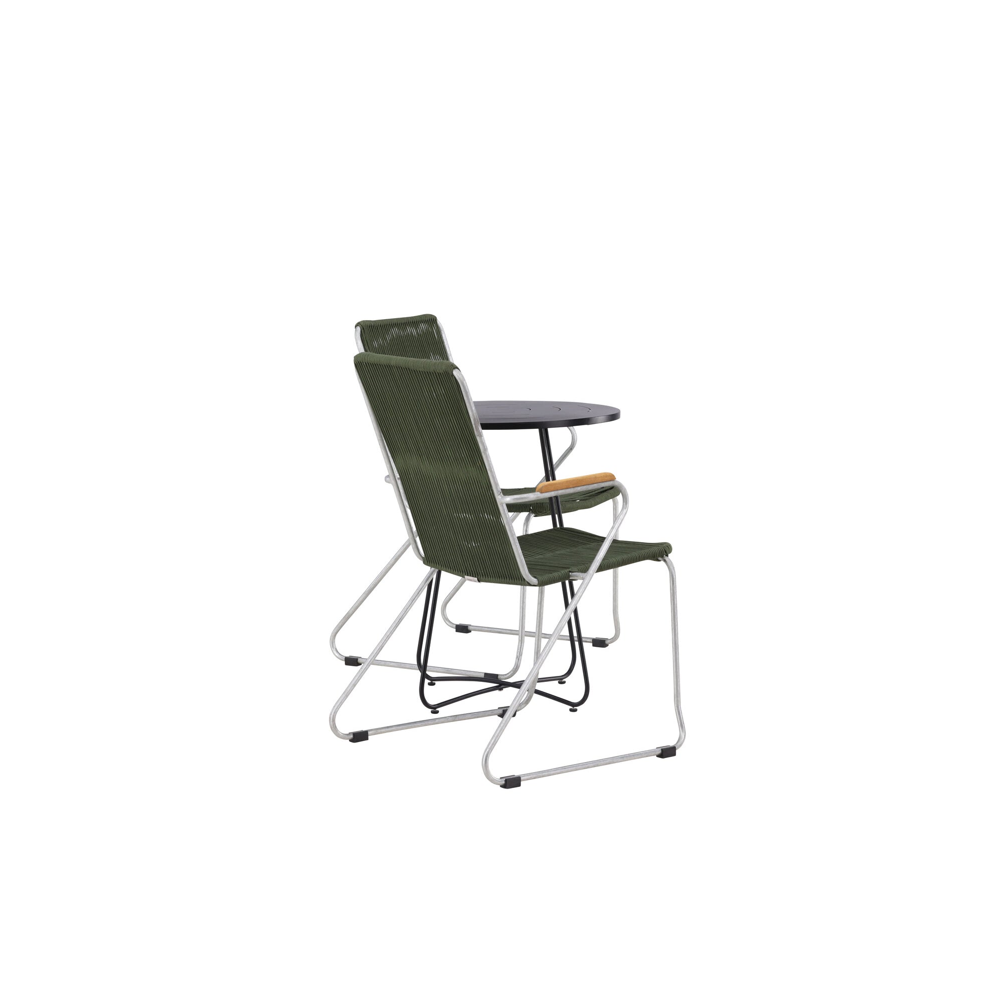 Bacong Cafetable Steel - Černá / Kulatý ø60** + Bois Jídelní židle Ocel - Stříbrná / Zelená lano _2