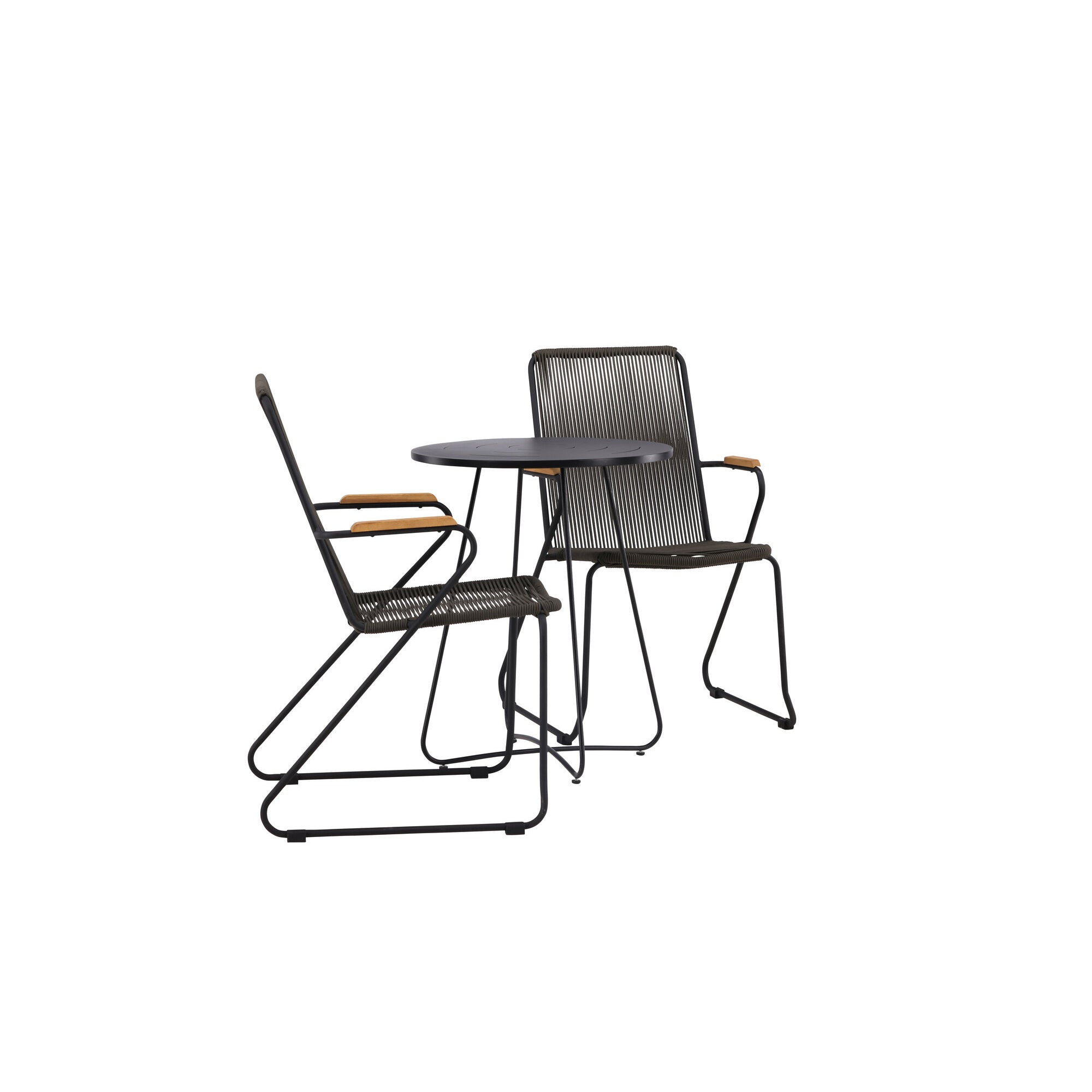 Bacong Cafetable Steel – černá / kulatá ø60** + Bois Jídelní židle Steel – černá / tmavě šedá lano _2