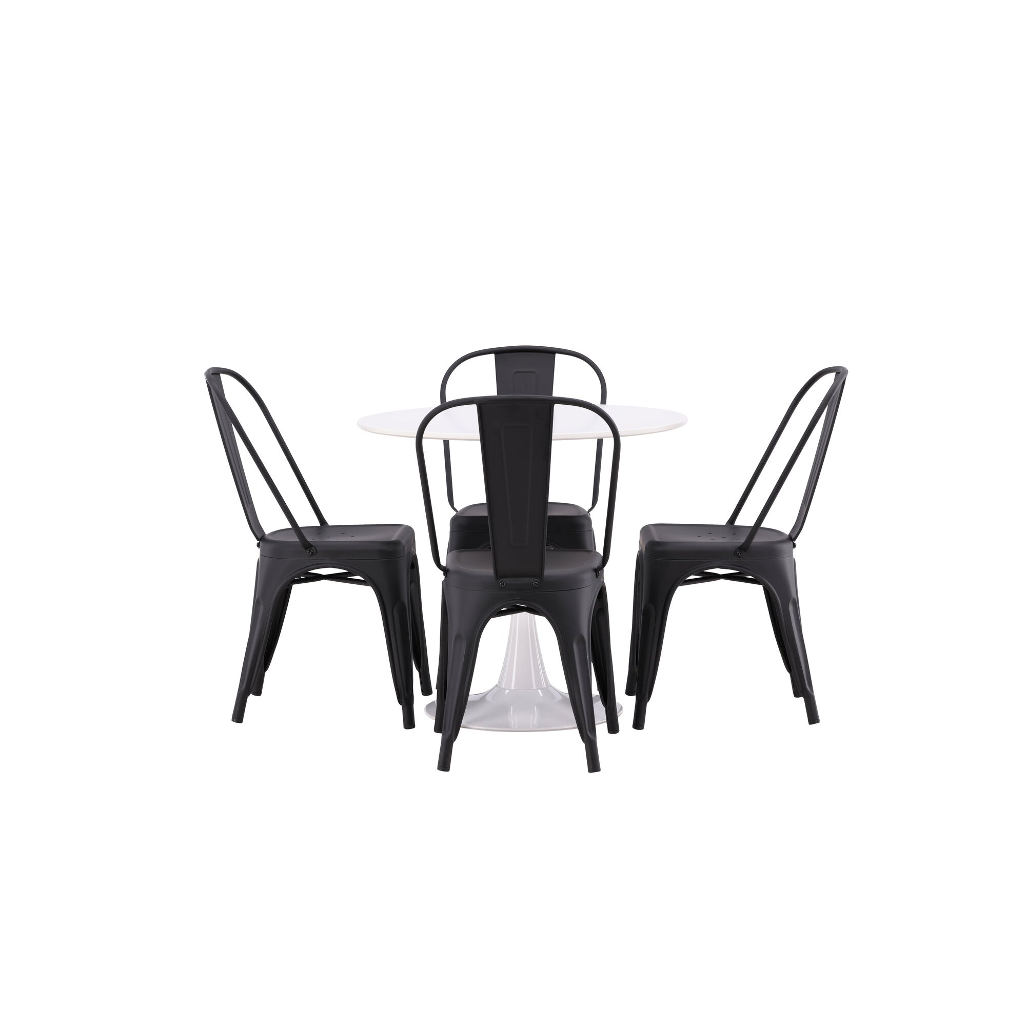 Jídelní stůl Hamden - Bílá MDF+Jídelní židle Tempe - Matná černá / Kov_4