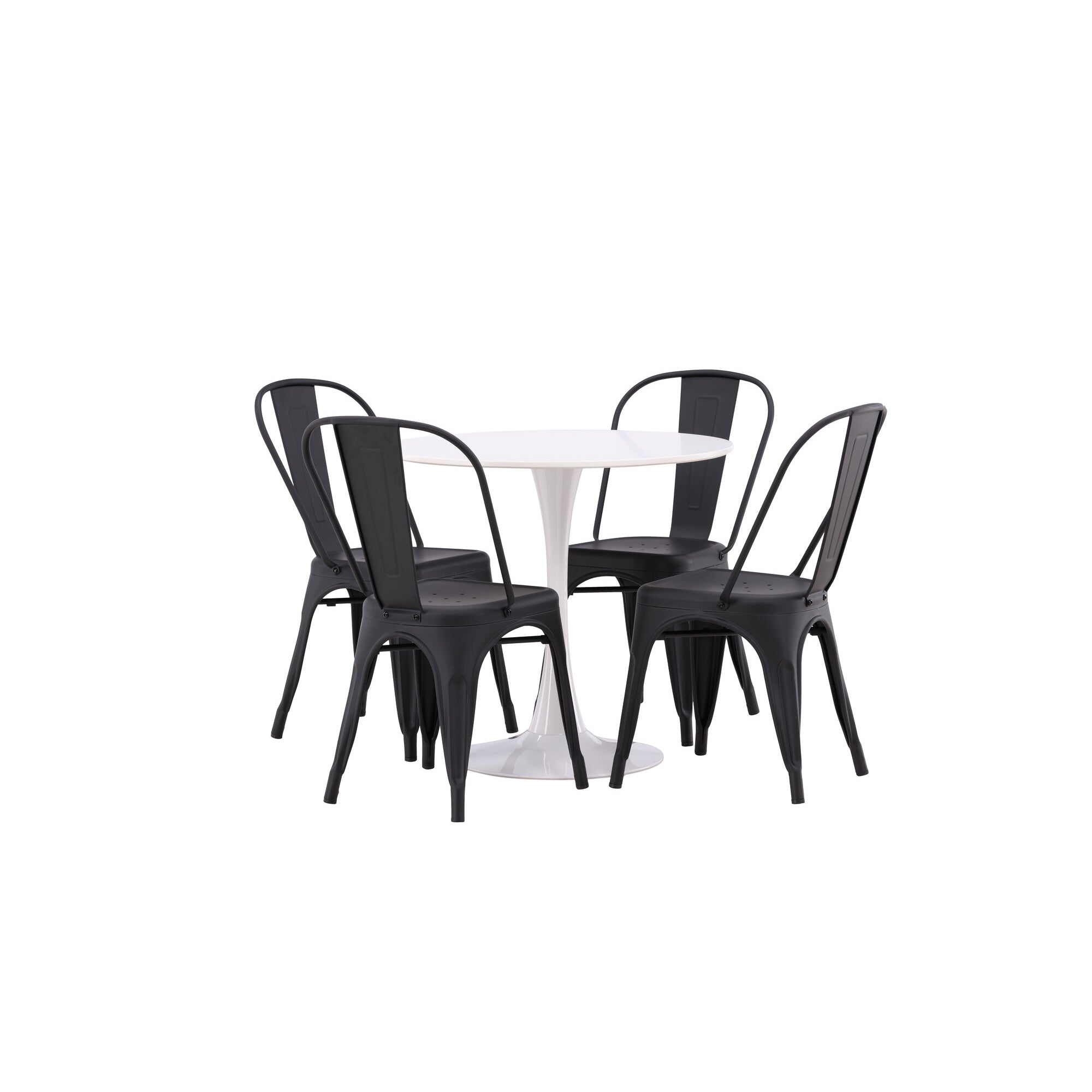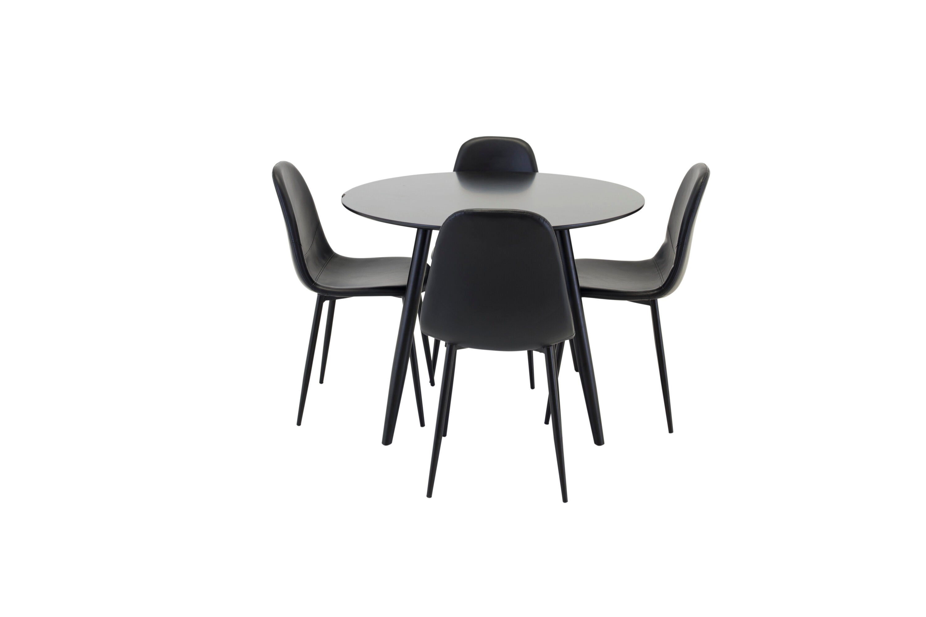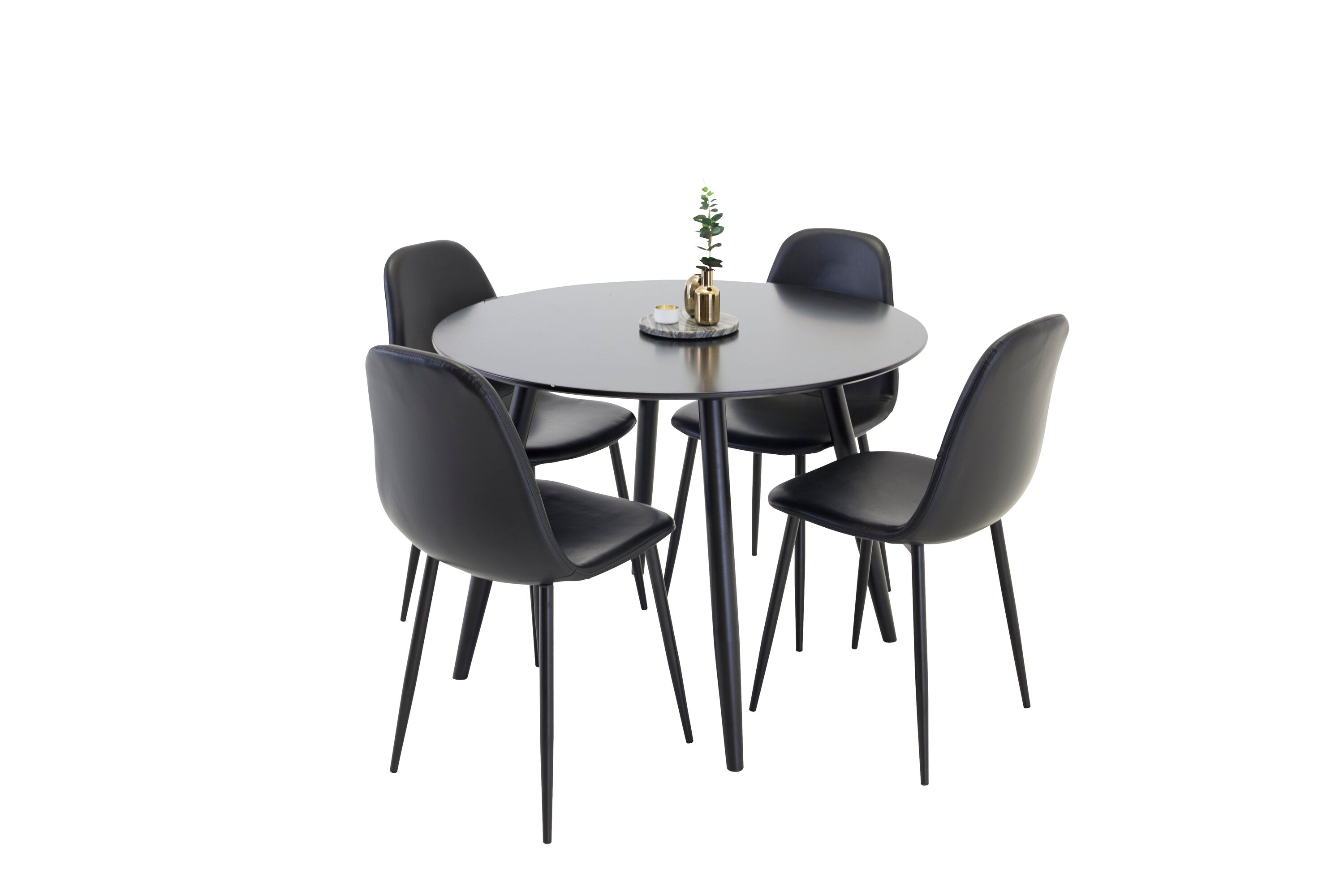 Plaza Runt Matbord - Svart / Svart - ø100*H75 +Jídelní židle Polar Černá PU _4