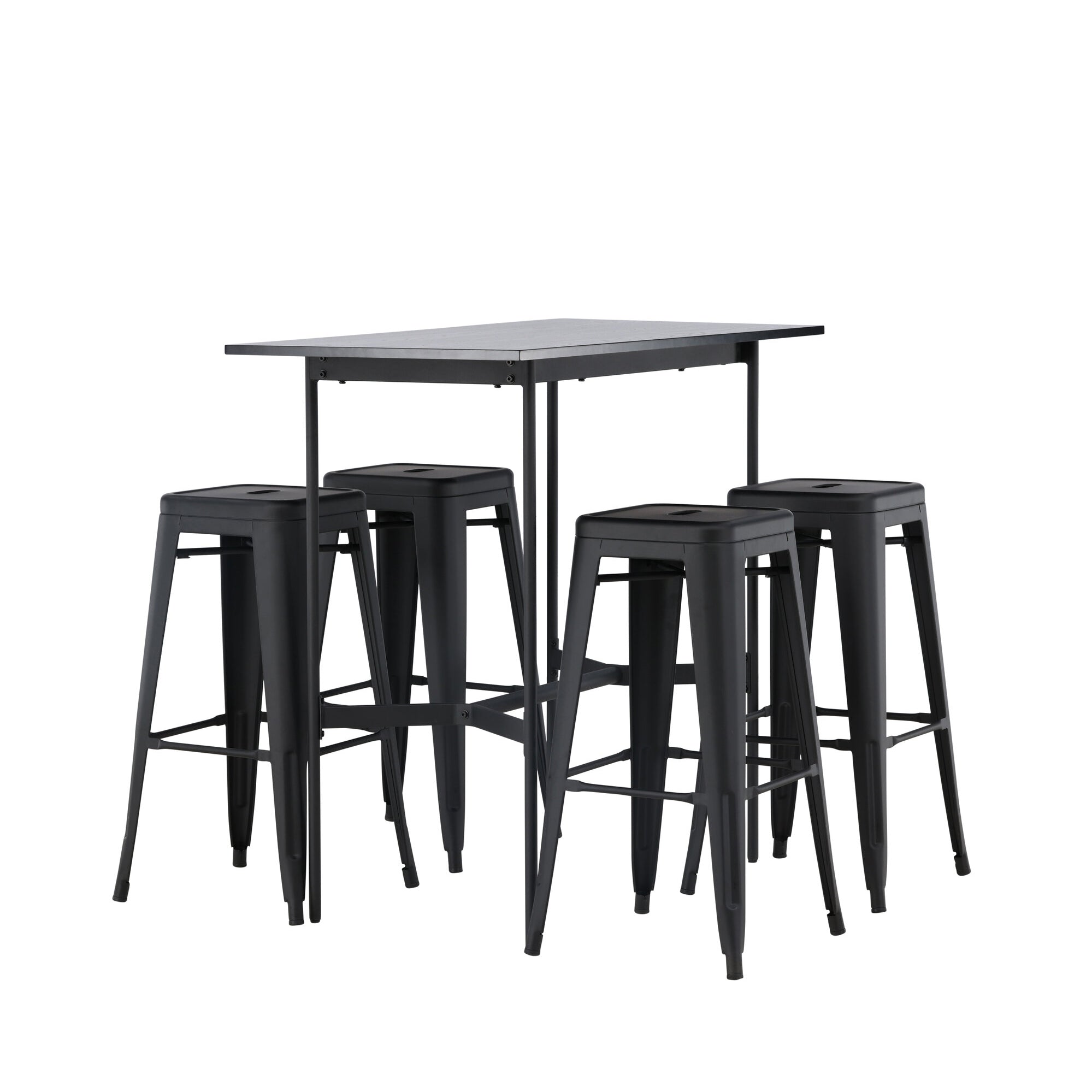 Barový stůl Rax 120*60 – Černá / Černá MDF + Barová židle Tempe – Matná černá / Kov _4