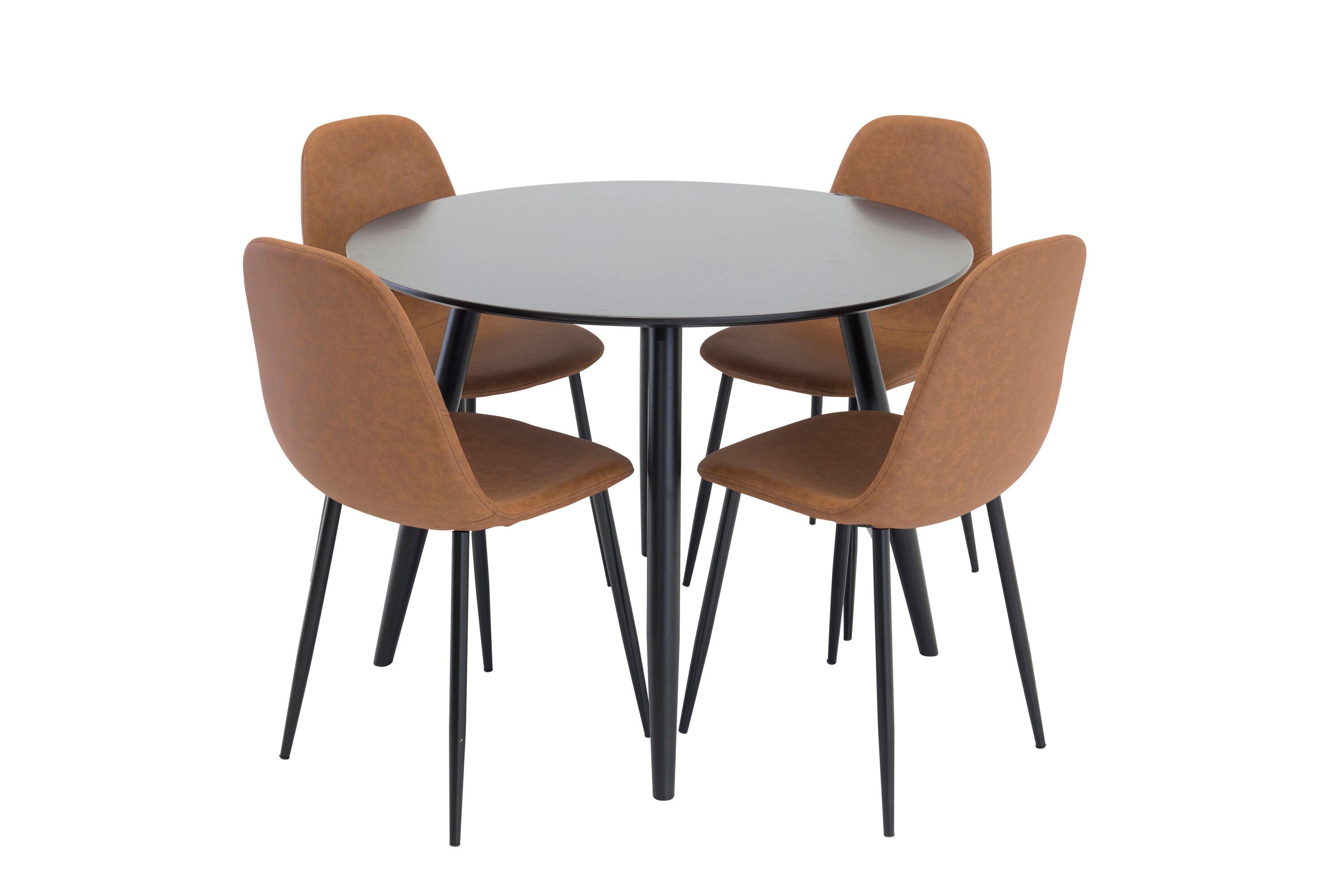 Plaza Runt Matbord - Svart / Svart - ø100*H75 + Jídelní židle Polar - Hnědá / Černá _4