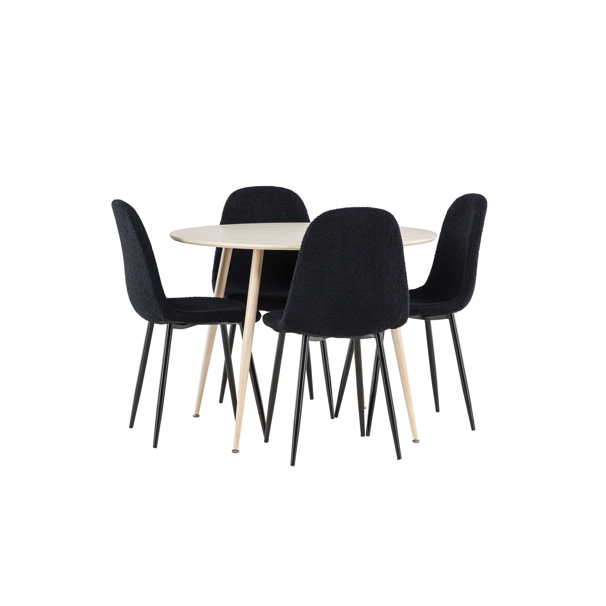 Plaza Runt Matbord - Ek-Look / Svart - ø100*H75 +Velvet Jídelní Chiar - Černé nohy- Black Fabric _4