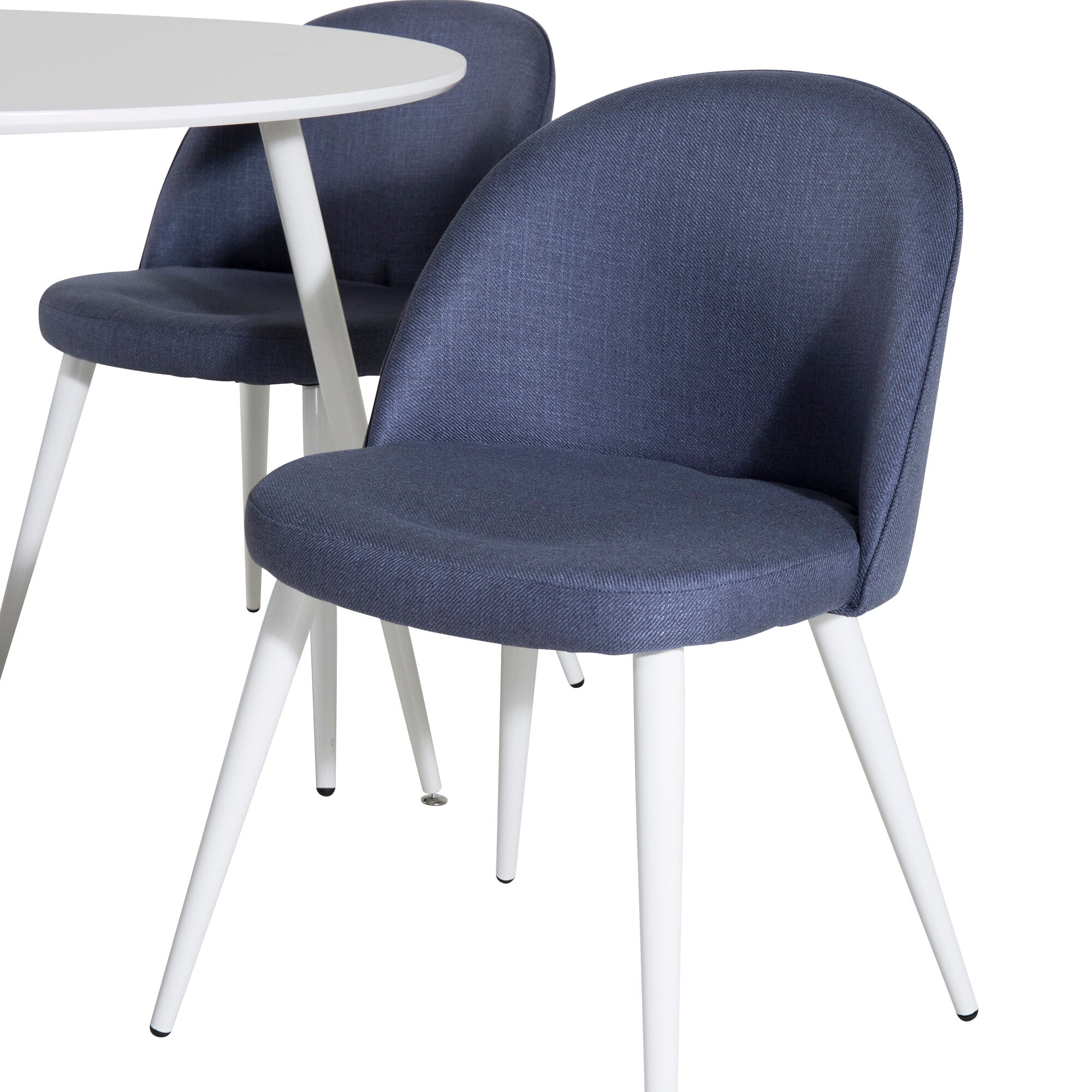 Kulatý stůl Plaza 100 cm - Bílá deska / Bílé nohy + Sametová jídelní židle - Bílé nohy - Modrá látka_4