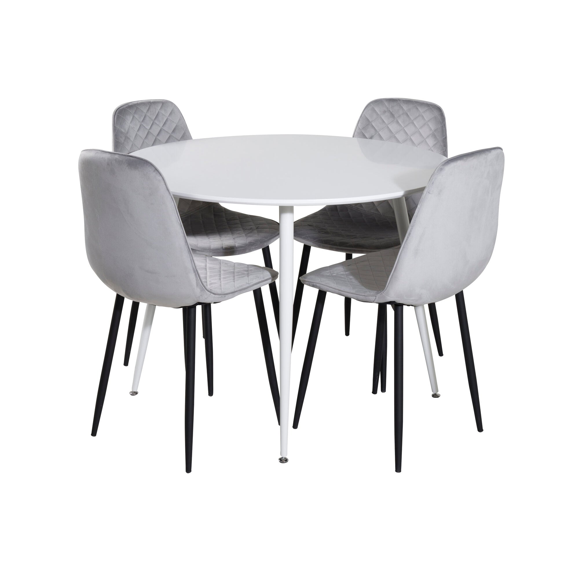 Kulatý stůl Plaza 100 cm - Bílá deska / Bílé nohy + Polar Diamond Jídelní židle - Černé nohy - Šedá Velvet_4