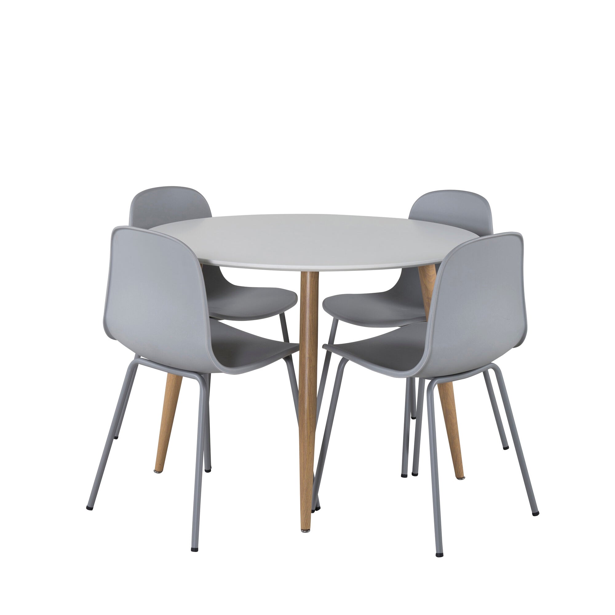 Plaza Runt Matbord - Ek-Look / Vit - ø100*H75 + Jídelní židle Arctic - šedé nohy - šedý plast _4