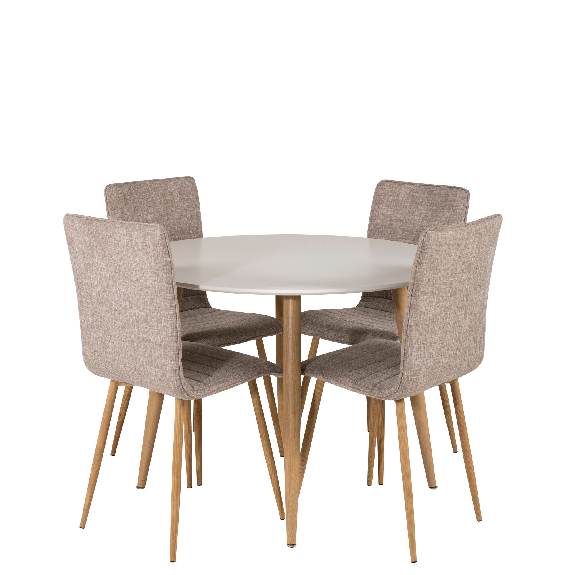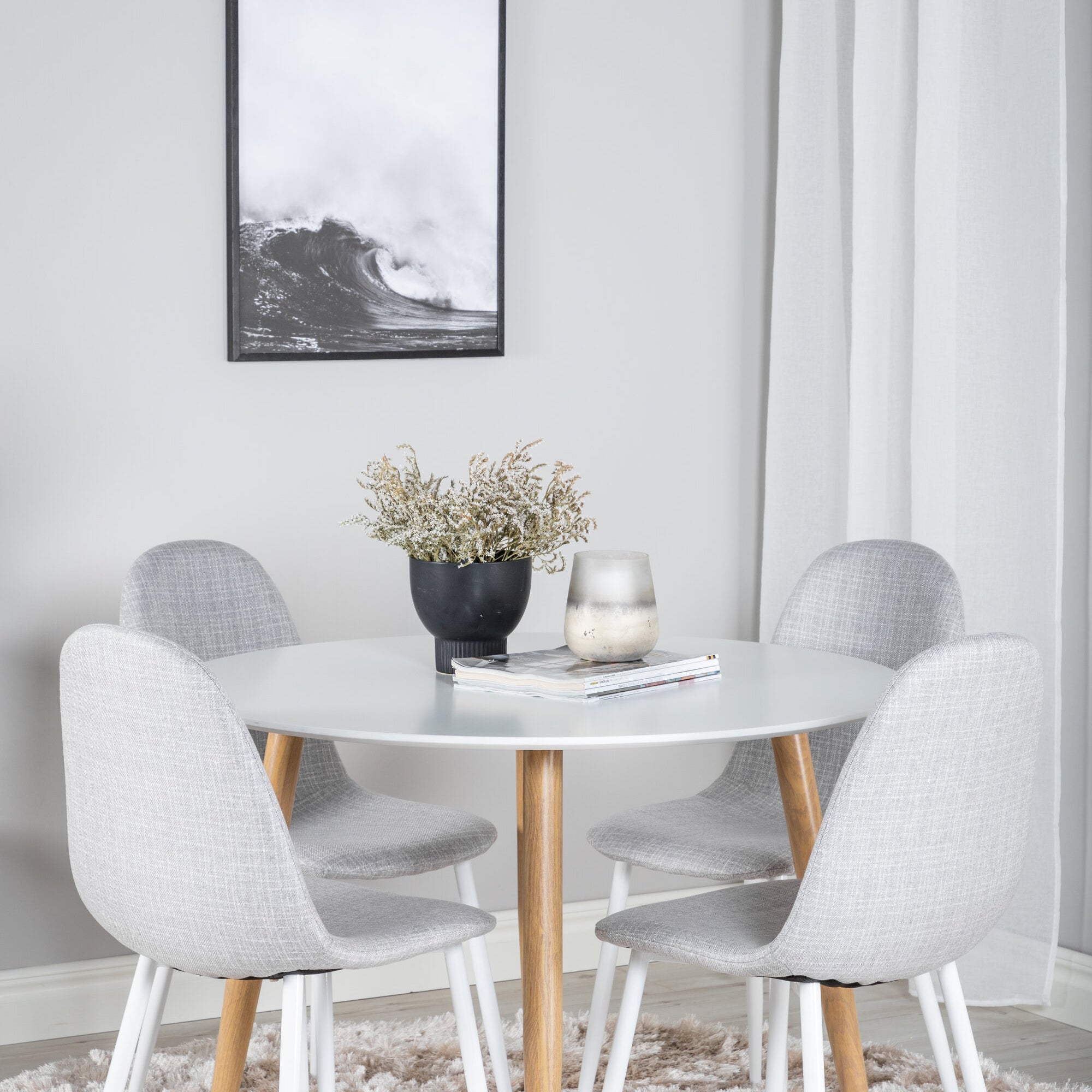 Plaza Runt Matbord - Ek-Look / Vit - ø100*H75 +Jídelní židle Windu Lyx - Dub-Look / Světle šedá _4