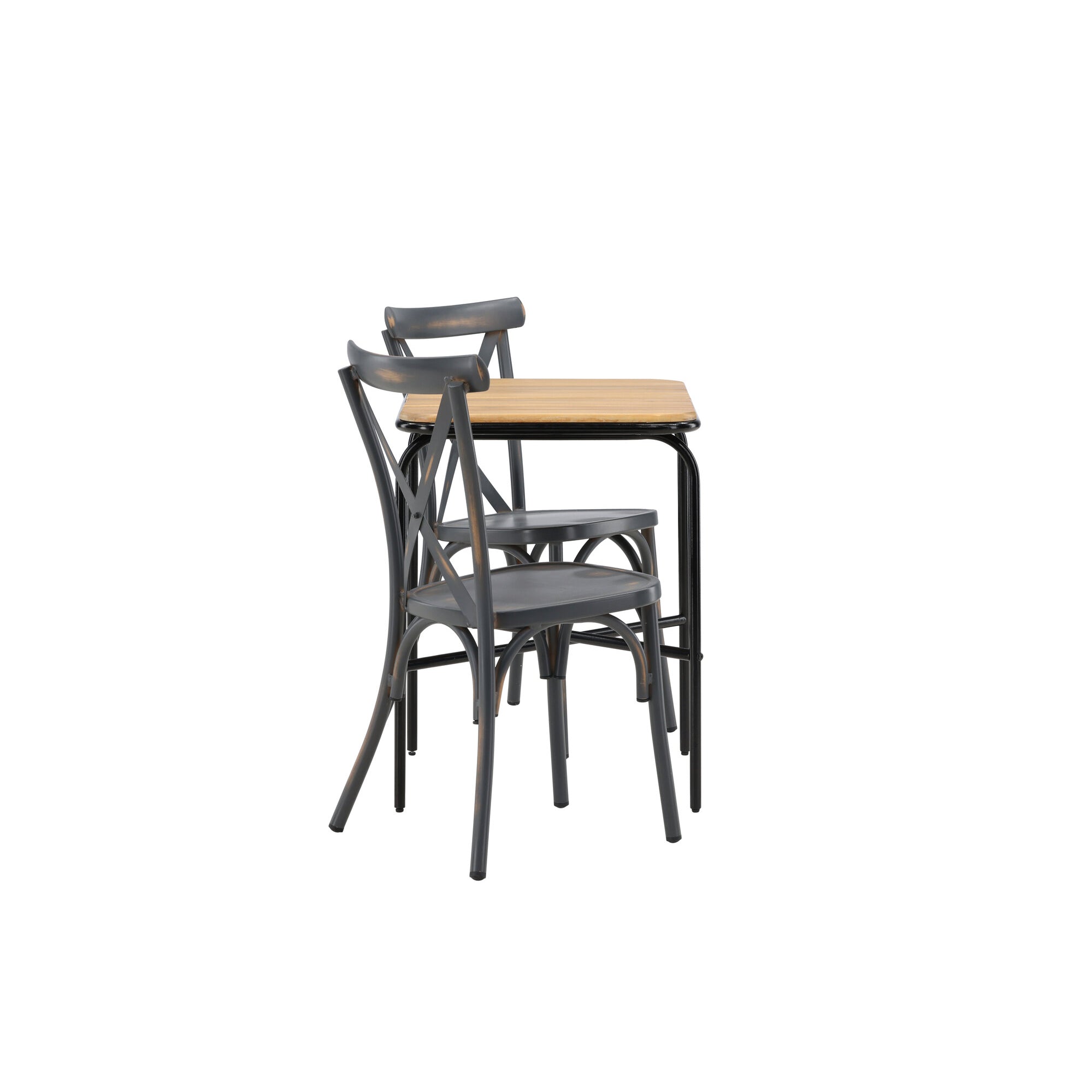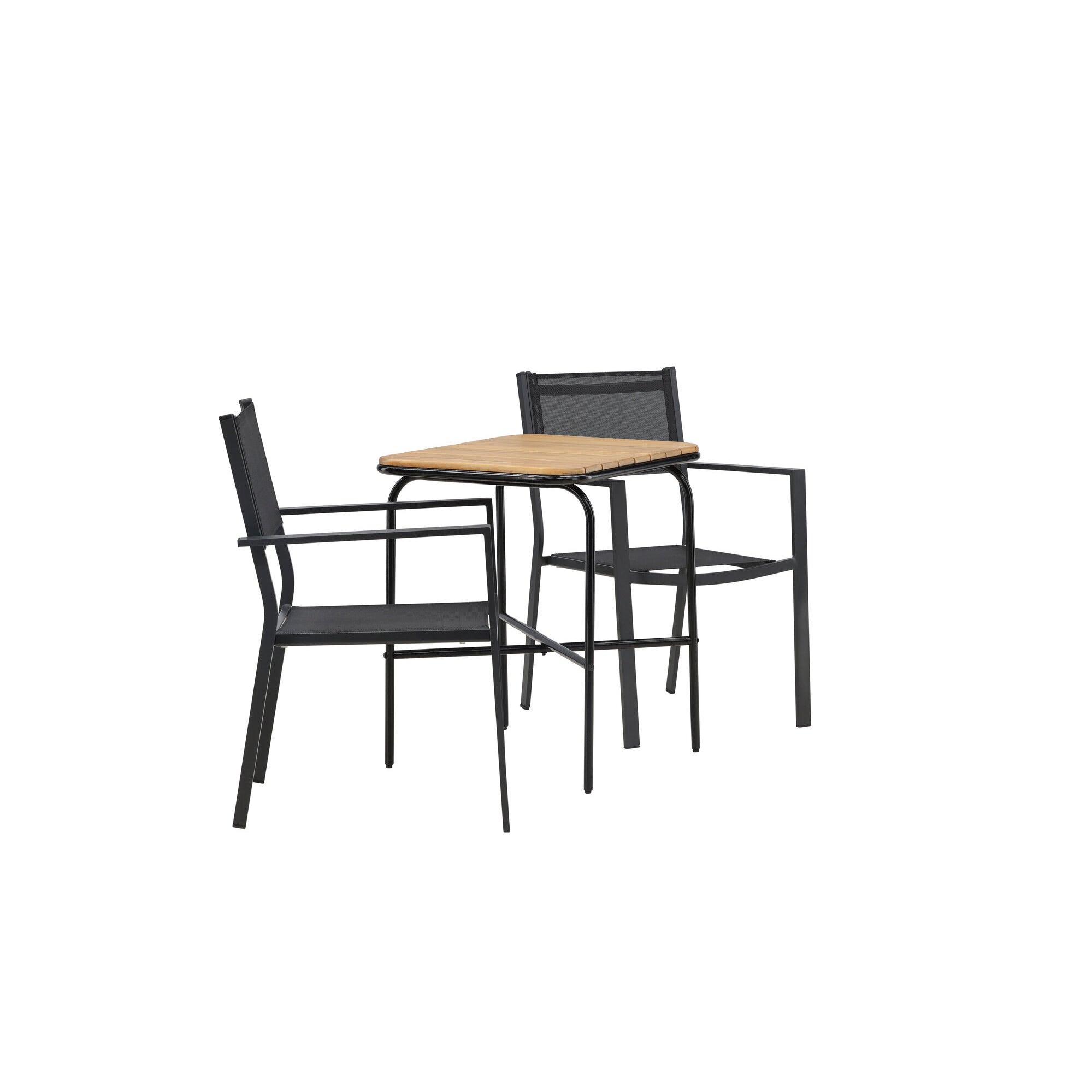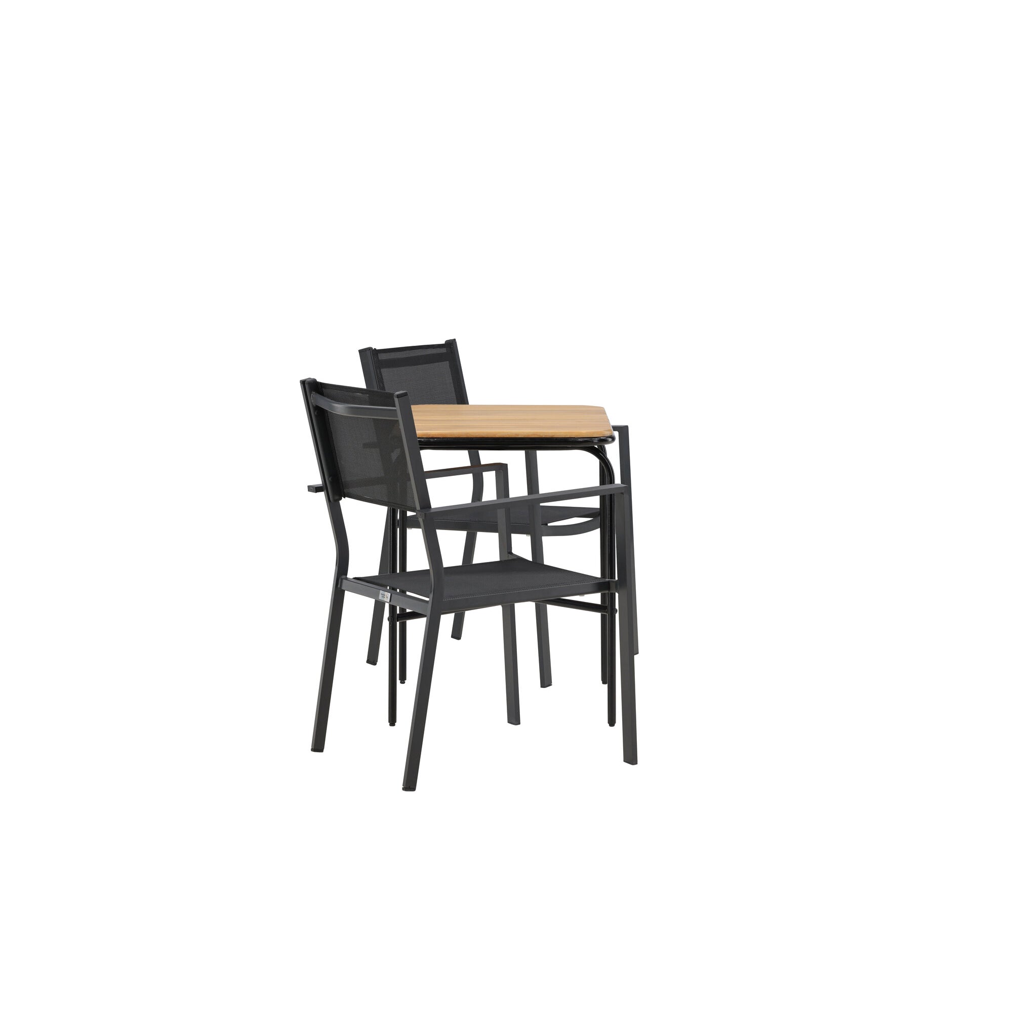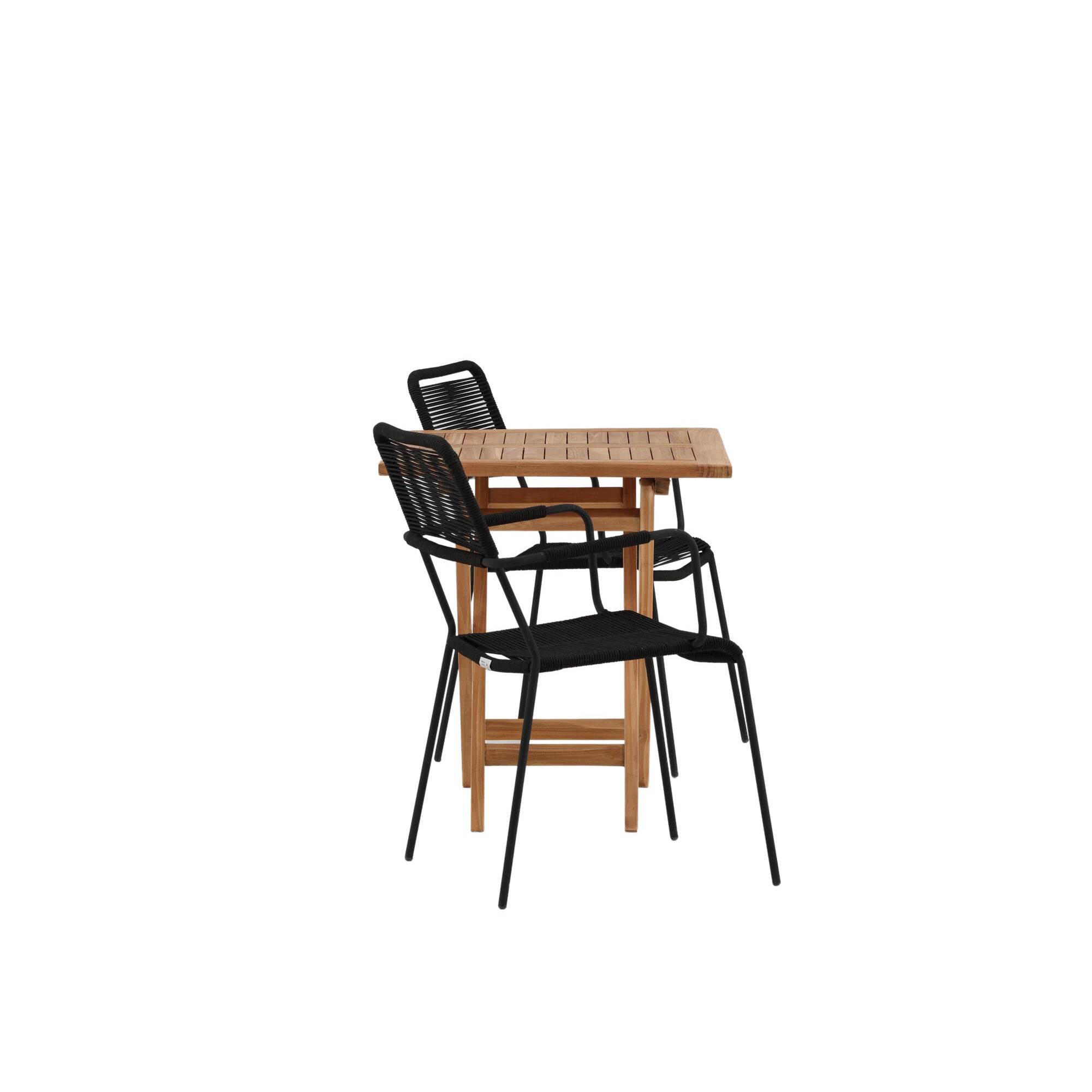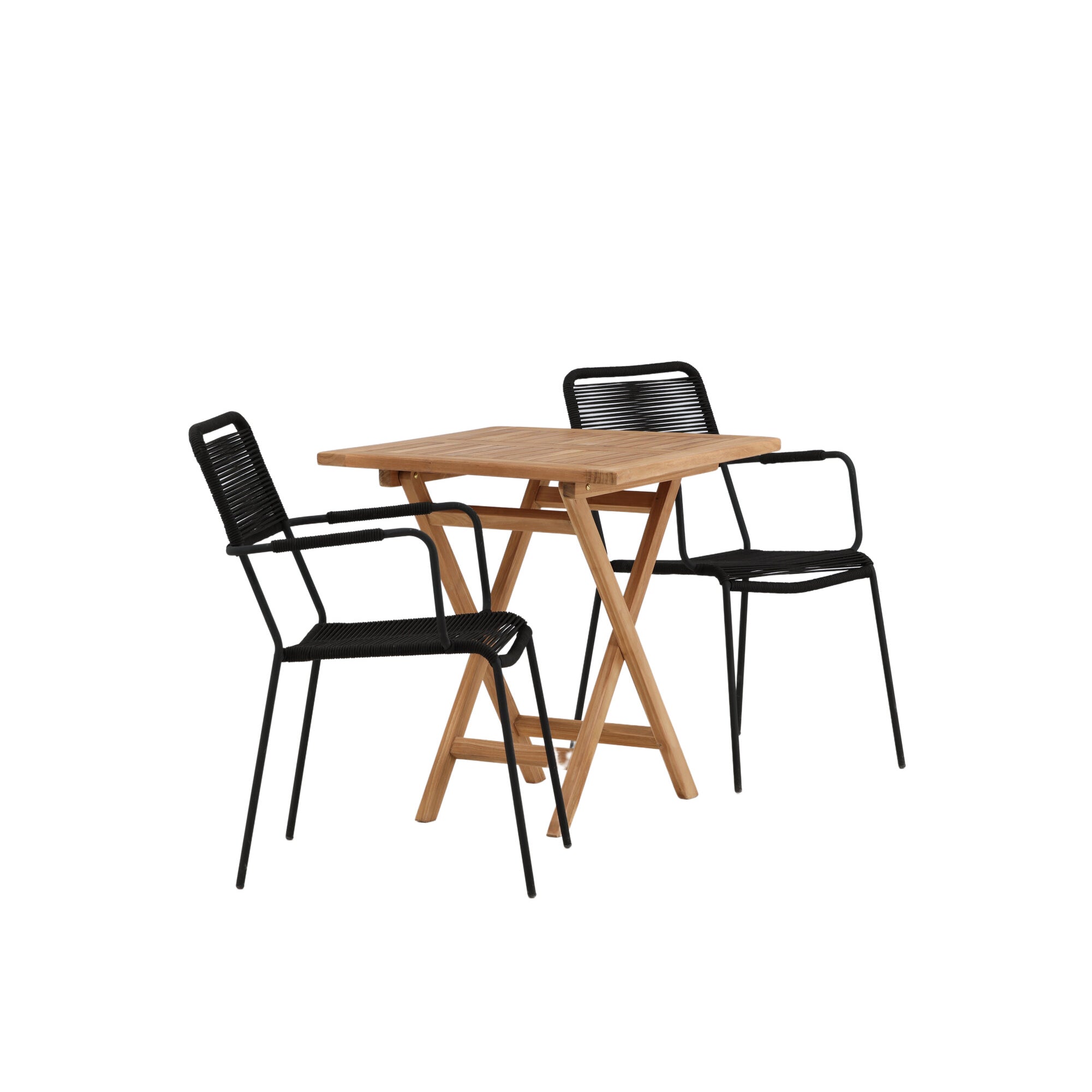 Keňa - Skládací stůl - Přírodní - Teak - 70*70cm _1+ Křeslo Lindos - Black Alu / Black Lano _2