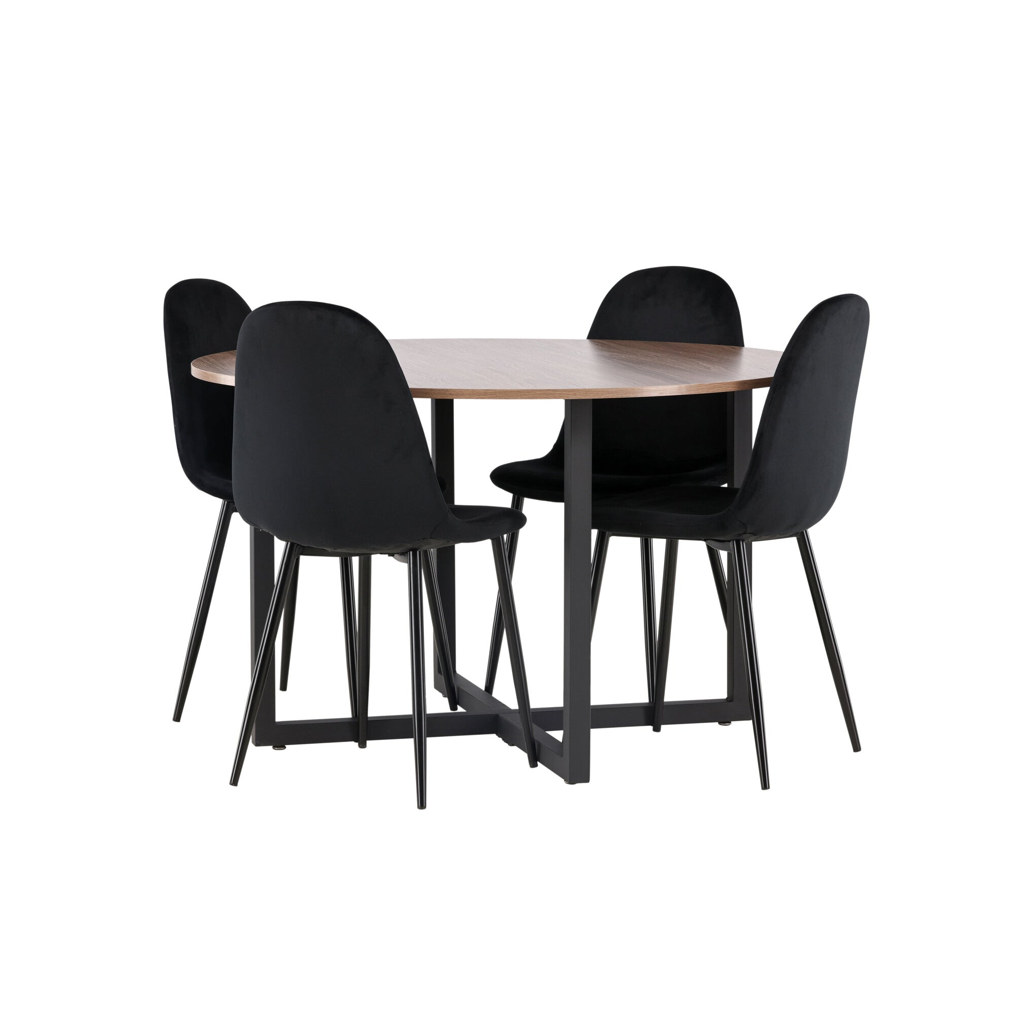 Plaza Runt Matbord - Ek-Look / Svart - ø100*H75 +Jídelní židle Muce - Černé nohy - Černá látka _4