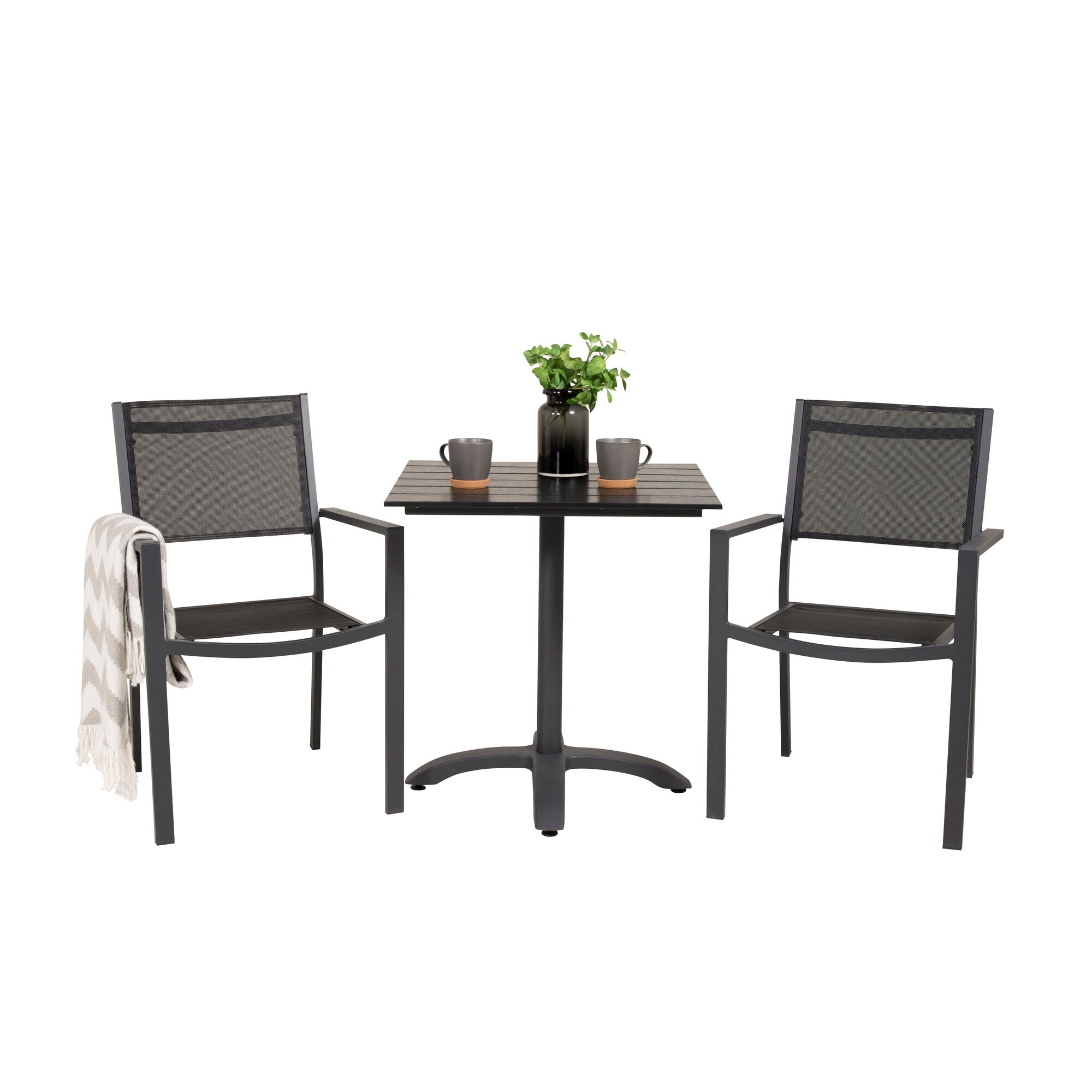Colorado - Cafébord - 70*70 - Matt Svart / Svart Aintwood+Copacabana Arm Chair (