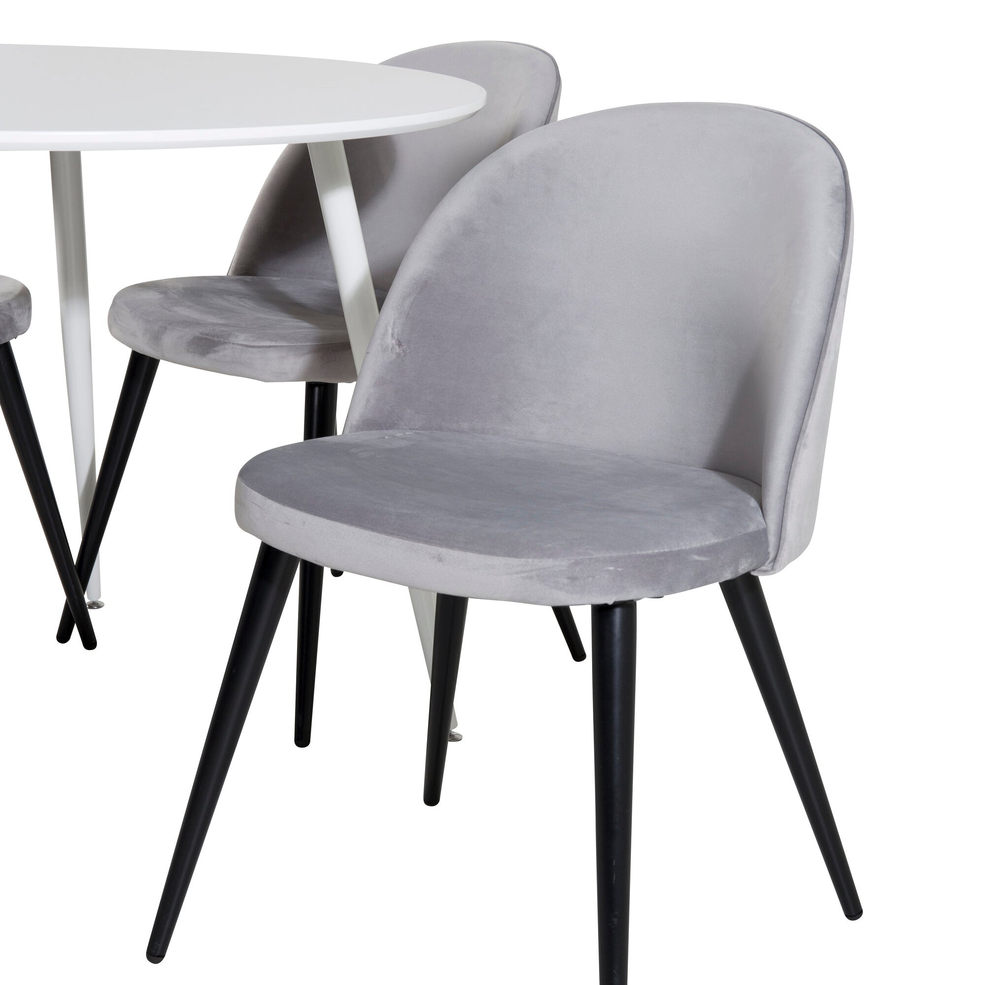 Kulatý stůl Plaza 100 cm - bílá deska / bílé nohy + sametová jídelní židle - světle šedá / černá_4