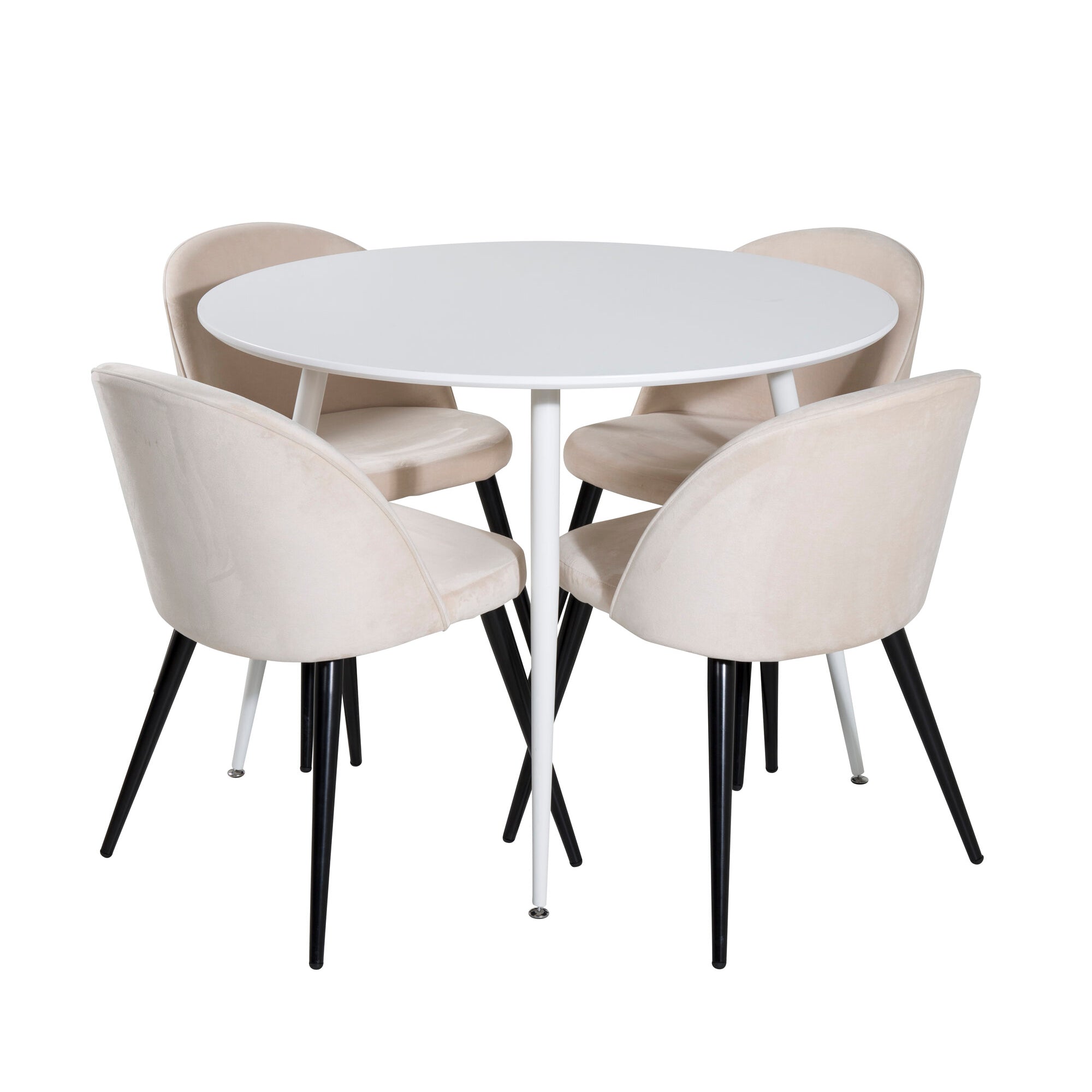 Kulatý stůl Plaza 100 cm - bílá deska / bílé nohy + sametová jídelní židle - béžová / černá_4