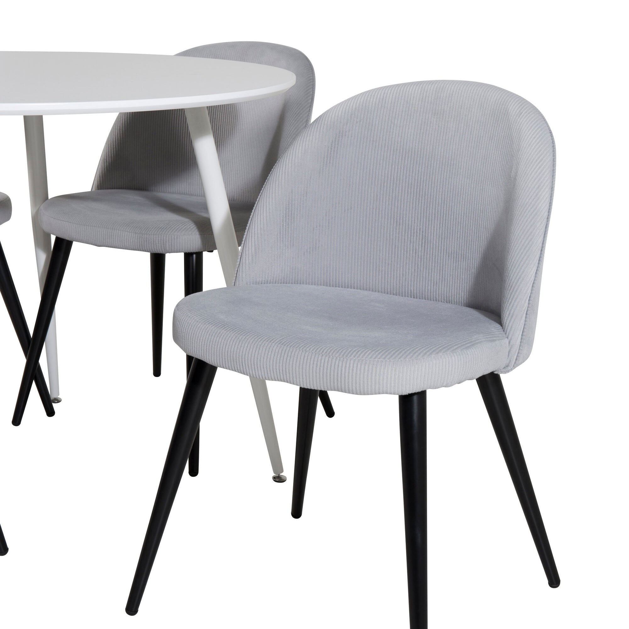 Plaza Kulatý stůl 100 cm - Bílá deska / Bílé nohy + Sametová jídelní židle Manšestr - Světle šedá / Černá_4
