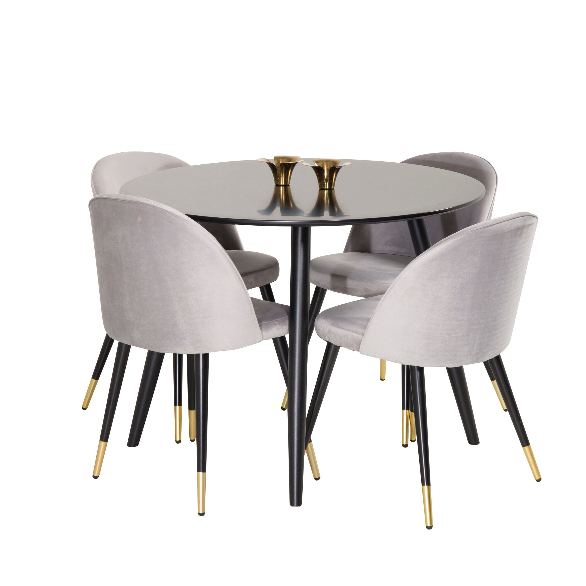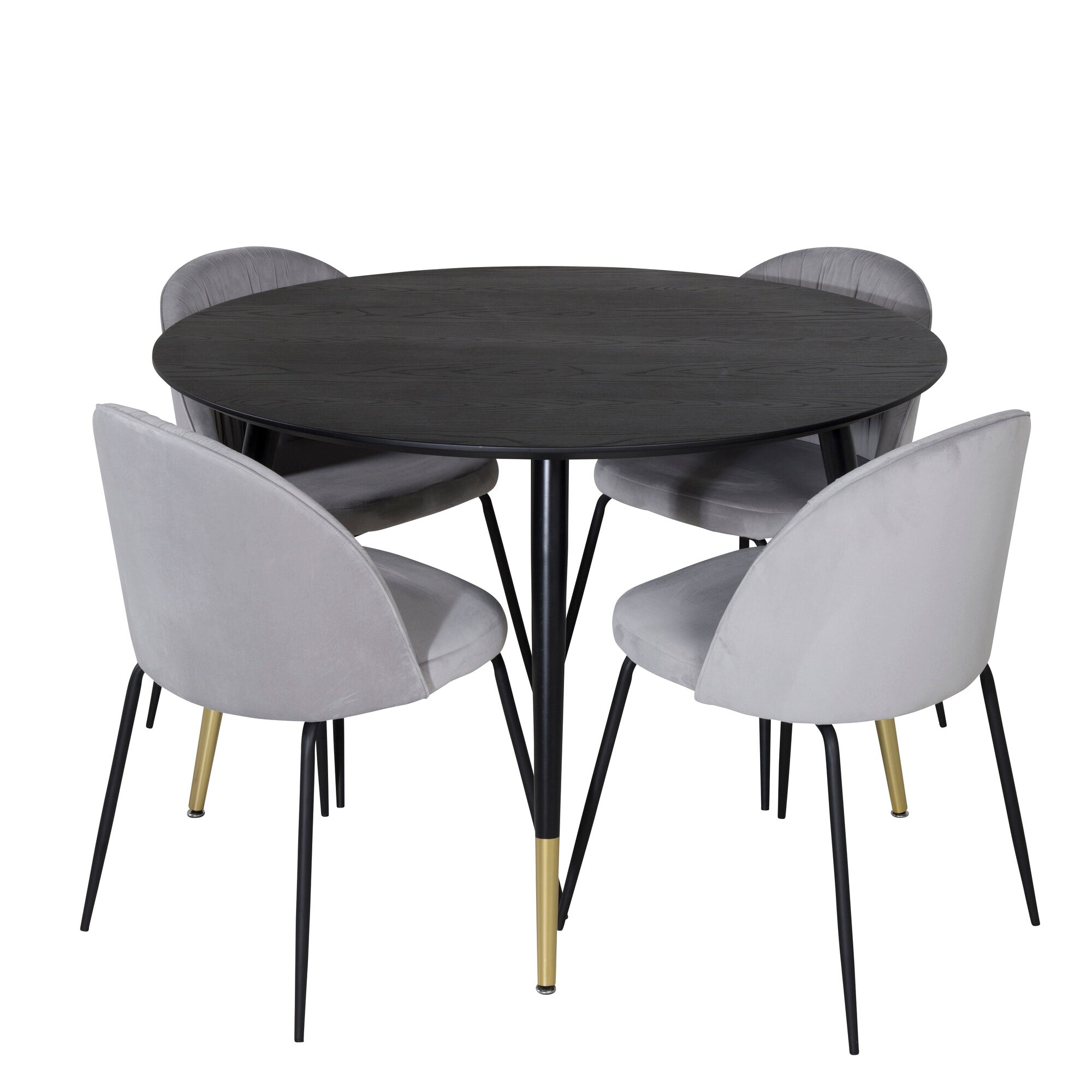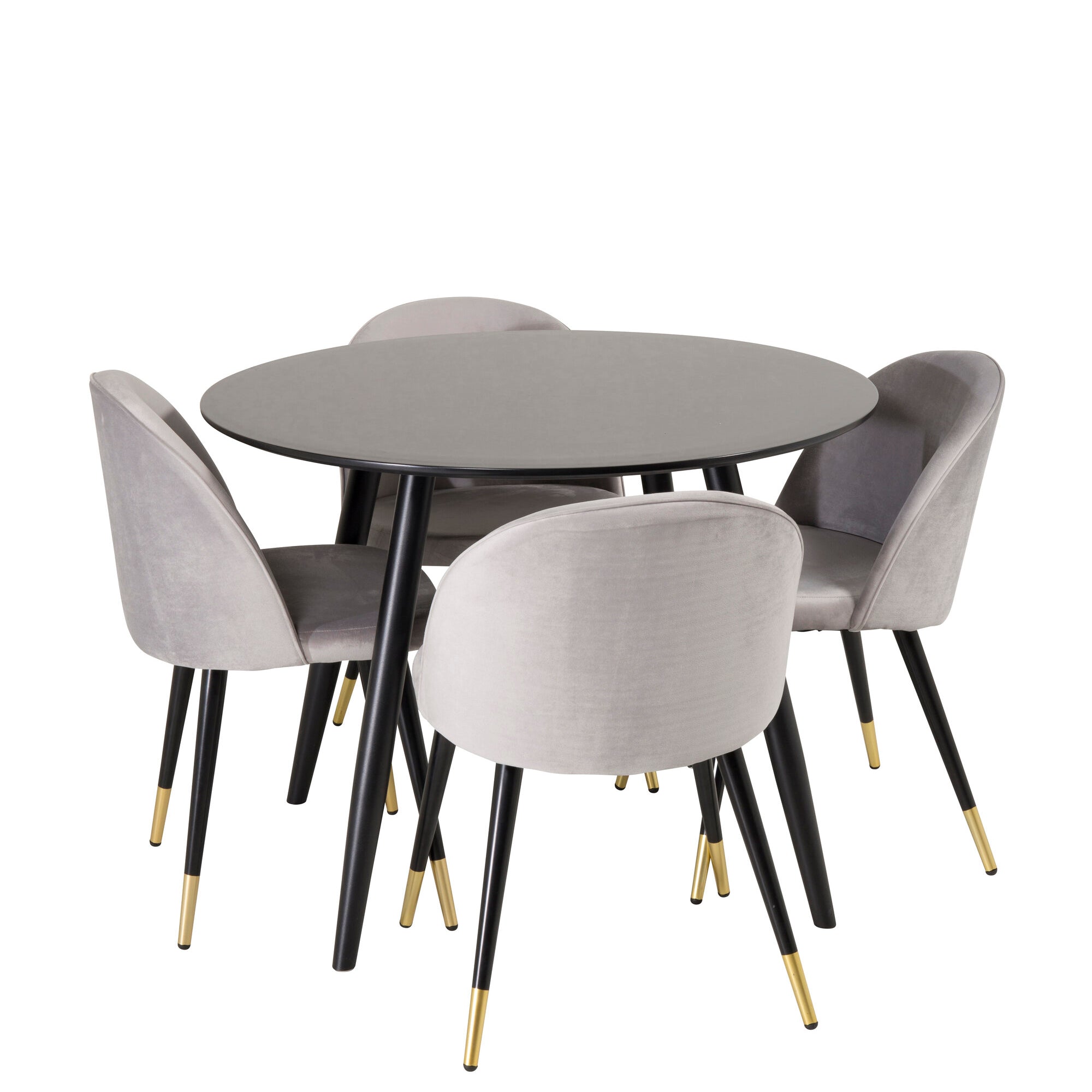 Plaza Runt Matbord - Svart / Svart - ø100*H75 +Velvetová jídelní židle mosaz - světle šedá / černá _4